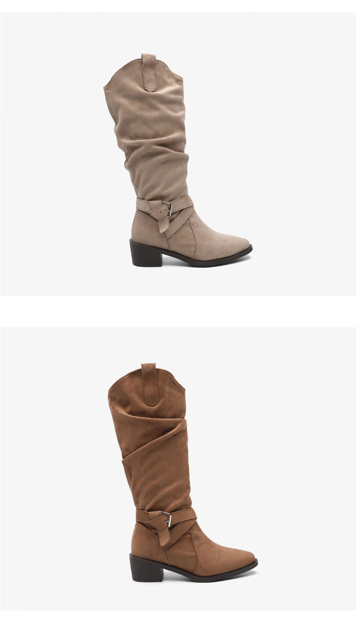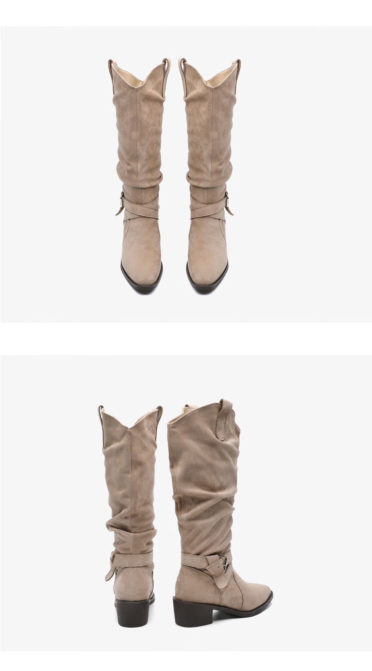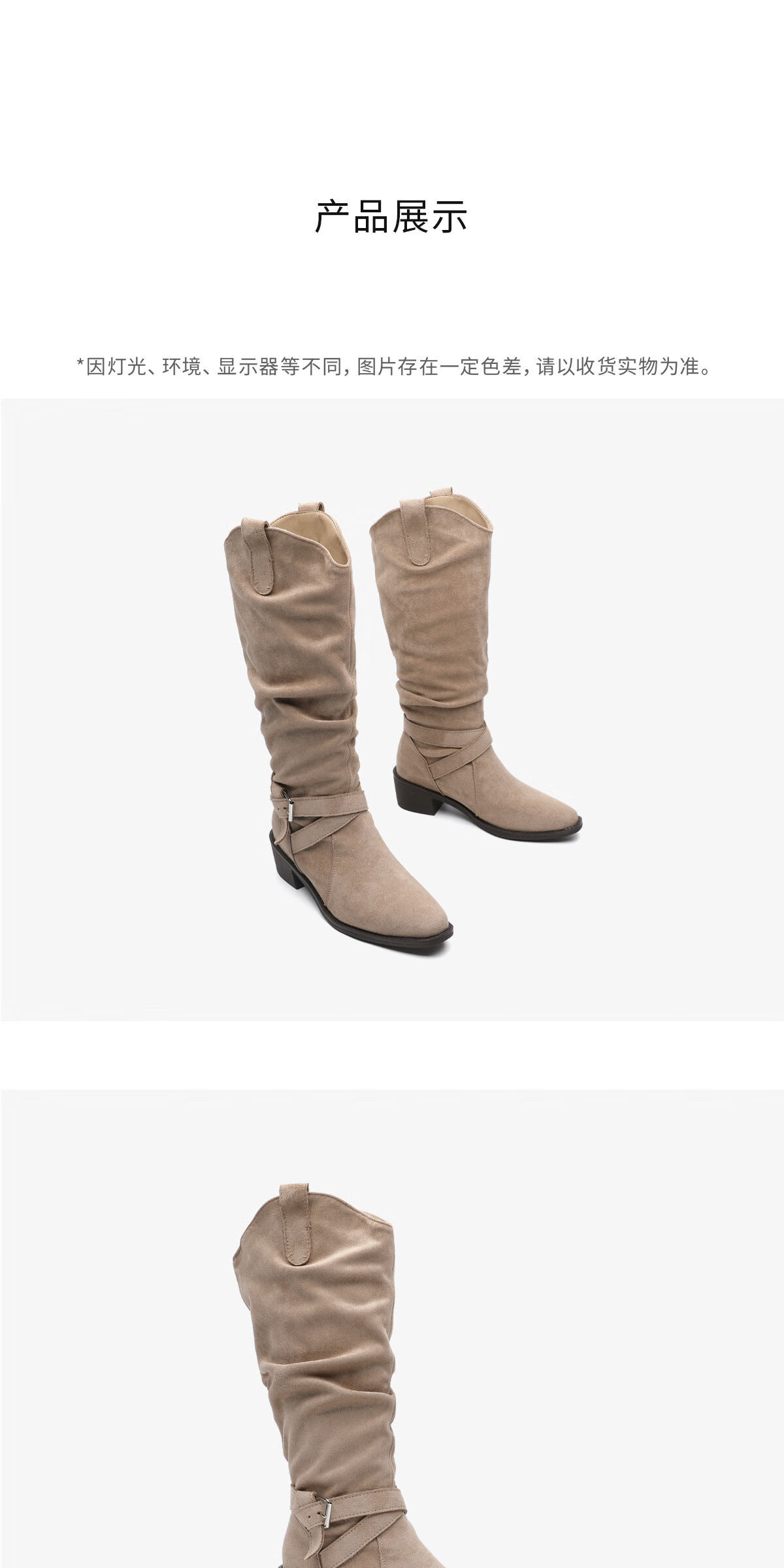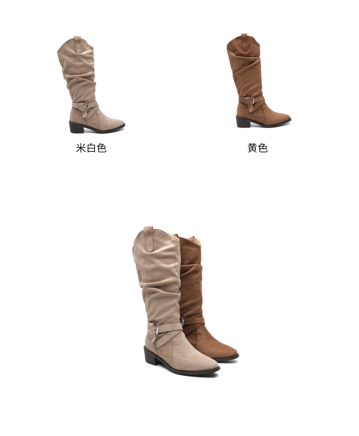 月芽儿长筒靴女2025新款冬季时尚百搭加绒堆堆靴复古尖头骑士长靴 绒里黄色04T 34