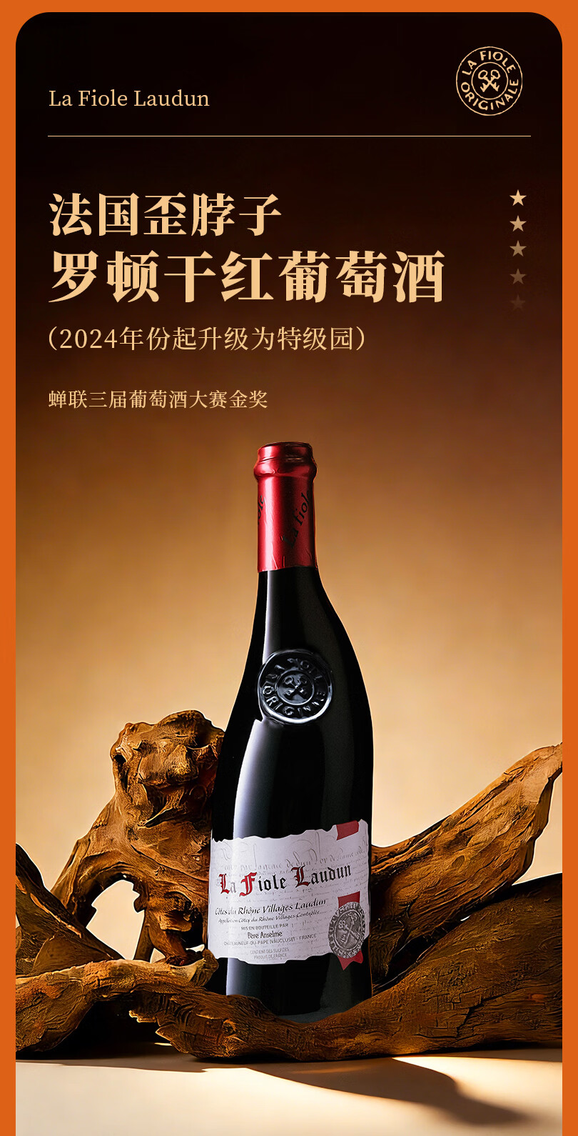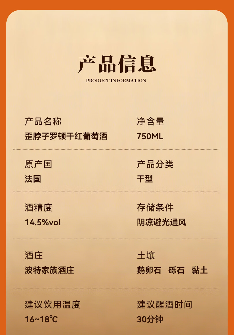 歪脖子红酒法国BROTTE富华罗顿特级干红葡萄酒原瓶进口节日送礼盒装 罗顿歪脖子单支750ml
