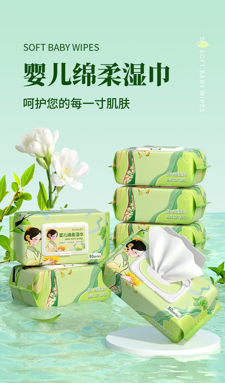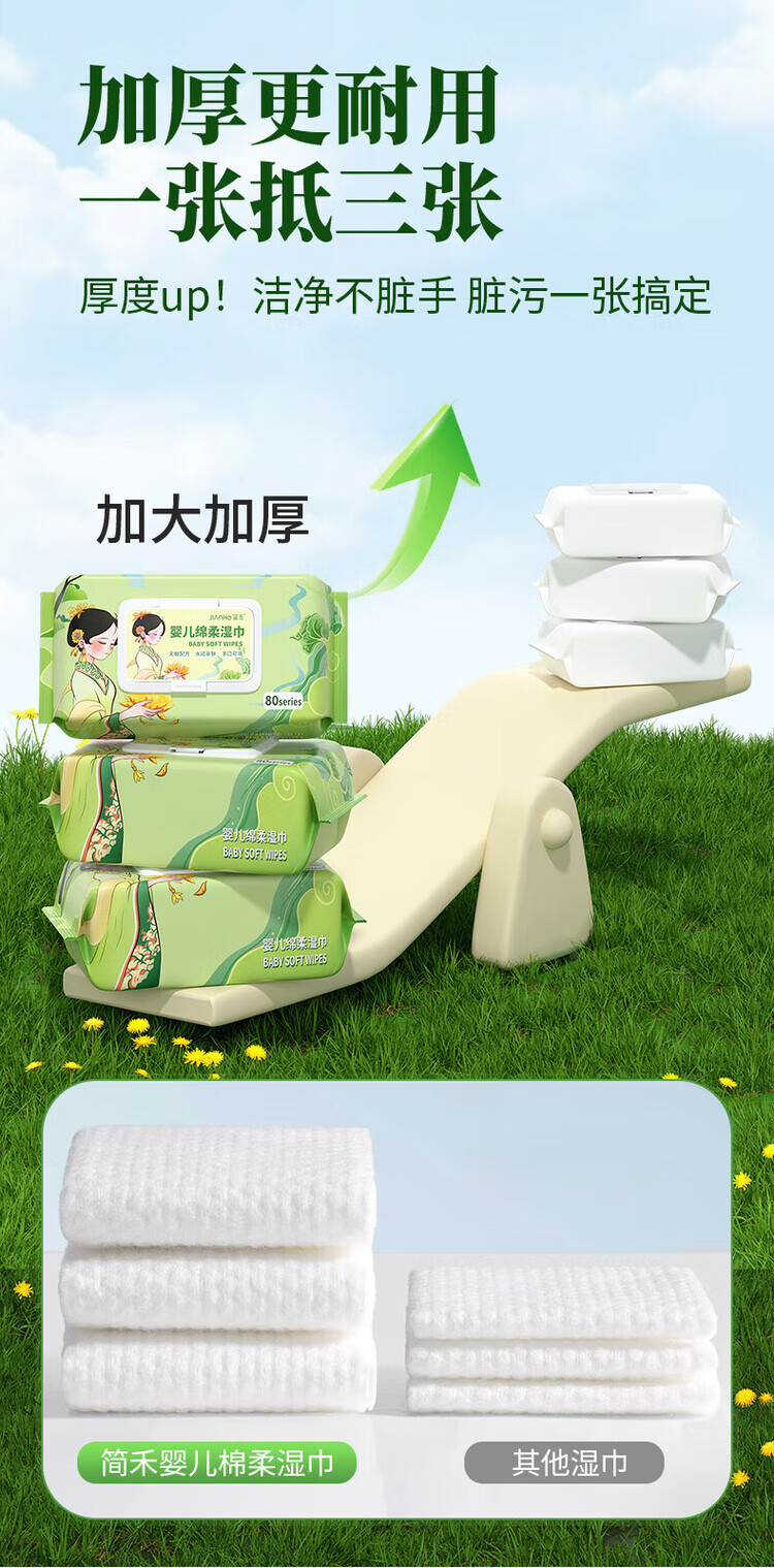 简禾婴儿湿巾手口专用大包80抽儿童擦脸湿纸巾母婴必备 【国风加厚款】 80抽 3包