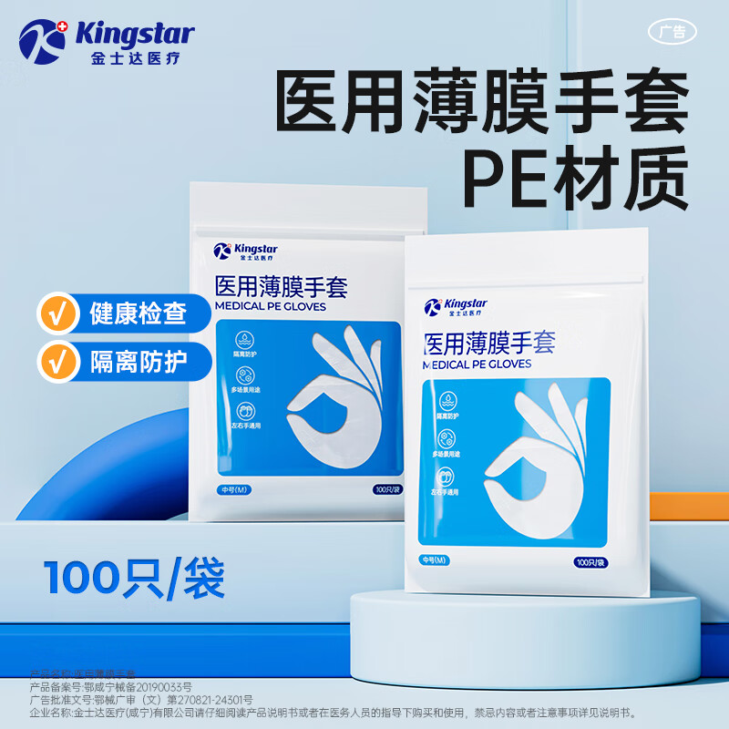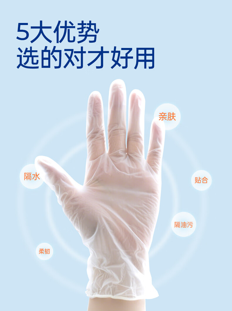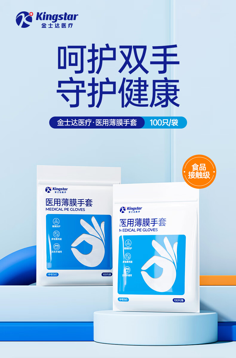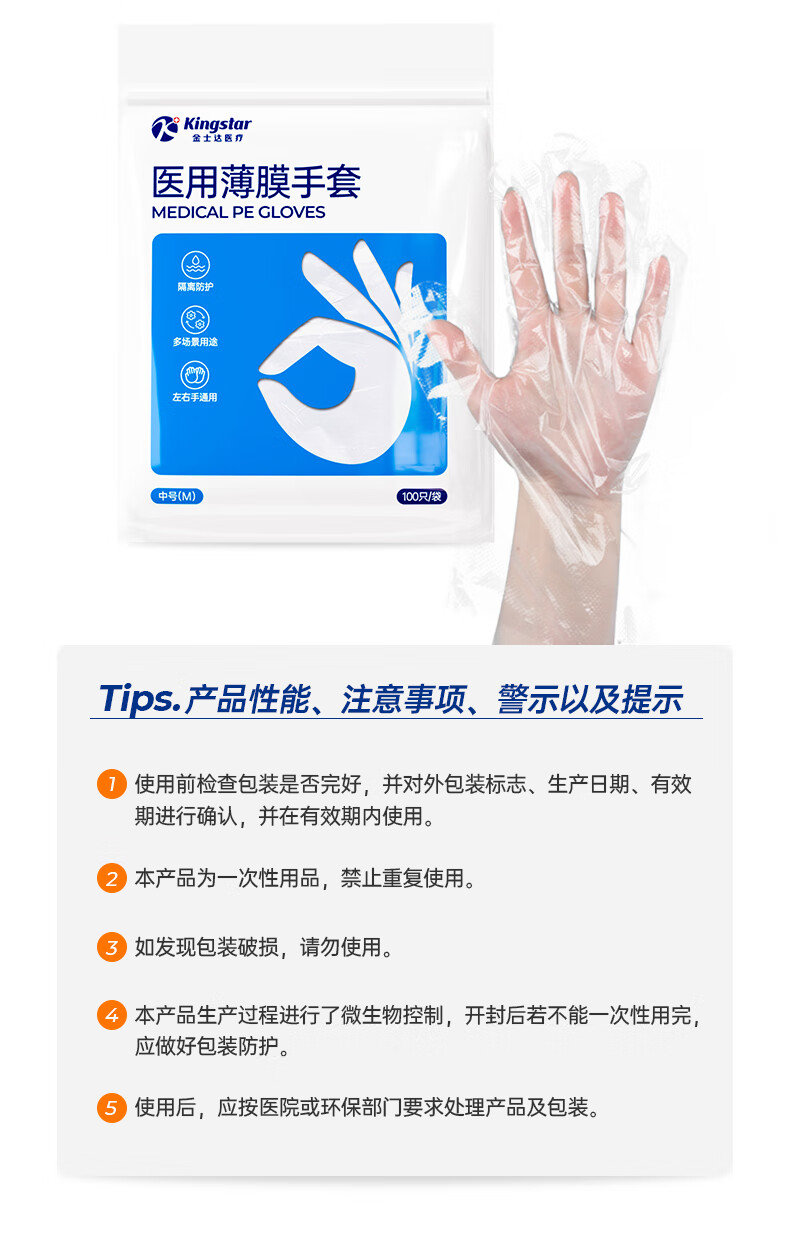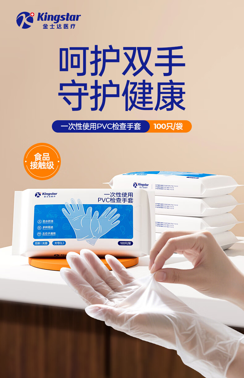 金士达医用一次性检查手套家用餐饮PVC手套食品接触级薄膜手套美容美发 【食品接触级】医用薄膜手套1袋共100只