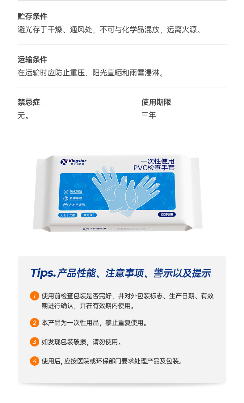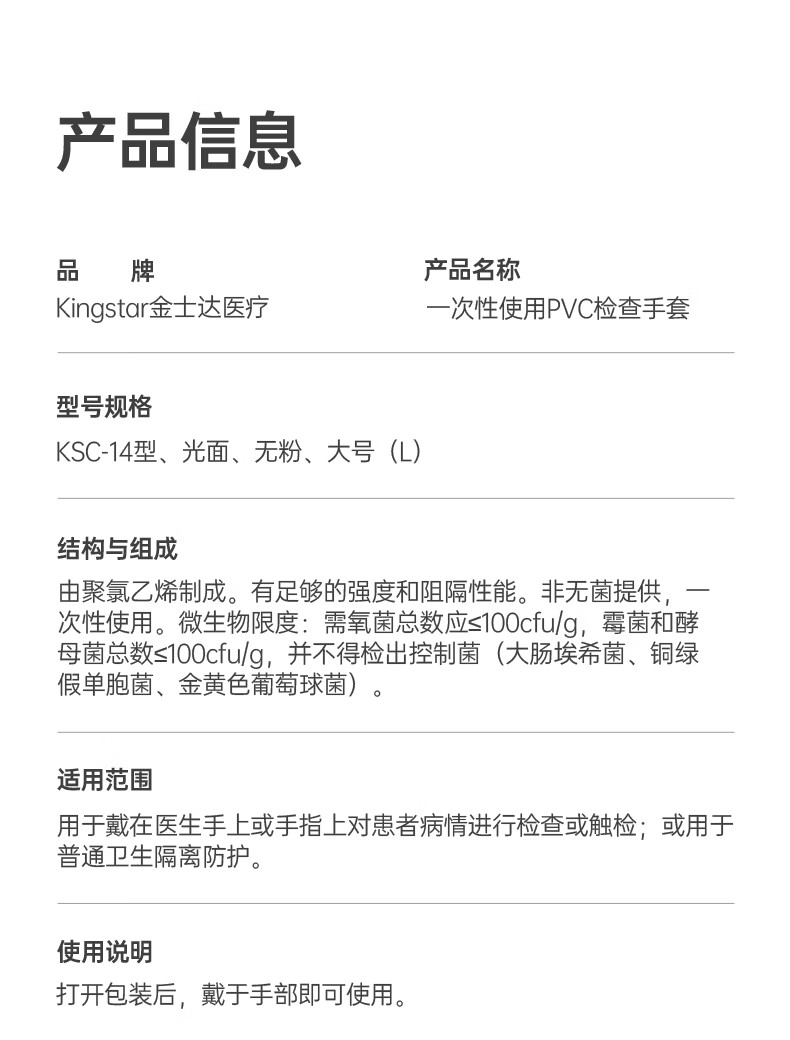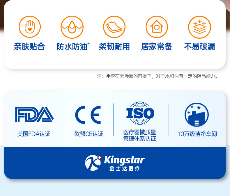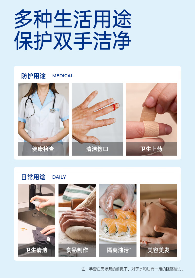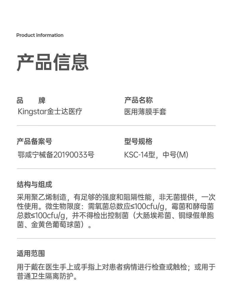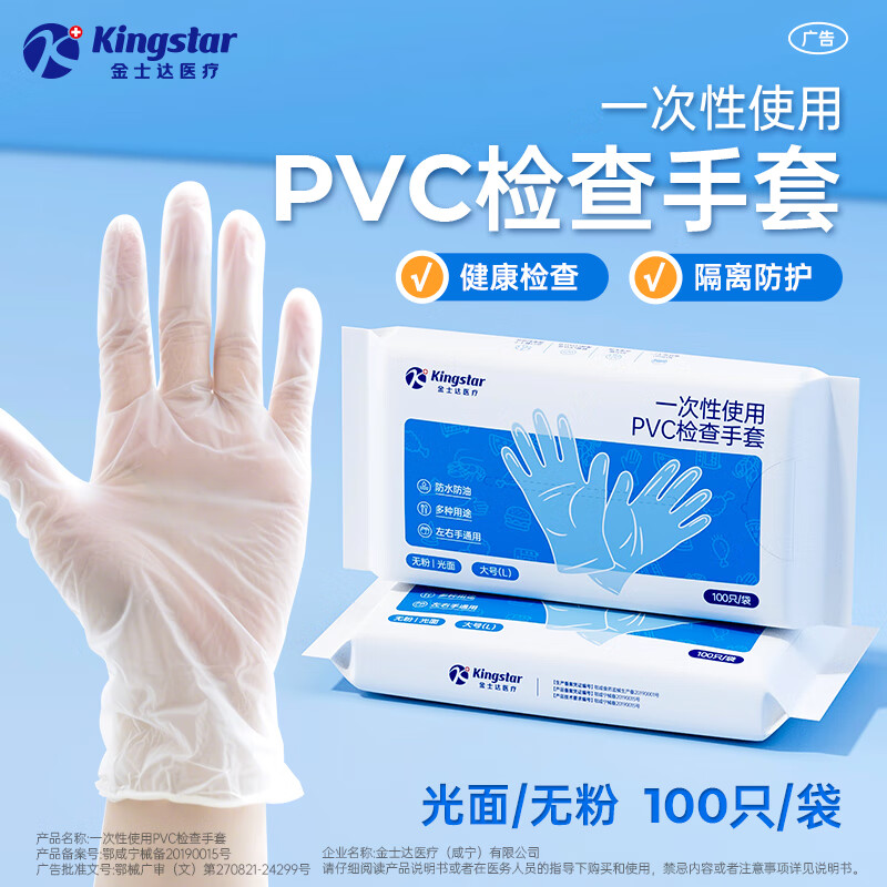 金士达医用一次性检查手套家用餐饮PVC手套食品接触级薄膜手套美容美发 【食品接触级】医用薄膜手套1袋共100只