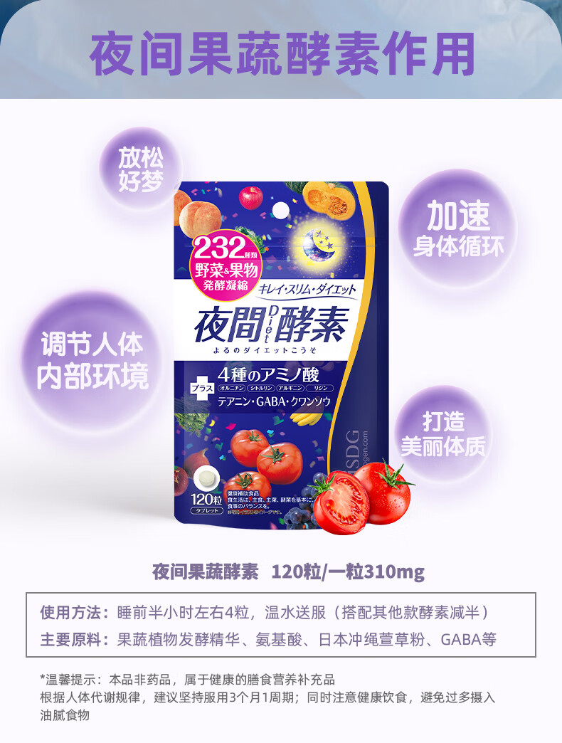 ISDG夜间酵素升级版232种水果蔬菜酵素120粒/袋 孝素梅原液减小肚子 【小蛮腰】夜间酵素 120粒*2袋