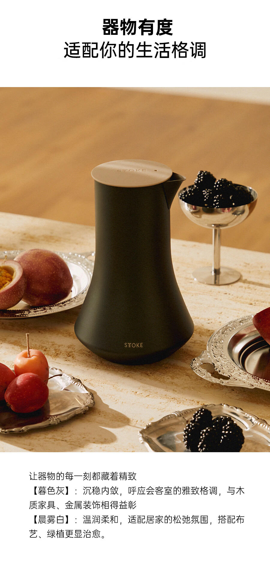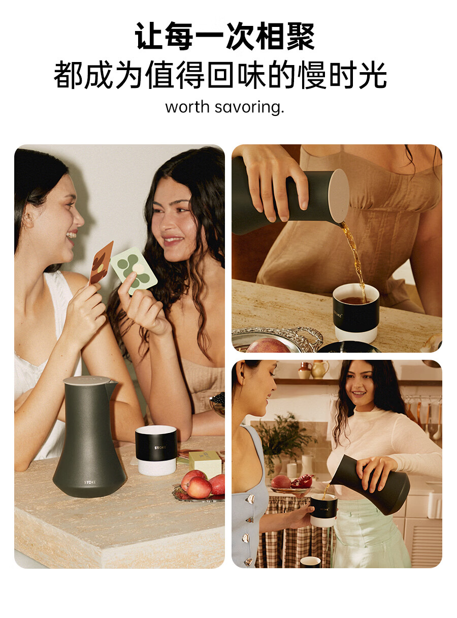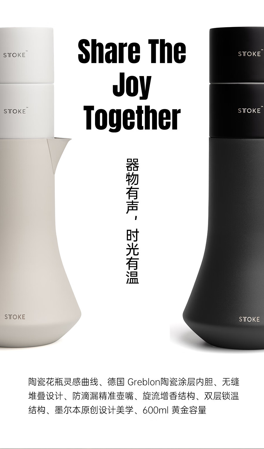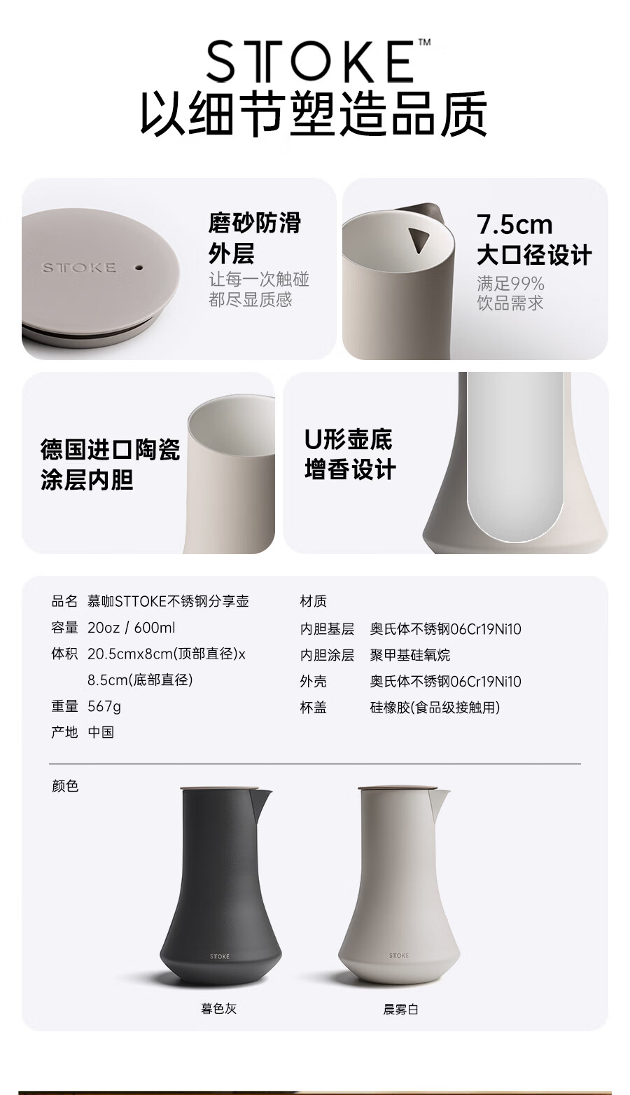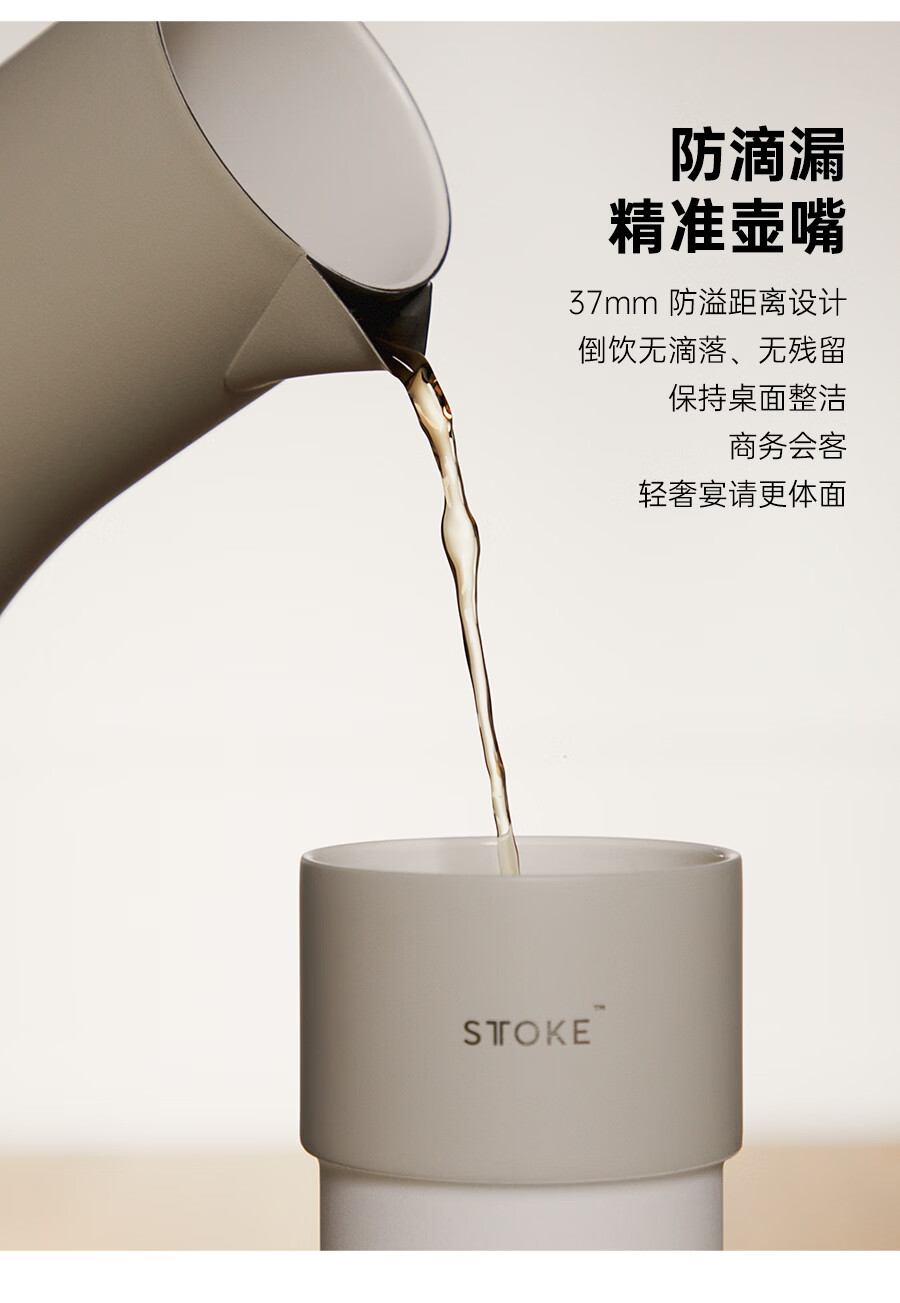 慕咖STTOKE轻奢分享壶防滴漏壶嘴咖啡保温壶陶瓷覆层高颜值手冲咖啡壶 暮色灰 600L