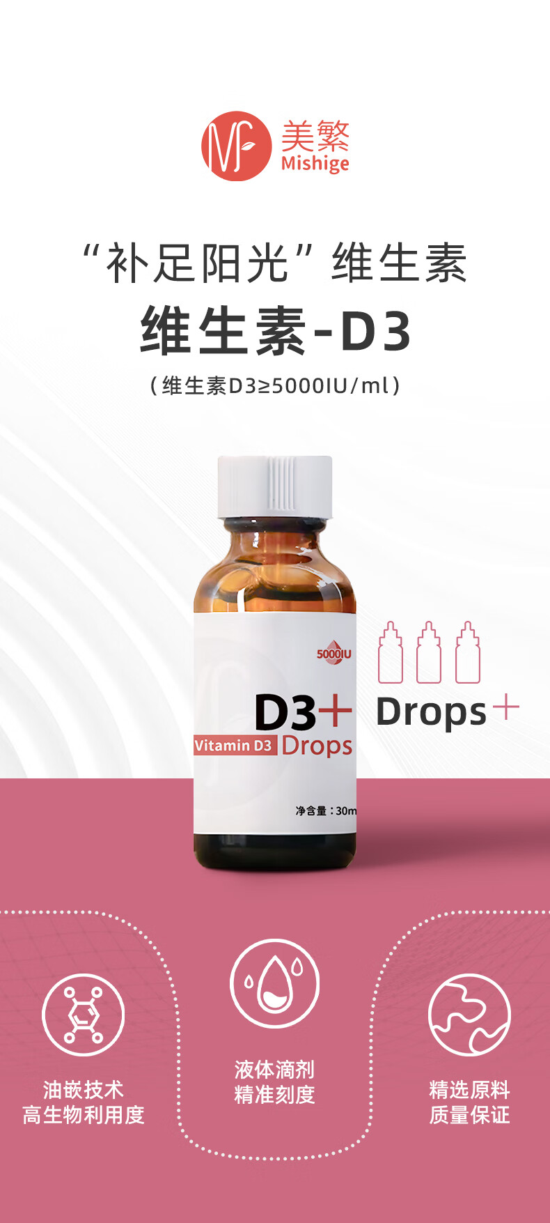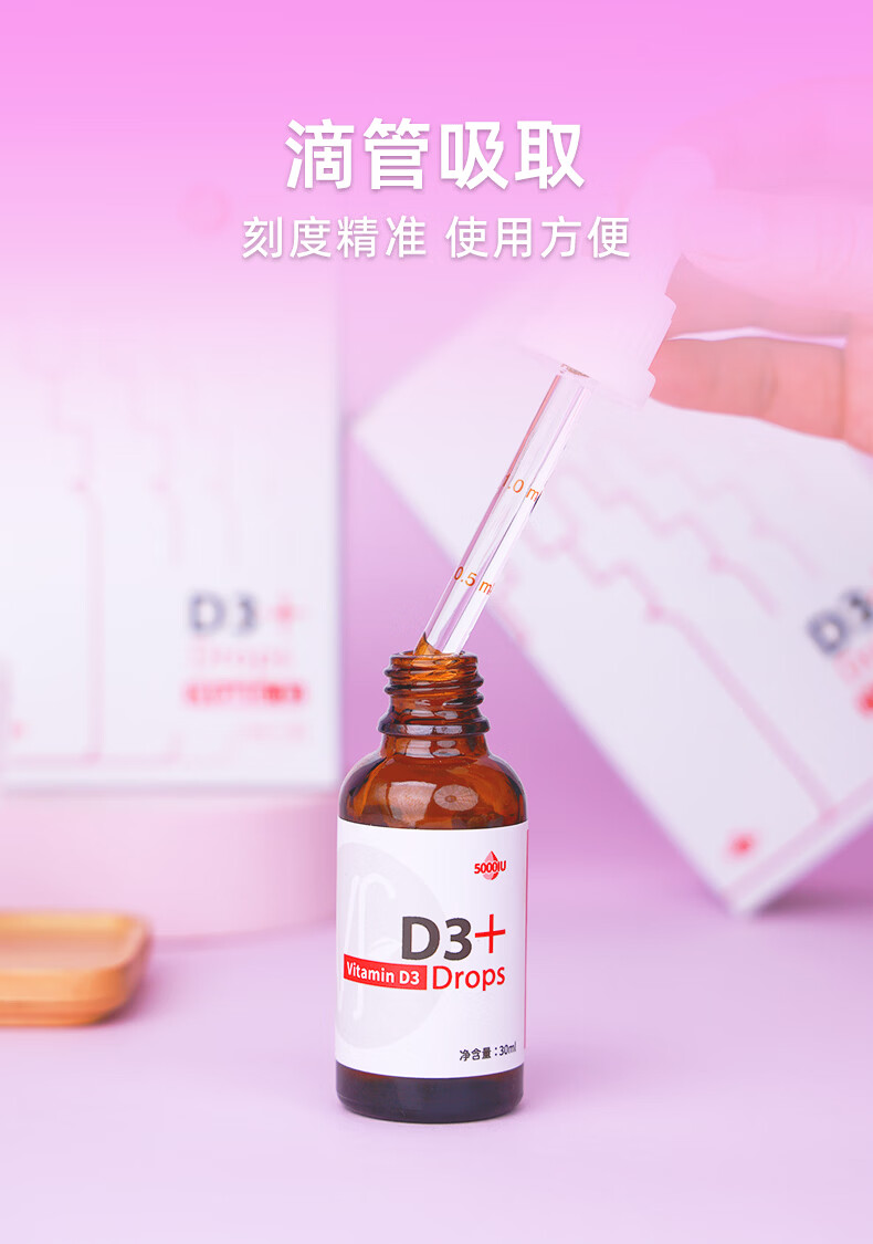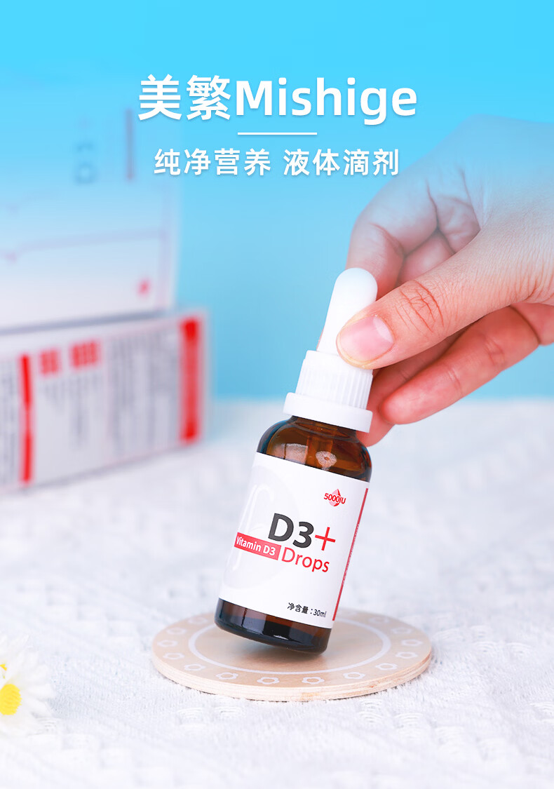 美繁胆钙化醇(维生素D3)液体滴剂 30ml 富含5000IU 成人儿童高含量 30ml/瓶*2瓶