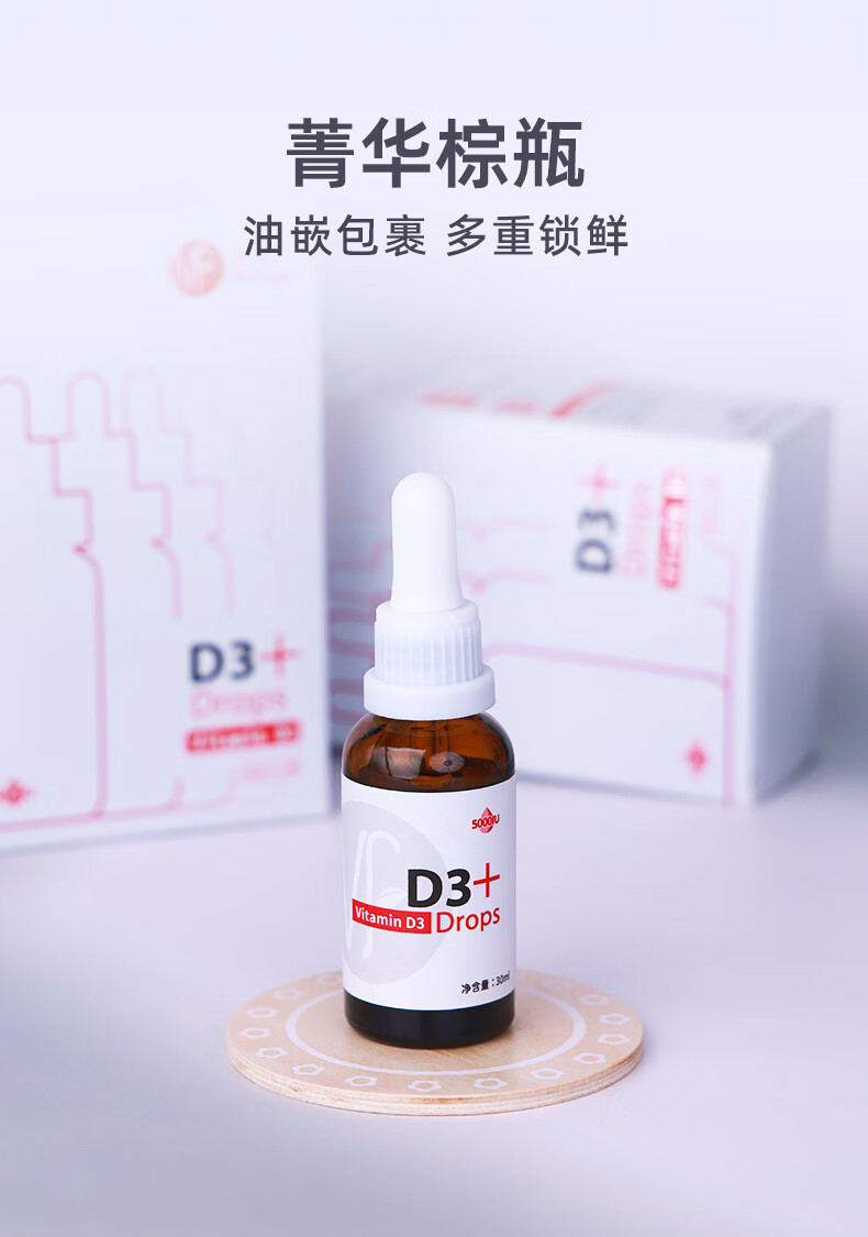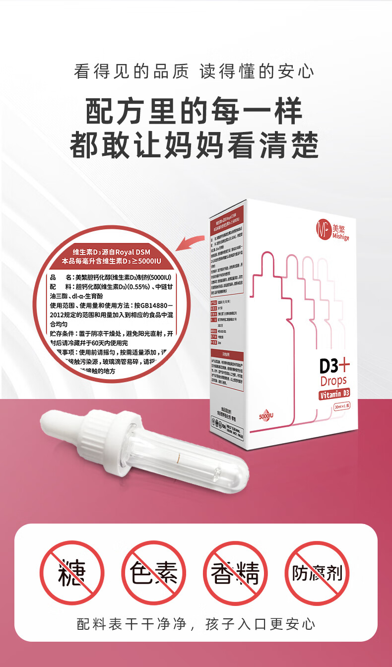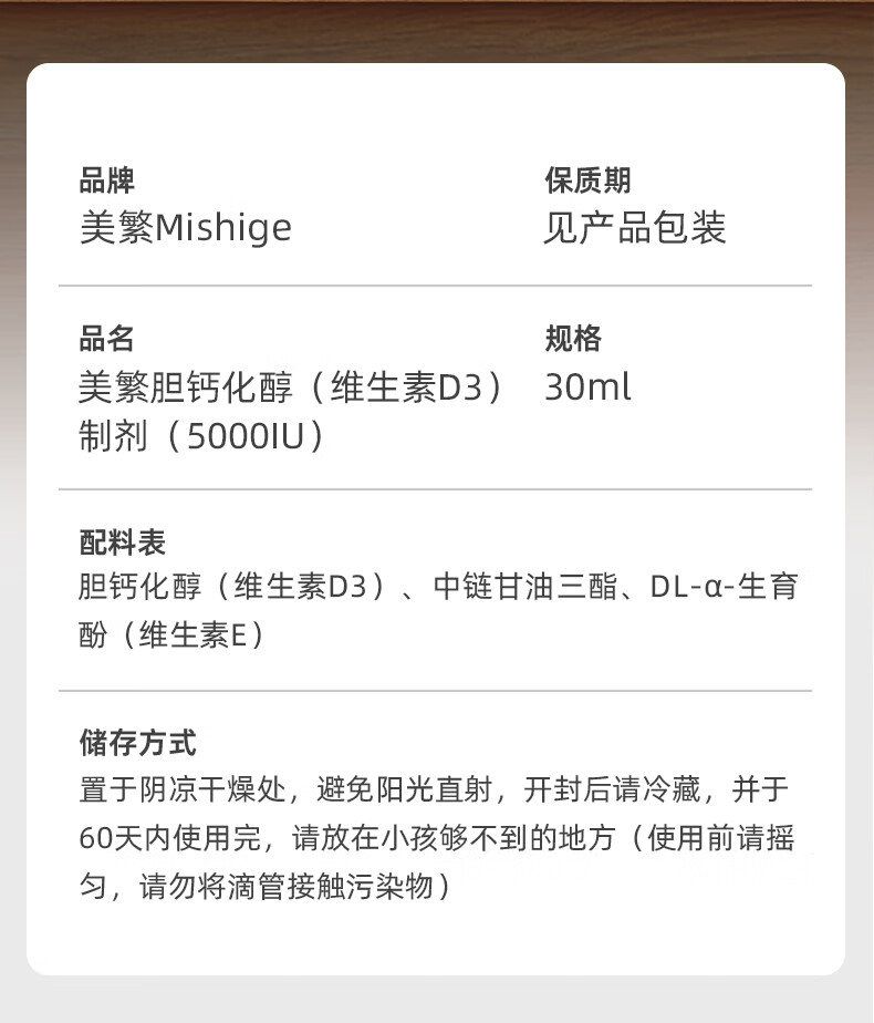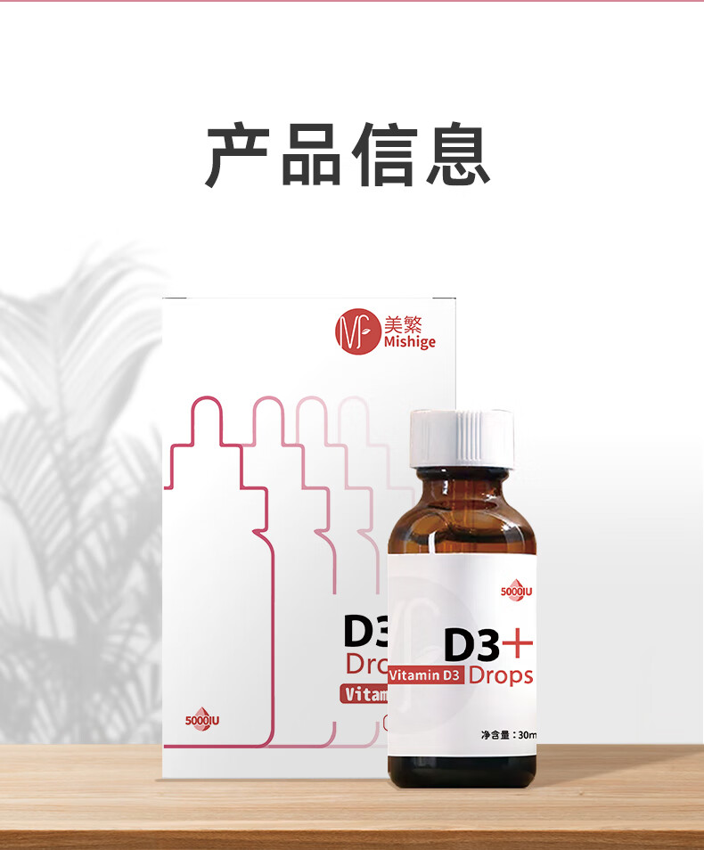 美繁胆钙化醇(维生素D3)液体滴剂 30ml 富含5000IU 成人儿童高含量 30ml/瓶*2瓶