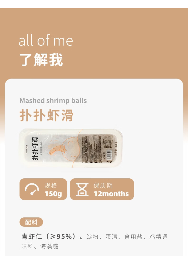 下厨房扑扑虾滑纯青虾新鲜大颗粒儿童虾饼丸虾仁营养火锅食材早餐 【尝鲜款】扑扑虾滑150g*4盒