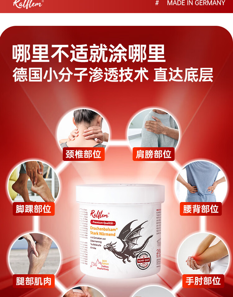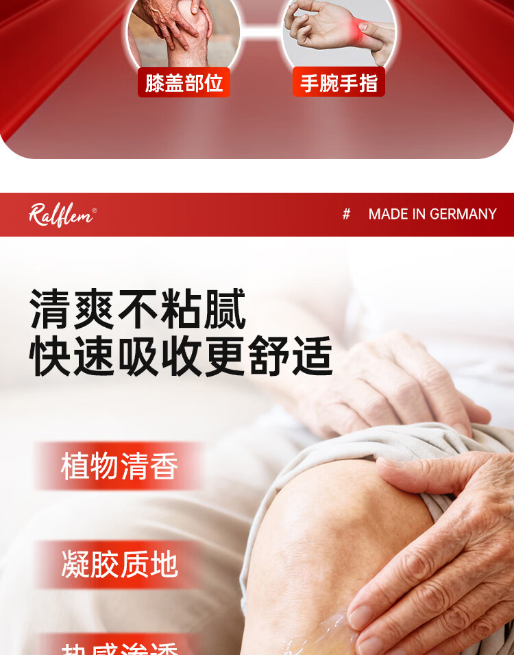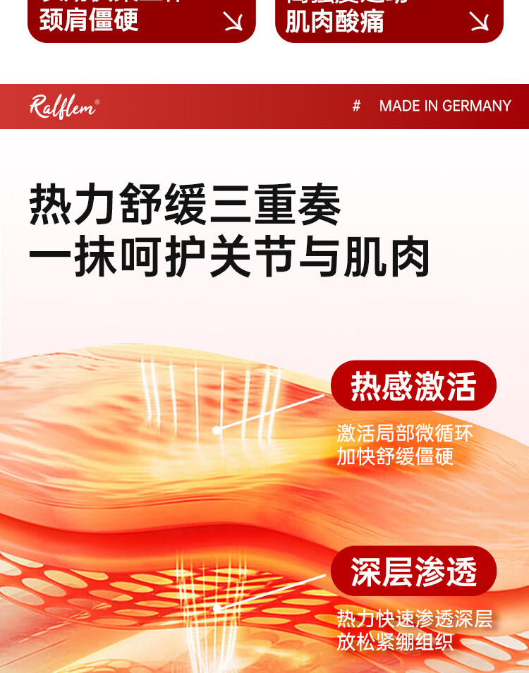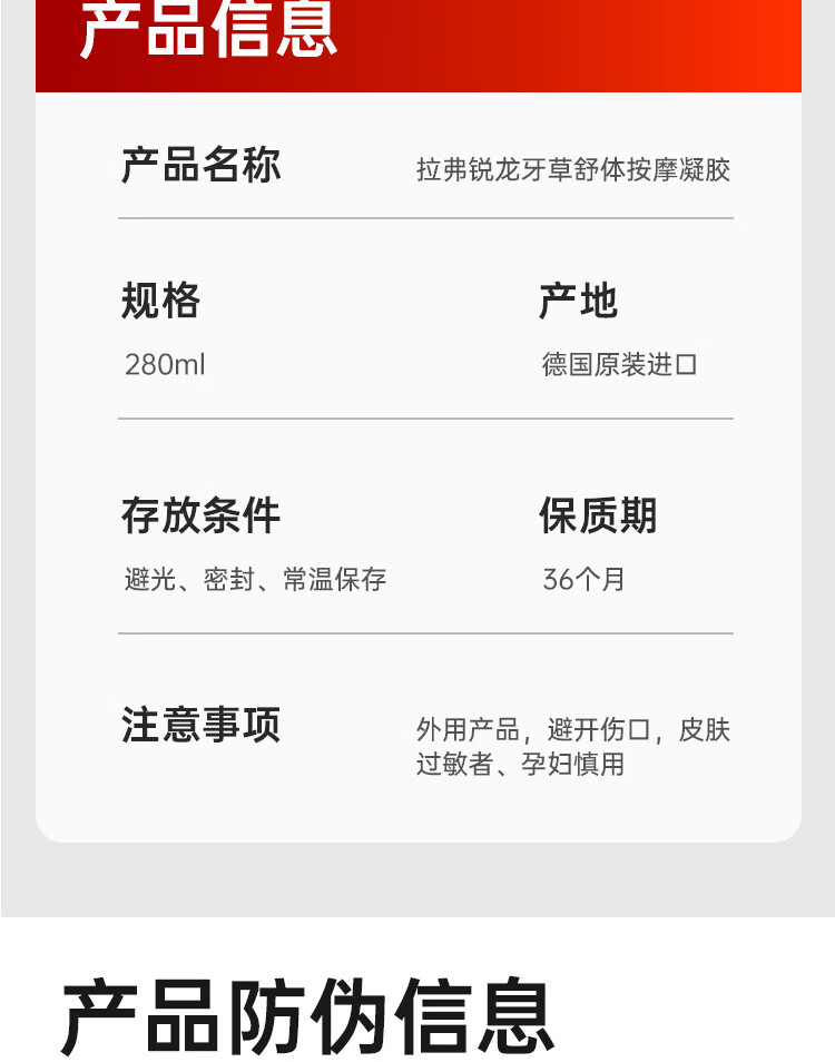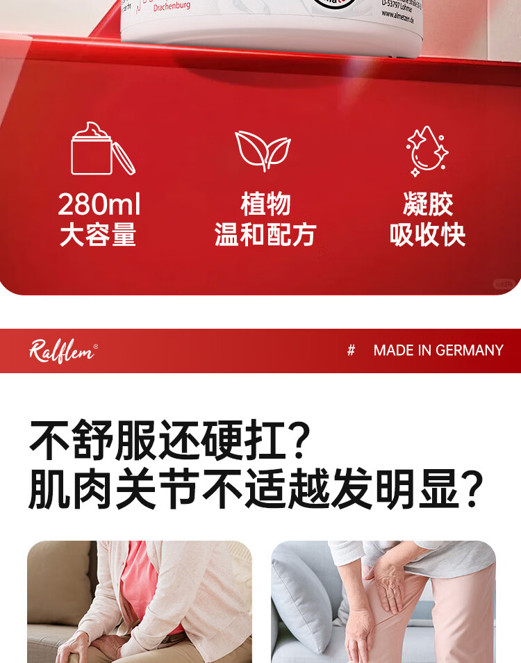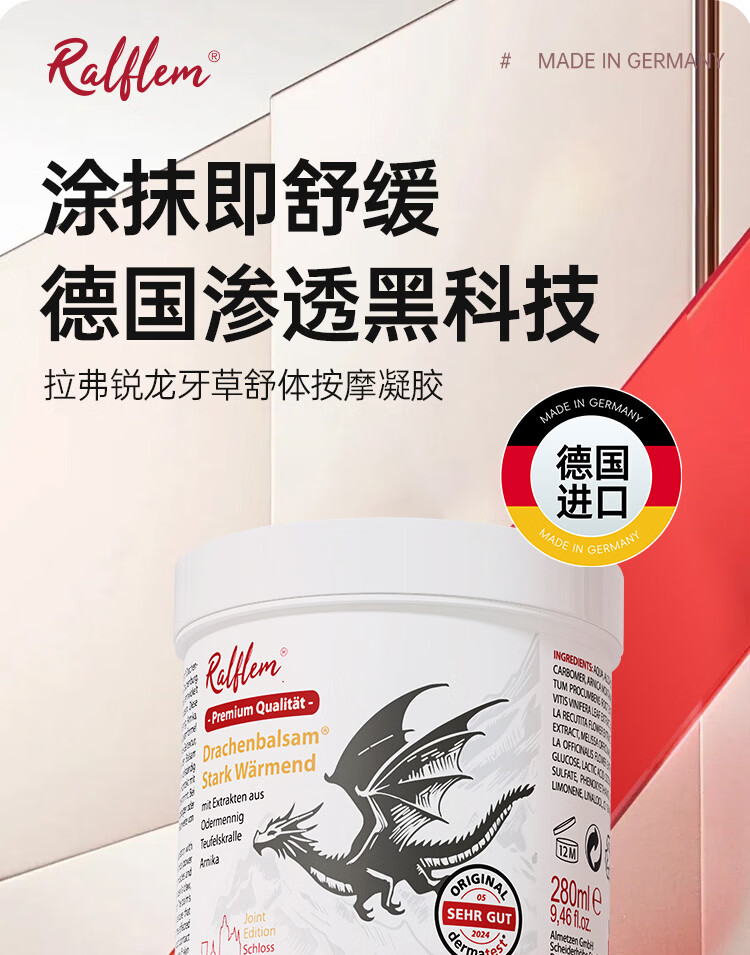 拉弗锐Ralflem德国进口运动热身按摩舒缓膏肩颈腰膝盖关节肌肉热敷凝胶 拉弗锐龙芽草舒体按摩凝胶 100mL * 1支