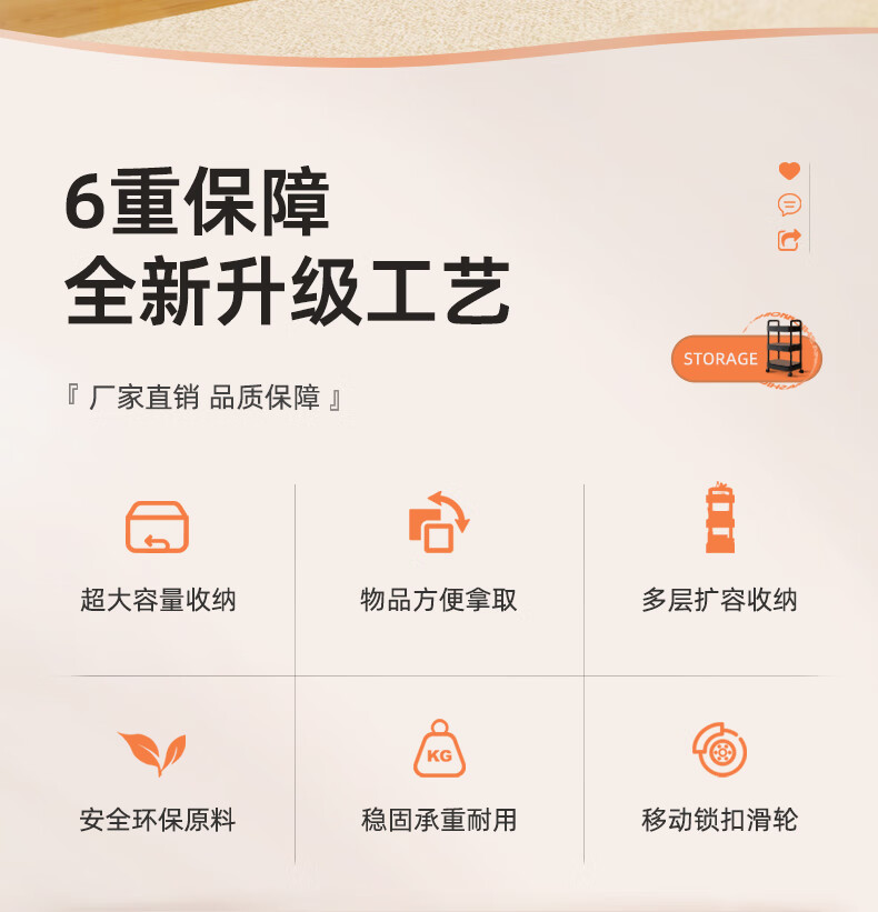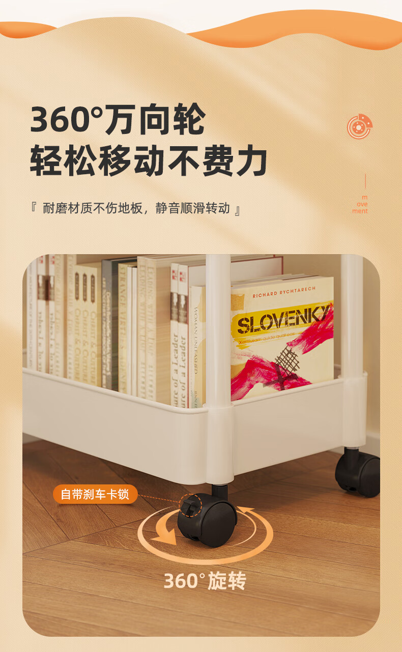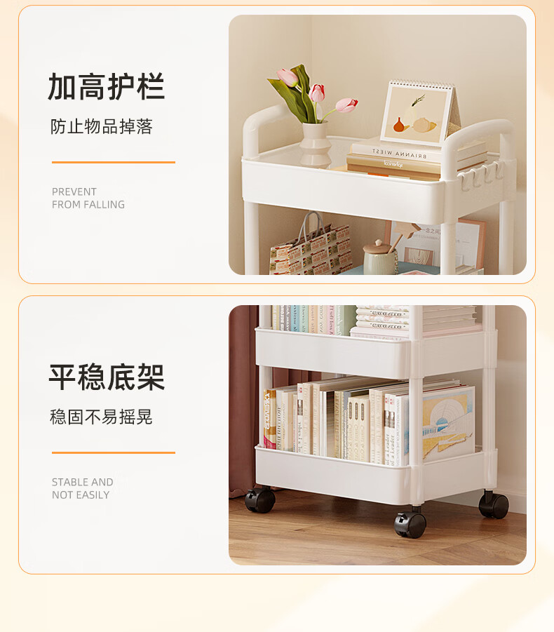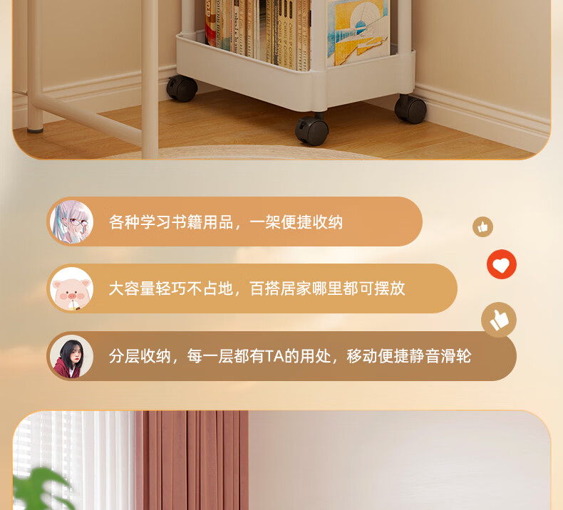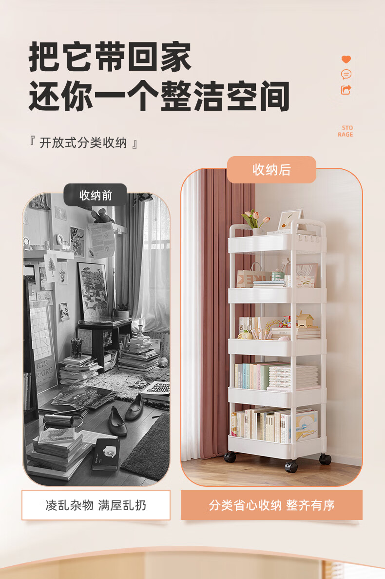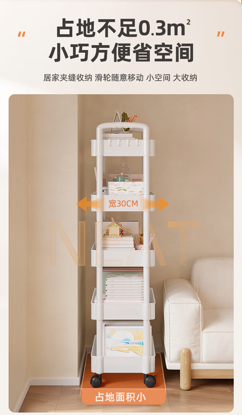 胖东来同款小推车置物架落地多层卧室厨房零食移动浴室卫生间收纳 推荐【四层】黑色|+挂钩*4+滑轮|升级加厚环保材 36x23cm x 5层