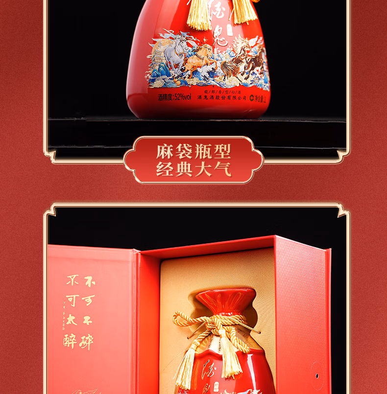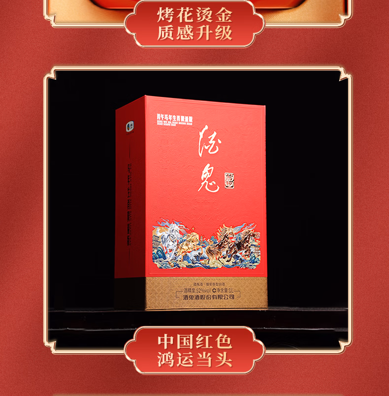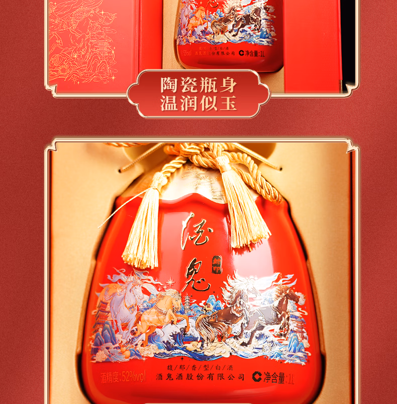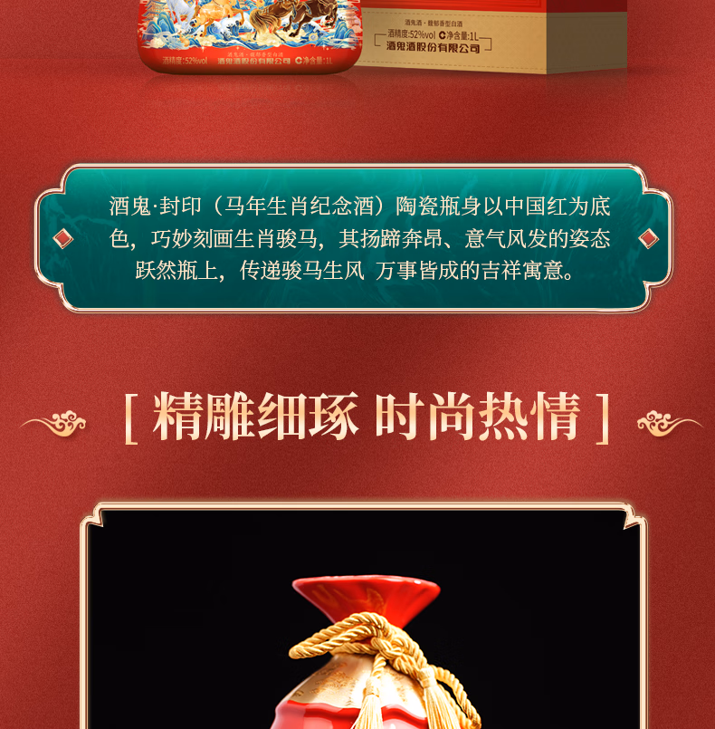 酒鬼酒 封印马年生肖酒限量版 馥郁香型高度白酒 52度 1L 1瓶 (马年生肖)