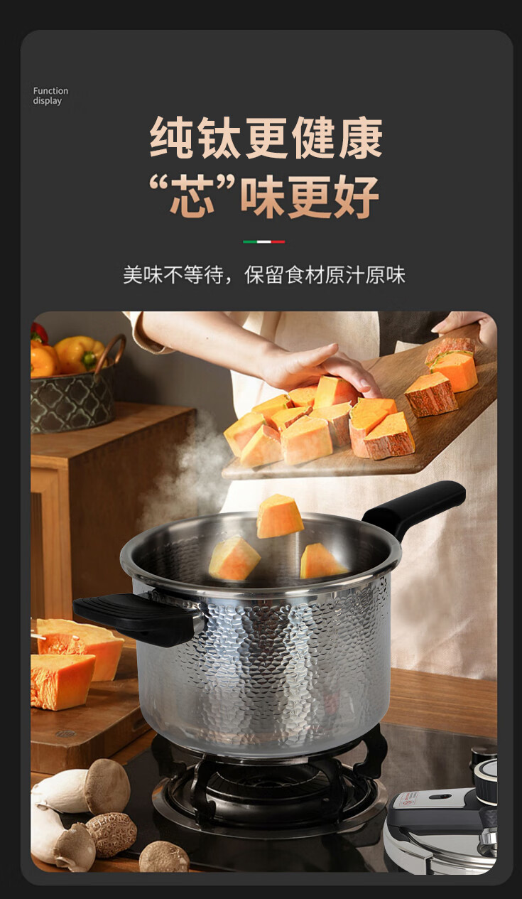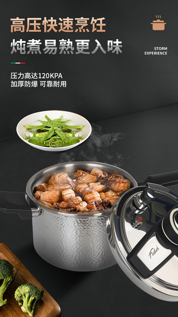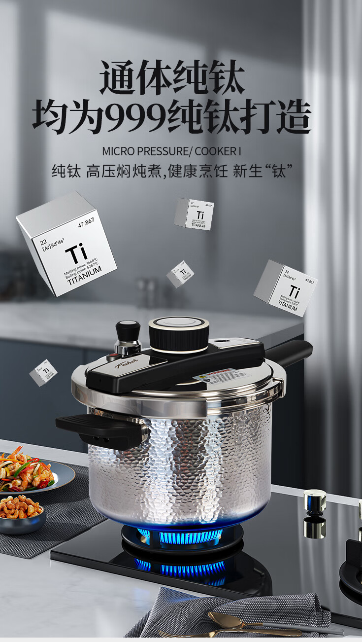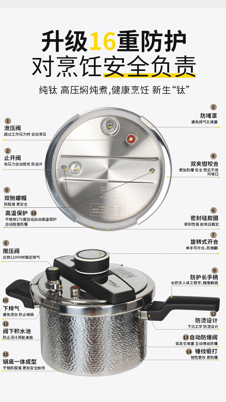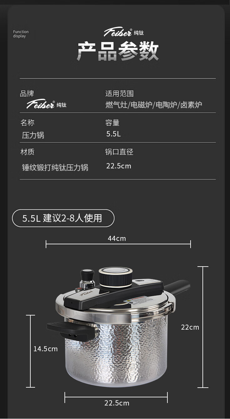斐倍尔Feiben纯钛板锤纹锻铸高档家用防爆高压锅压力锅电磁炉明火通用 钢本色 22cm 5.5L 纯钛高压锅5.5L适用1-8人