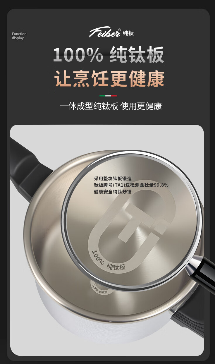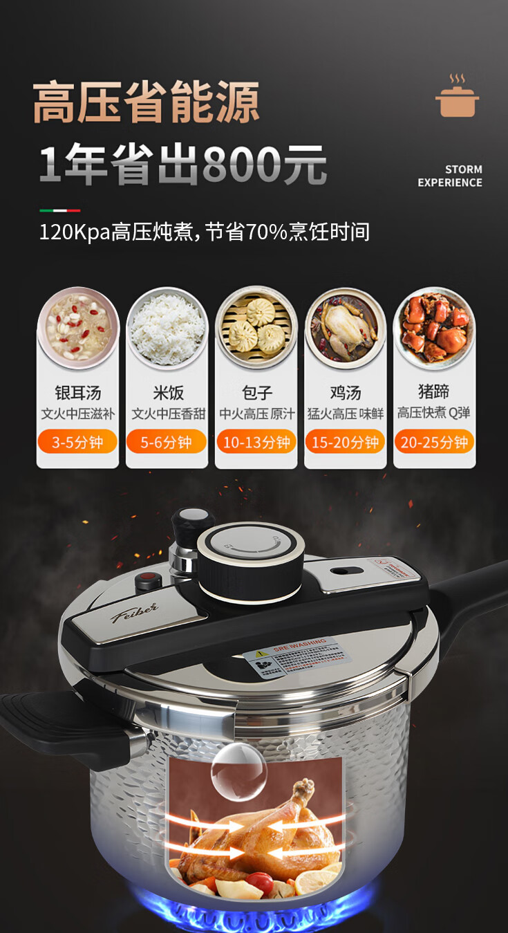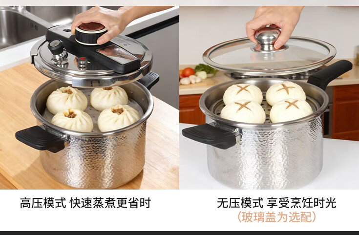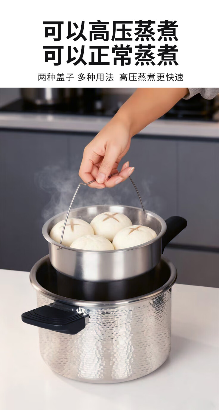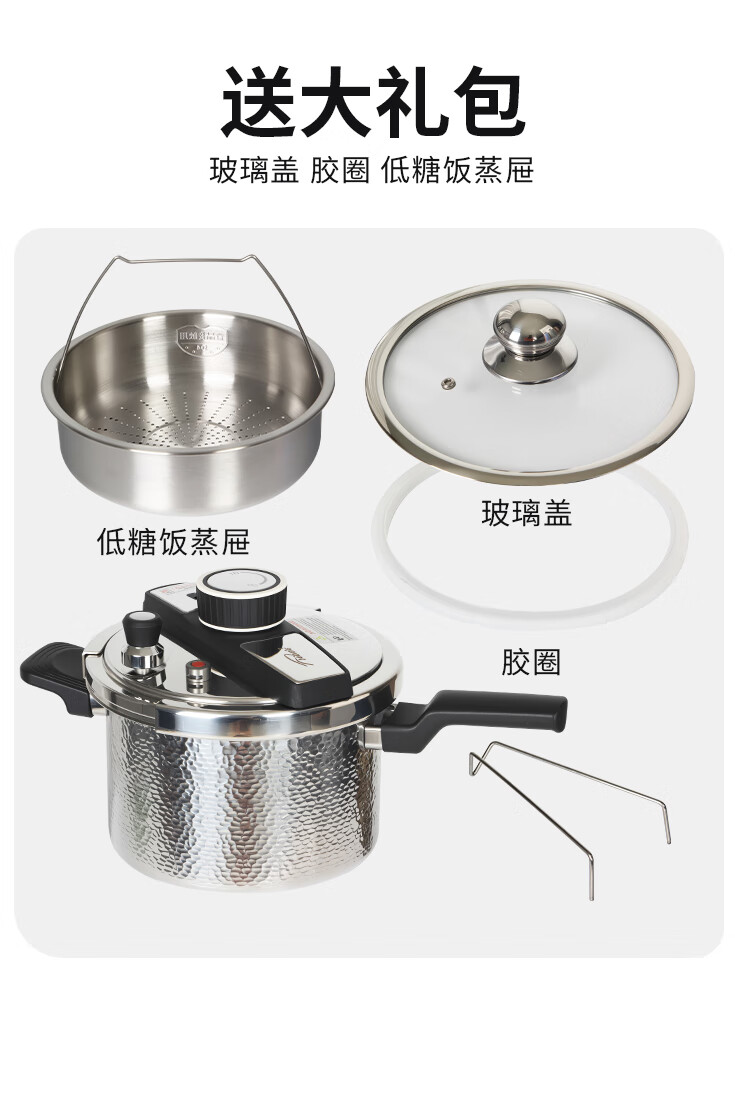 斐倍尔Feiben纯钛板锤纹锻铸高档家用防爆高压锅压力锅电磁炉明火通用 钢本色 22cm 5.5L 纯钛高压锅5.5L适用1-8人