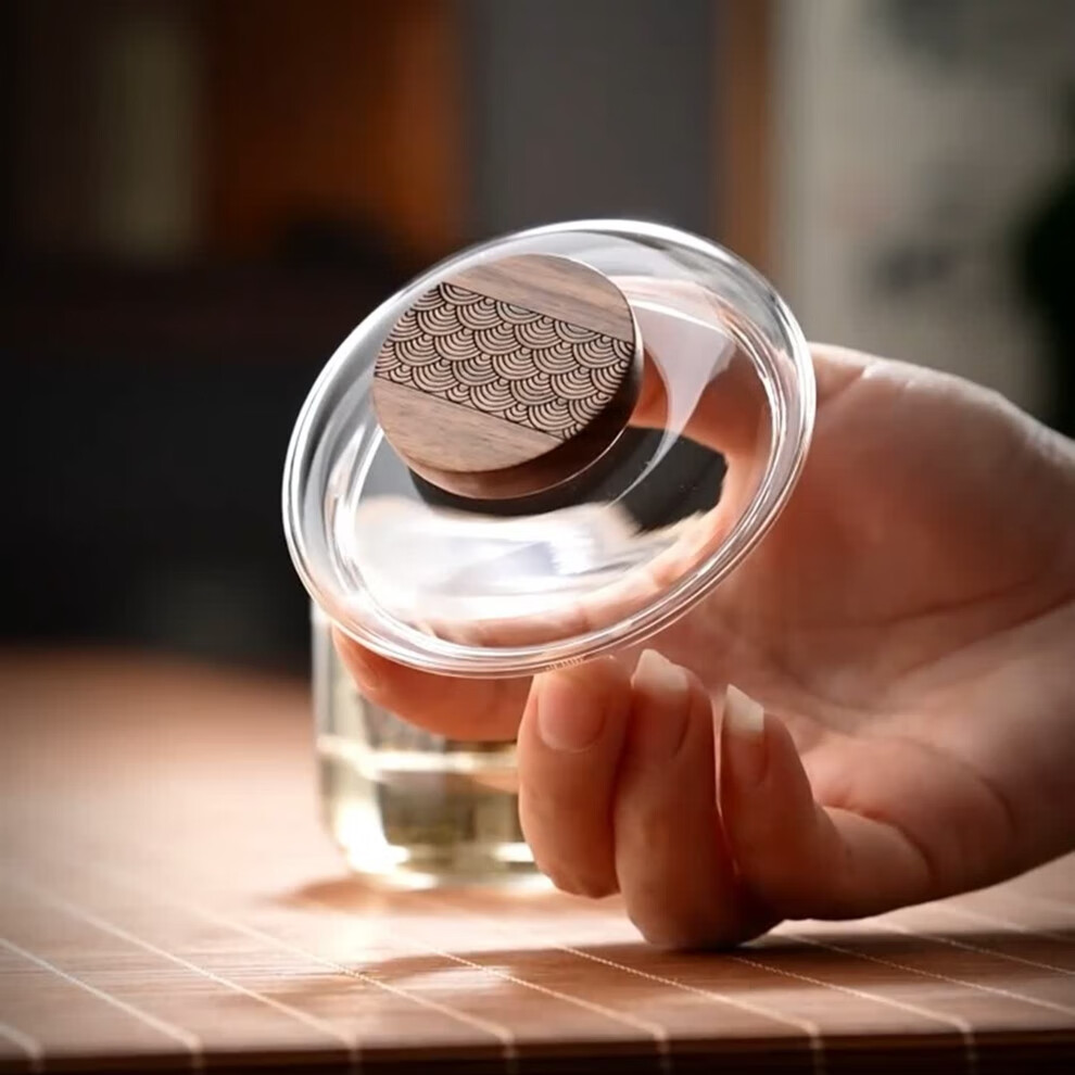 【精选】奶锅家用双耳高硼硅玻璃汤锅透明可明火电陶炉加热耐高温 木纹顶盖小汤锅(1个装) 14cm