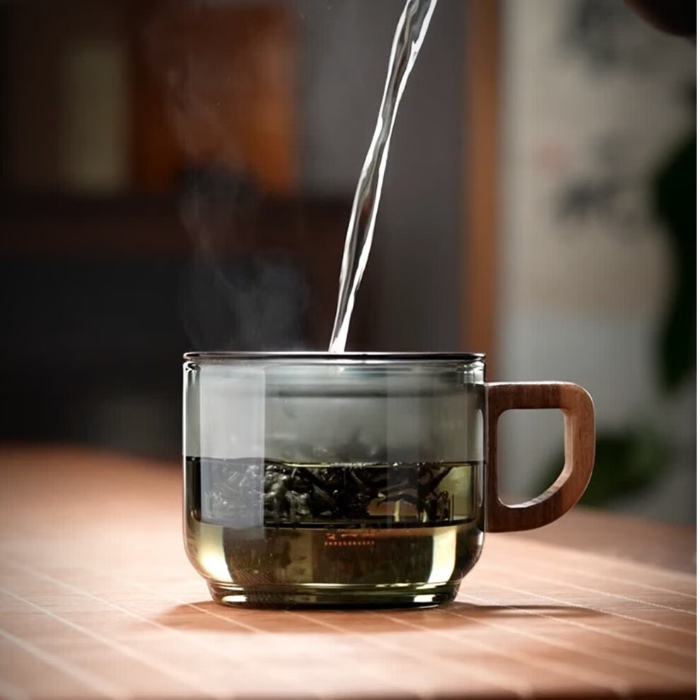 全度高硼硅耐高温办公杯烟灰色经典简约带过滤茶水分离玻璃杯迷你 悠然杯烟灰色款1个250ml