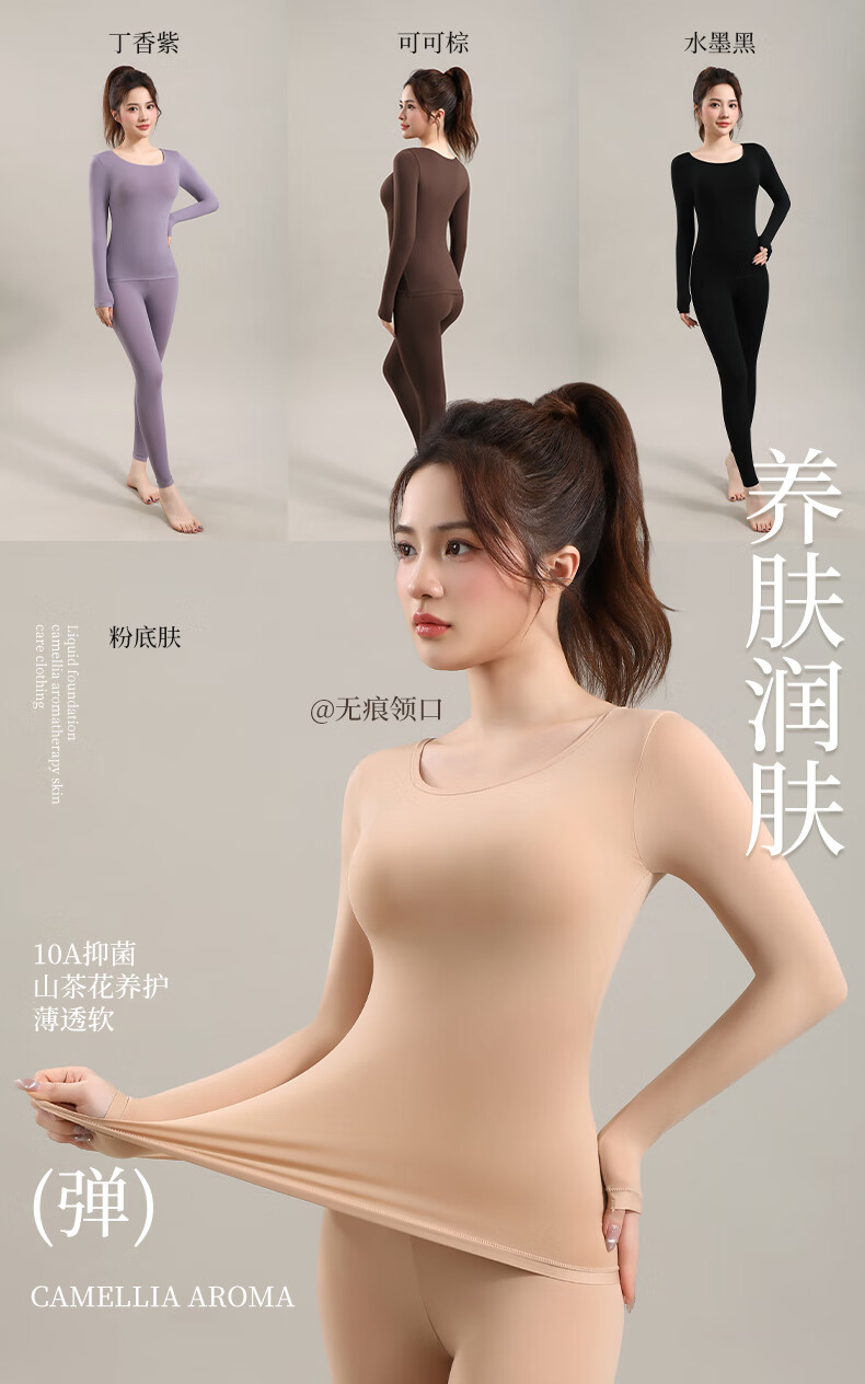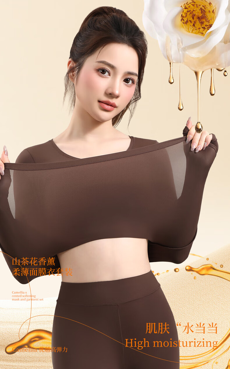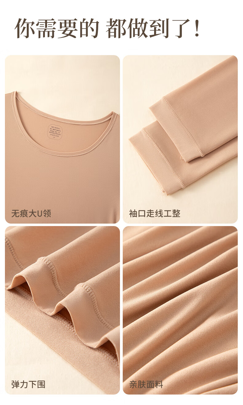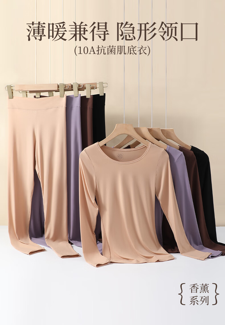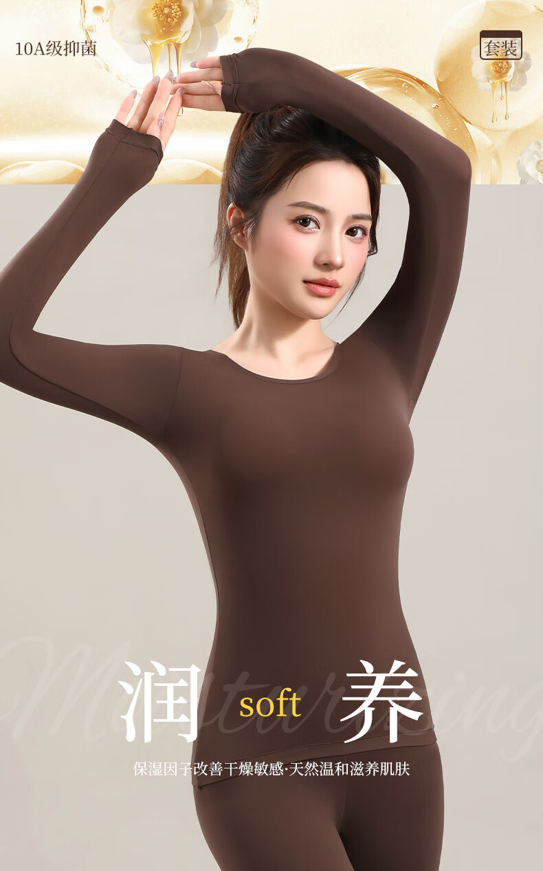 宜而爽10A抗菌保暖套装女士美肤衣法式紧身长袖圆领秋冬薄款无痕内穿 可可棕/上衣+裤子 XL