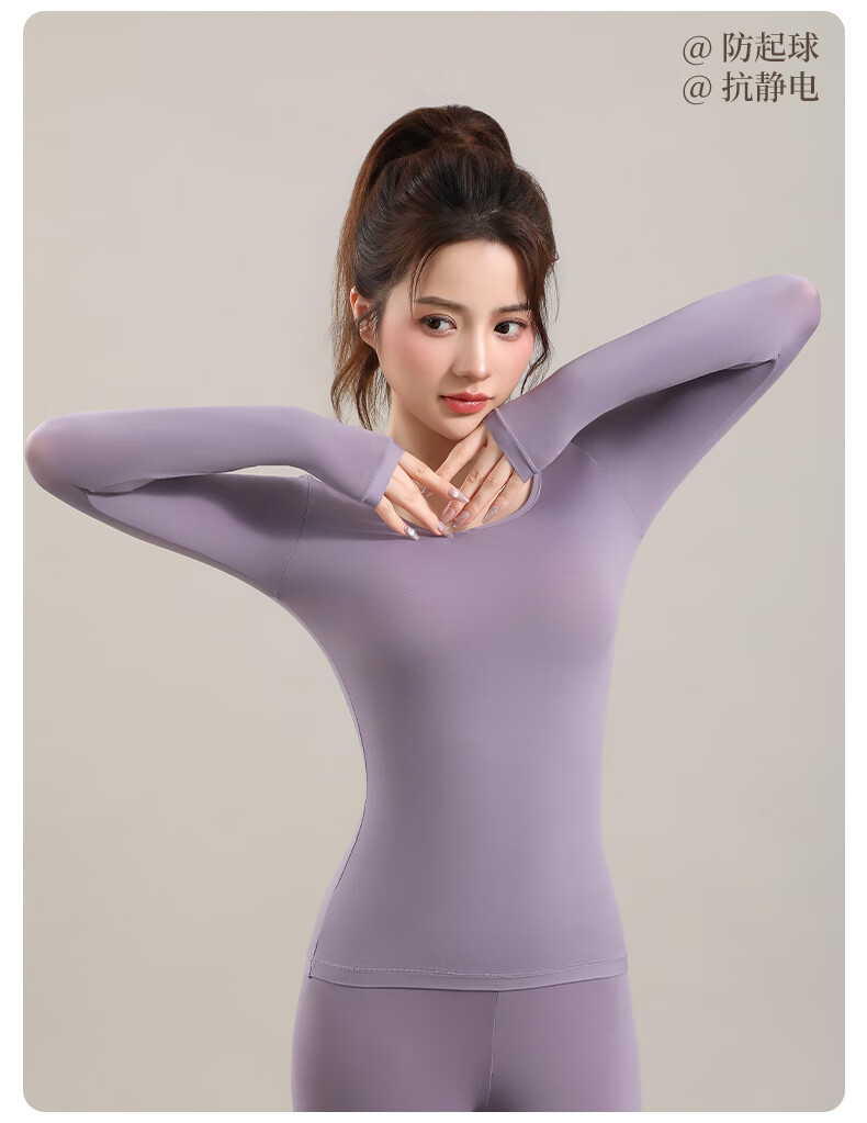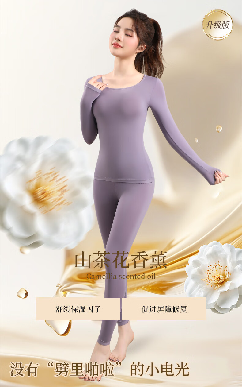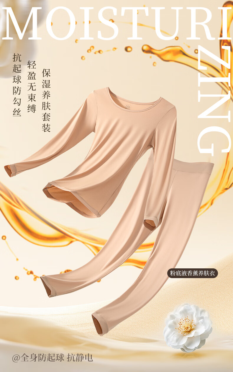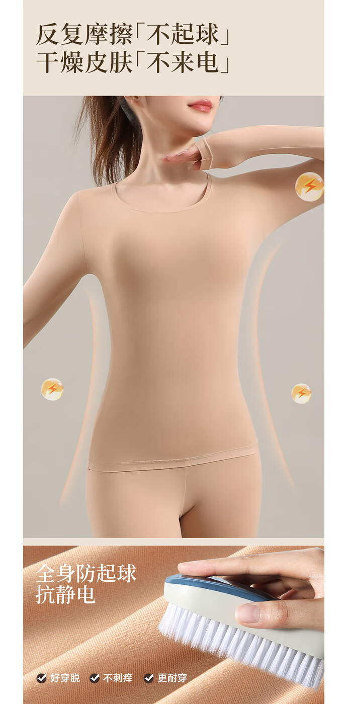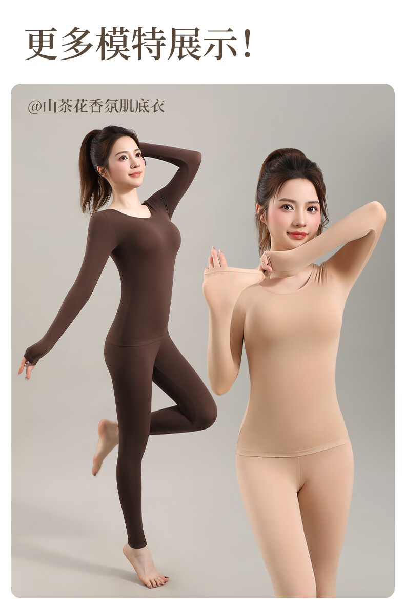 宜而爽10A抗菌保暖套装女士美肤衣法式紧身长袖圆领秋冬薄款无痕内穿 可可棕/上衣+裤子 XL