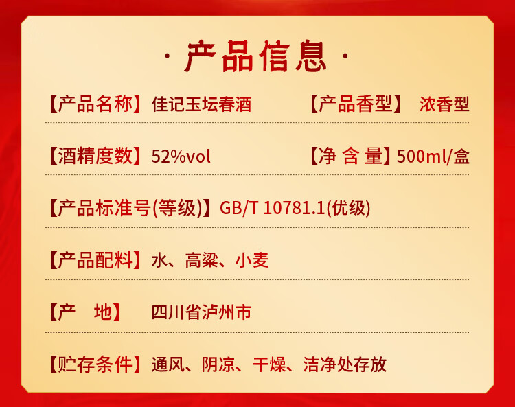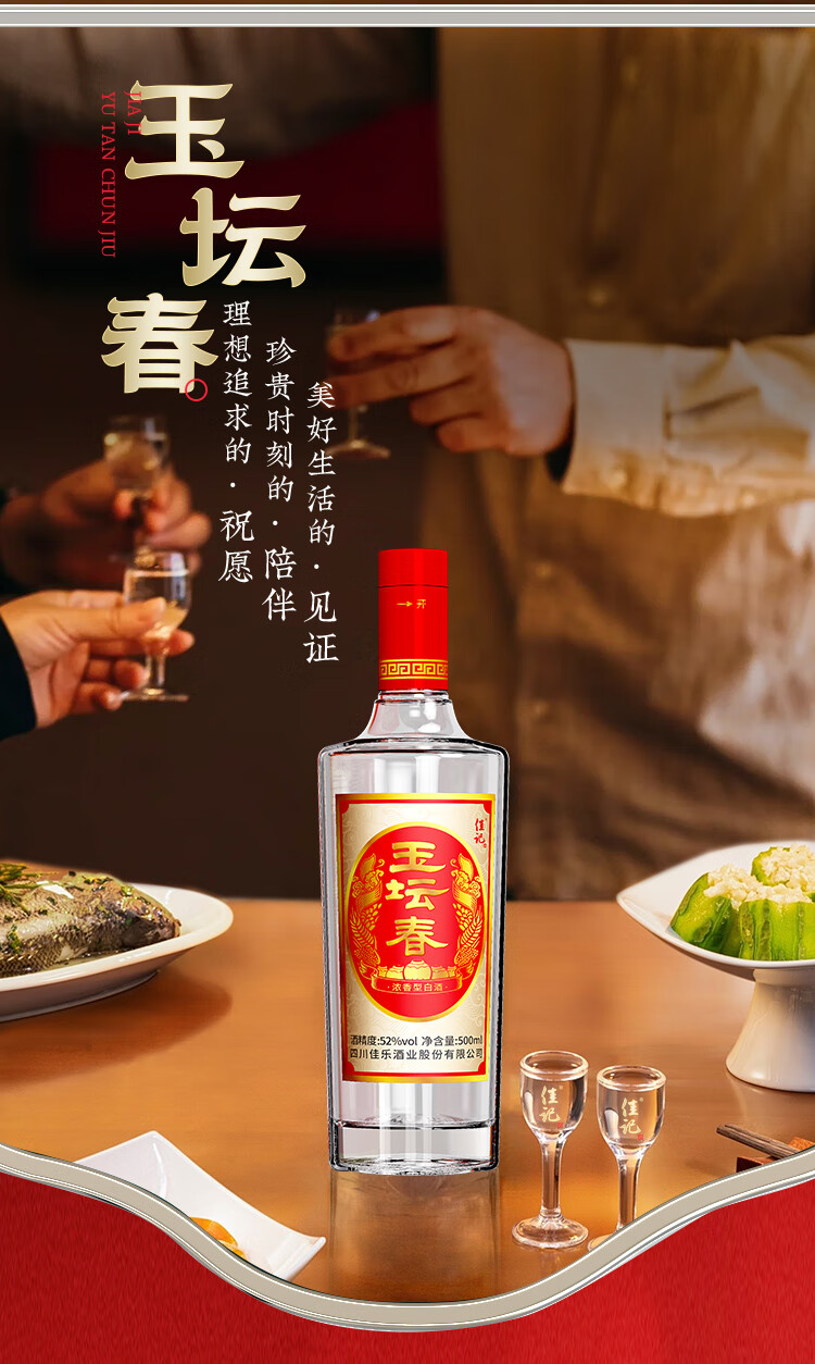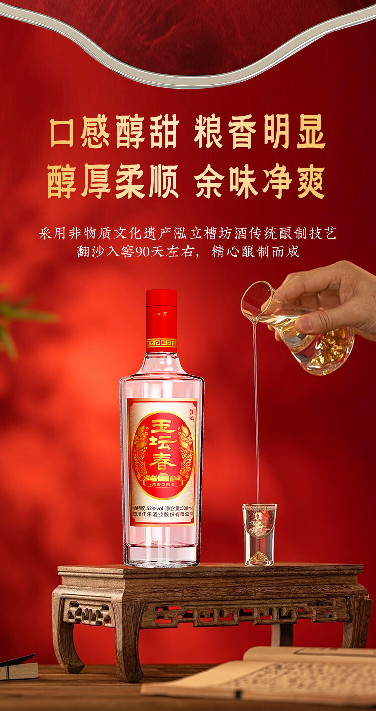 佳记新品玉坛春 酒厂直营 高粱浓香白酒52度 自饮口粮宴席 礼盒装 52度 500mL 1瓶