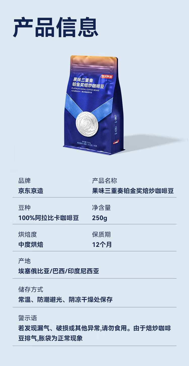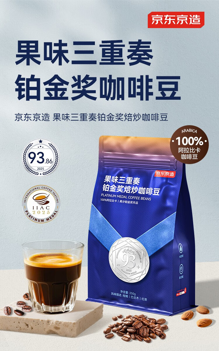 京东京造 意式拼配咖啡豆250g 中度烘焙高分铂金奖阿拉比卡豆果酸明亮