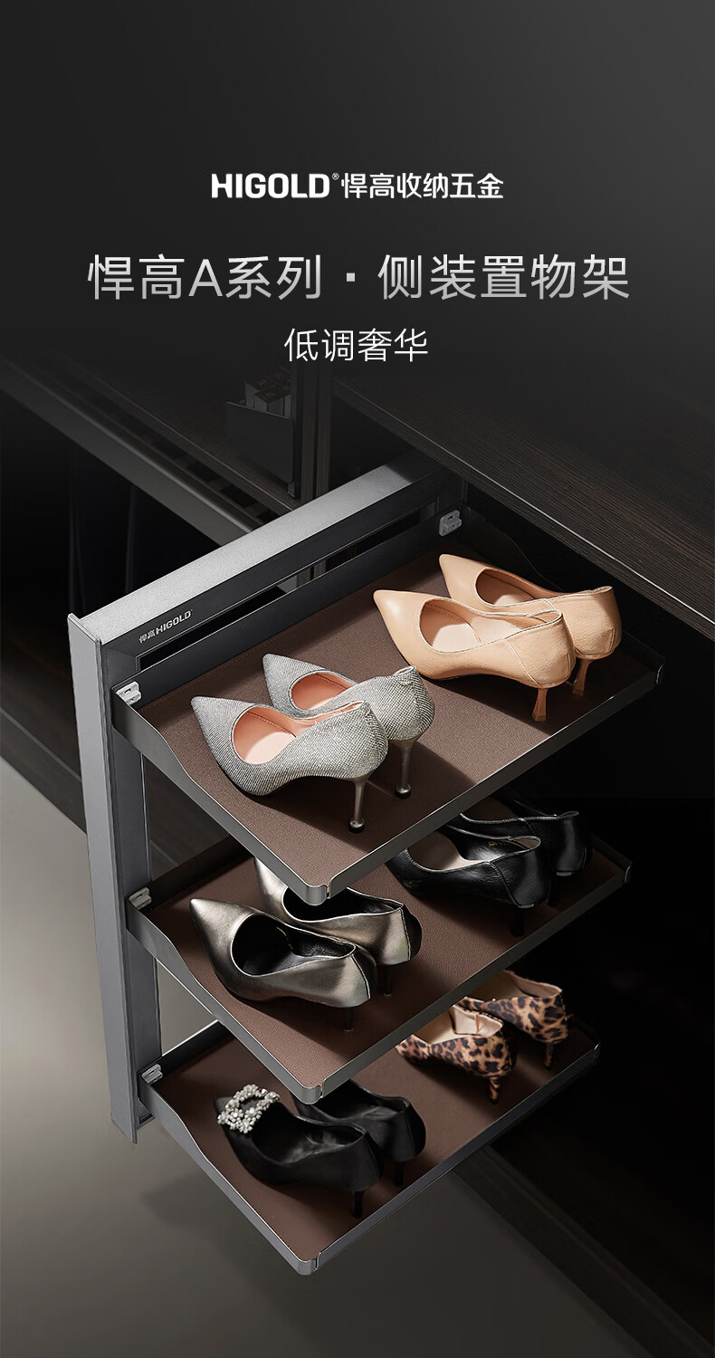 悍高(HIGOLD)家用衣帽间衣柜侧装收纳鞋架置物架衣柜内置推拉鞋架衣橱收纳架 侧装置物架400柜|左装