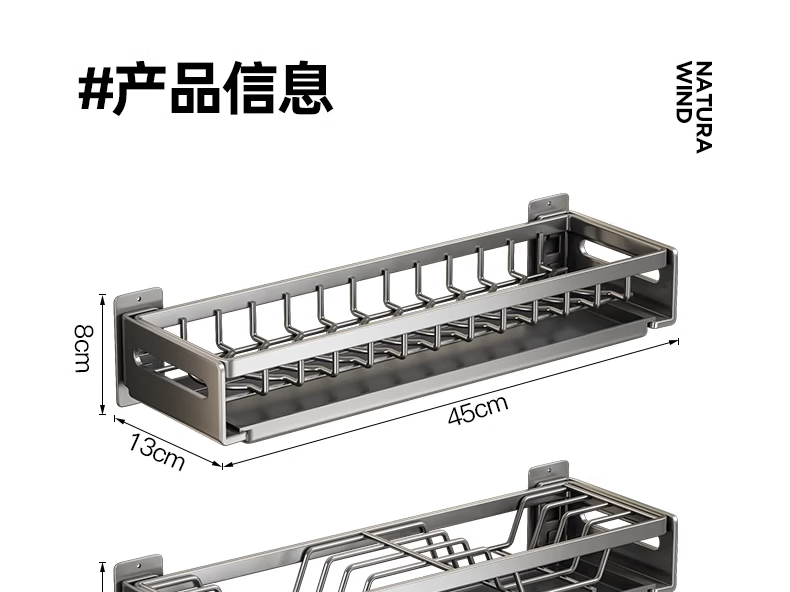 尔思家吸盘厨房置物架壁挂式免打孔佐料收纳调料架家用调料瓶厨具收纳架 【强力吸附- 掉落包赔】中号带钩单层