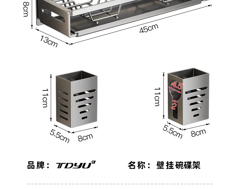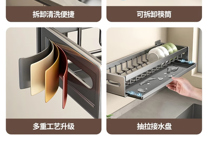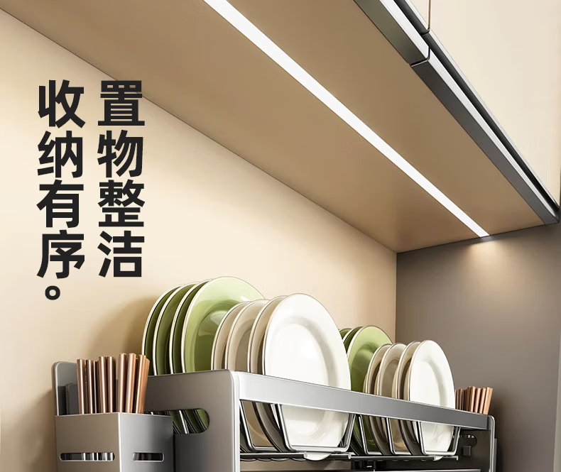 馨婺家碗架沥水架厨房洗碗架免打孔墙上壁挂碗碟筷子收纳架碗盘置物架子 枪灰色-碗架【常规款】