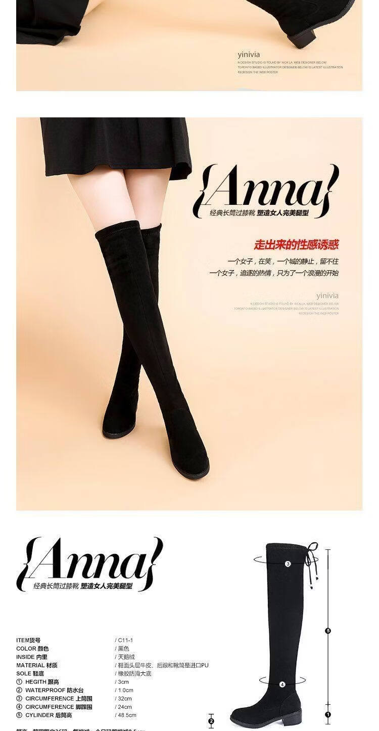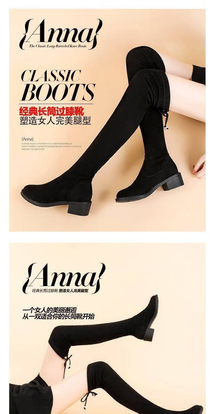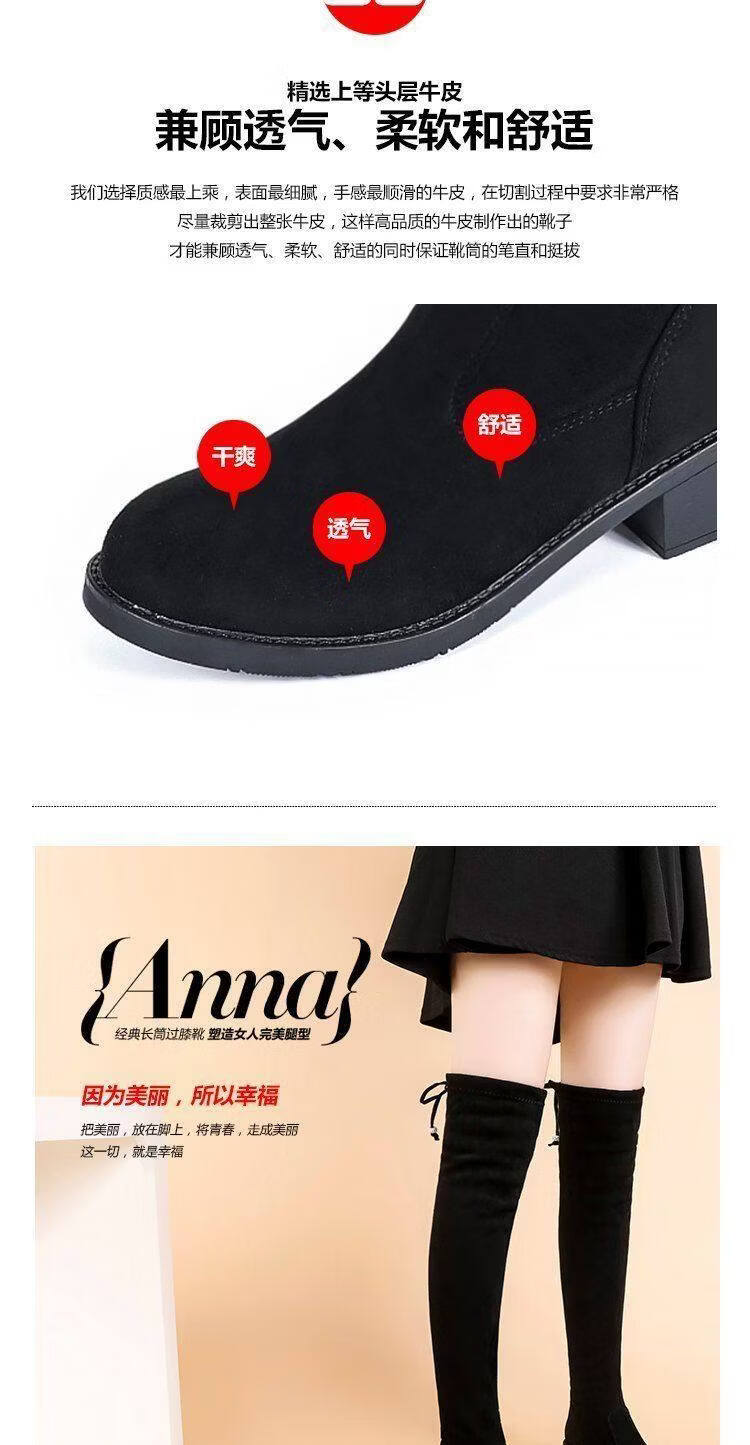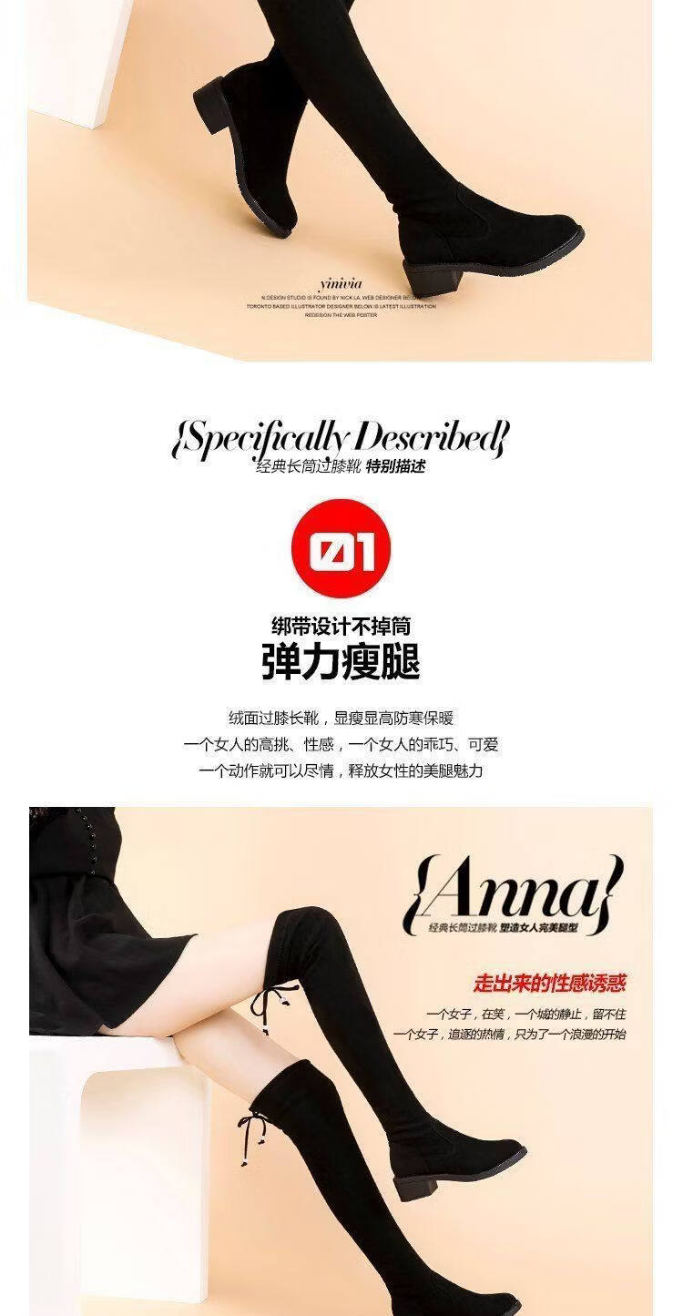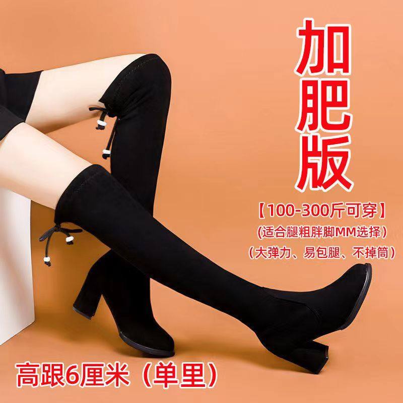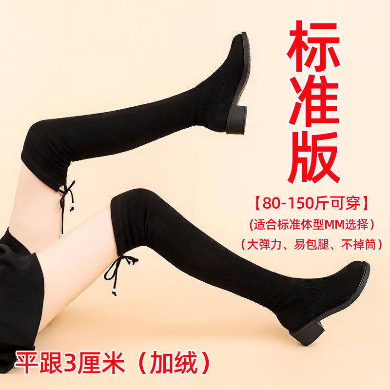 稻草人(MEXICAN)31-46码 大码女鞋41胖mm加肥长靴42显瘦过膝靴43加棉不掉筒靴子女 525黑色标准版加绒【3厘米】 31