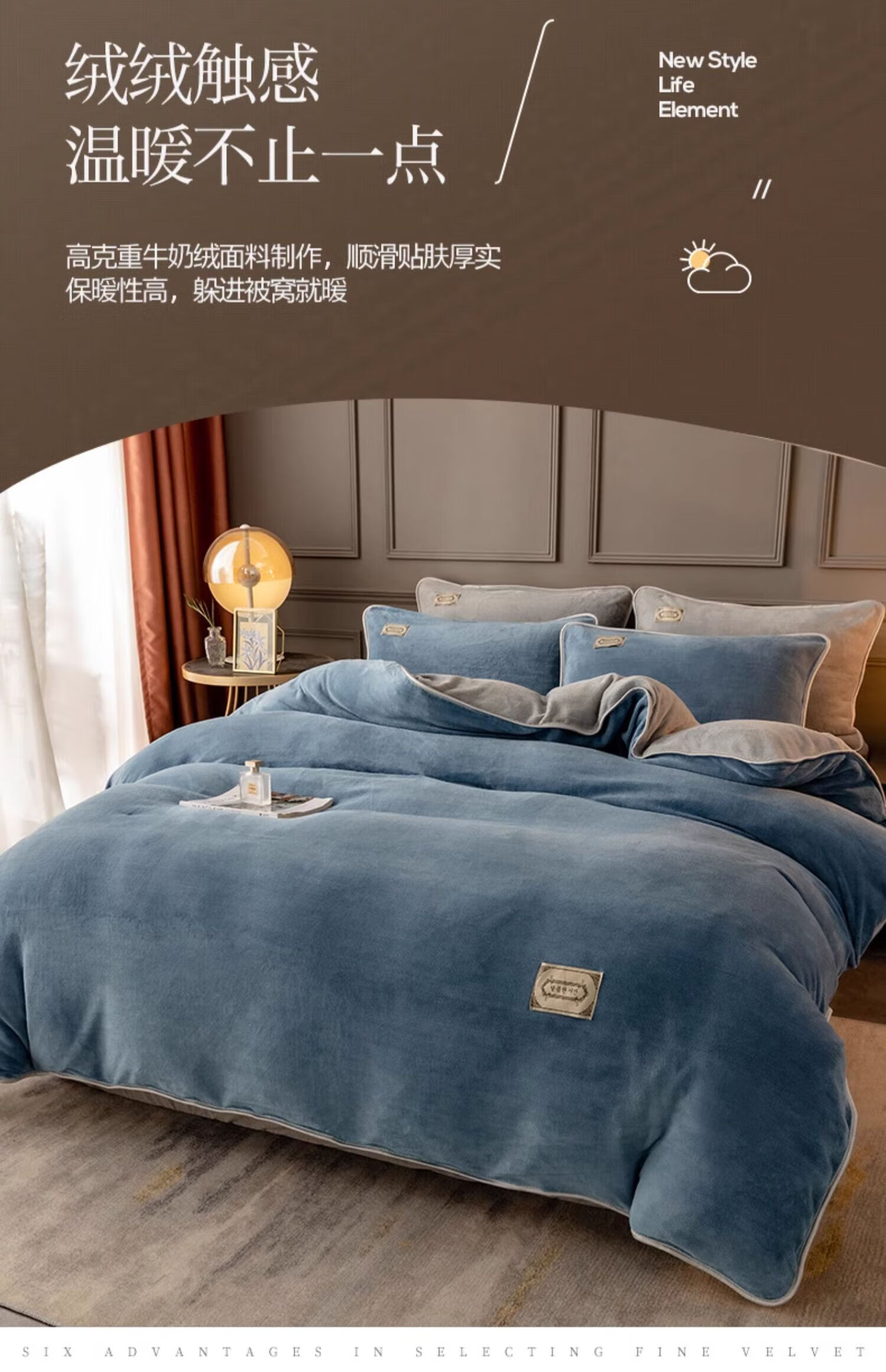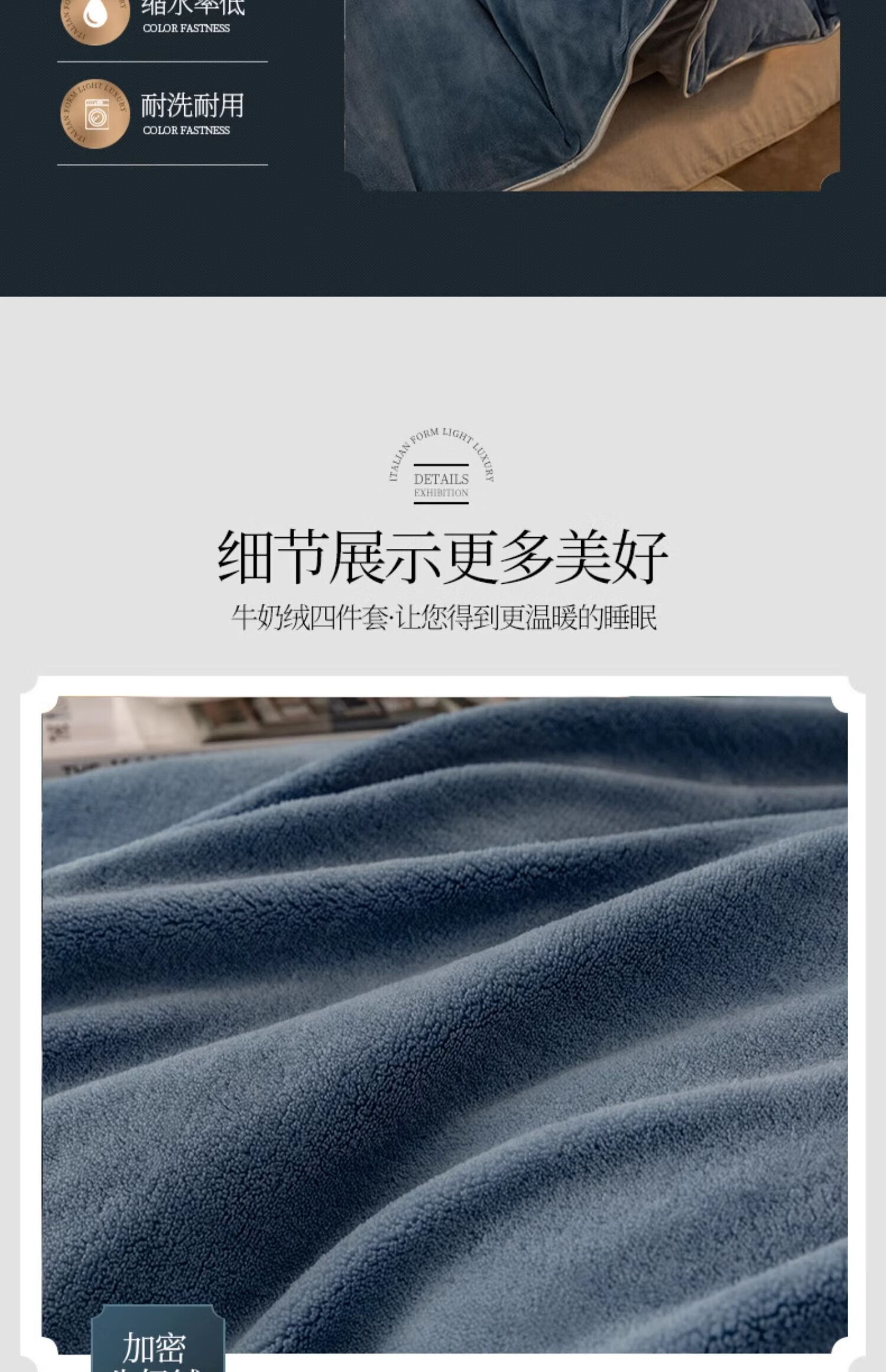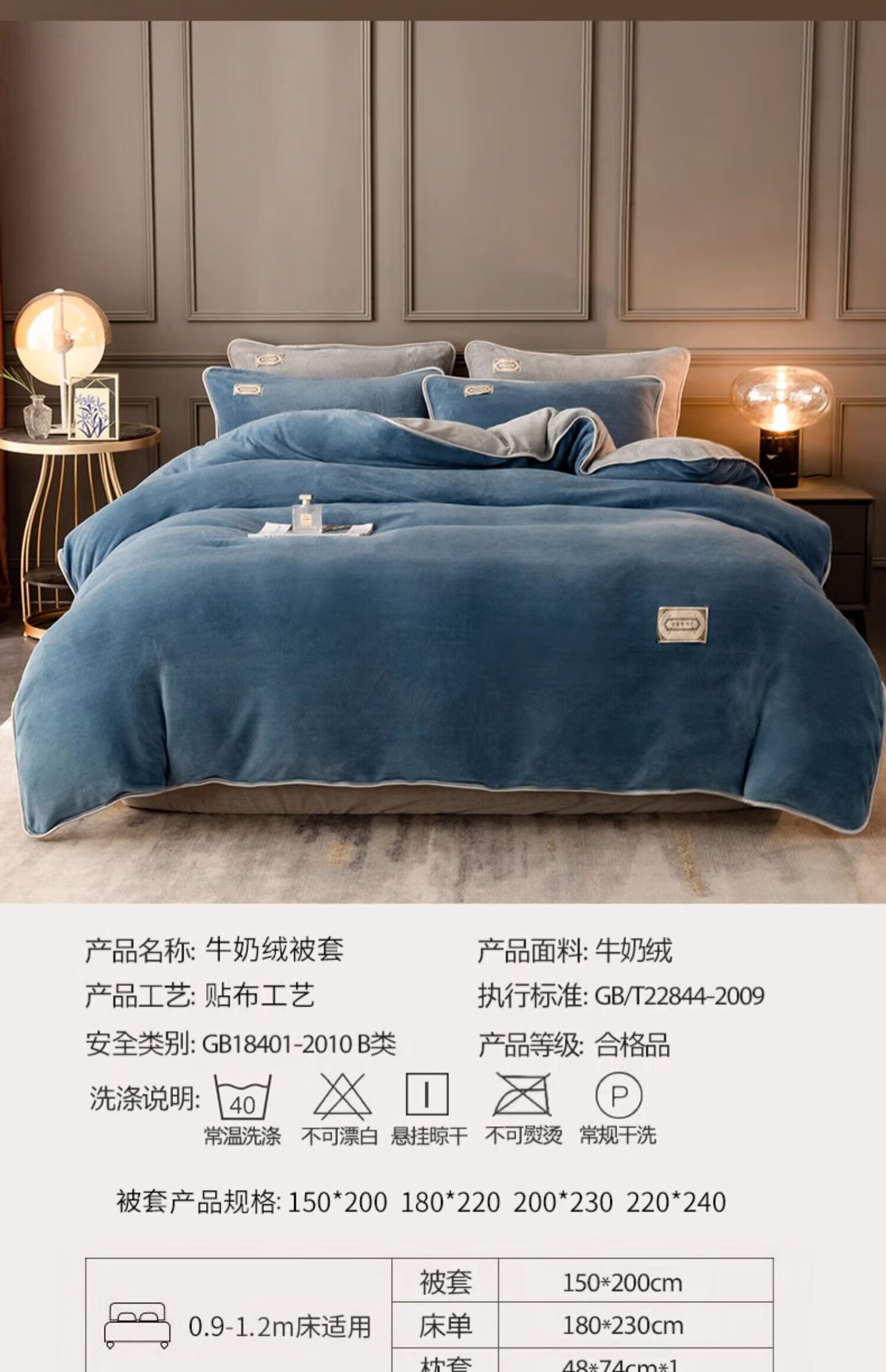 猫人(MiiOW)加厚纯色牛奶绒四件套轻奢秋冬季双面加绒家用床单被套三件套宿舍 蓝+灰 【加绒加厚】 1.2m 床单款 三件套-150x200cm被套