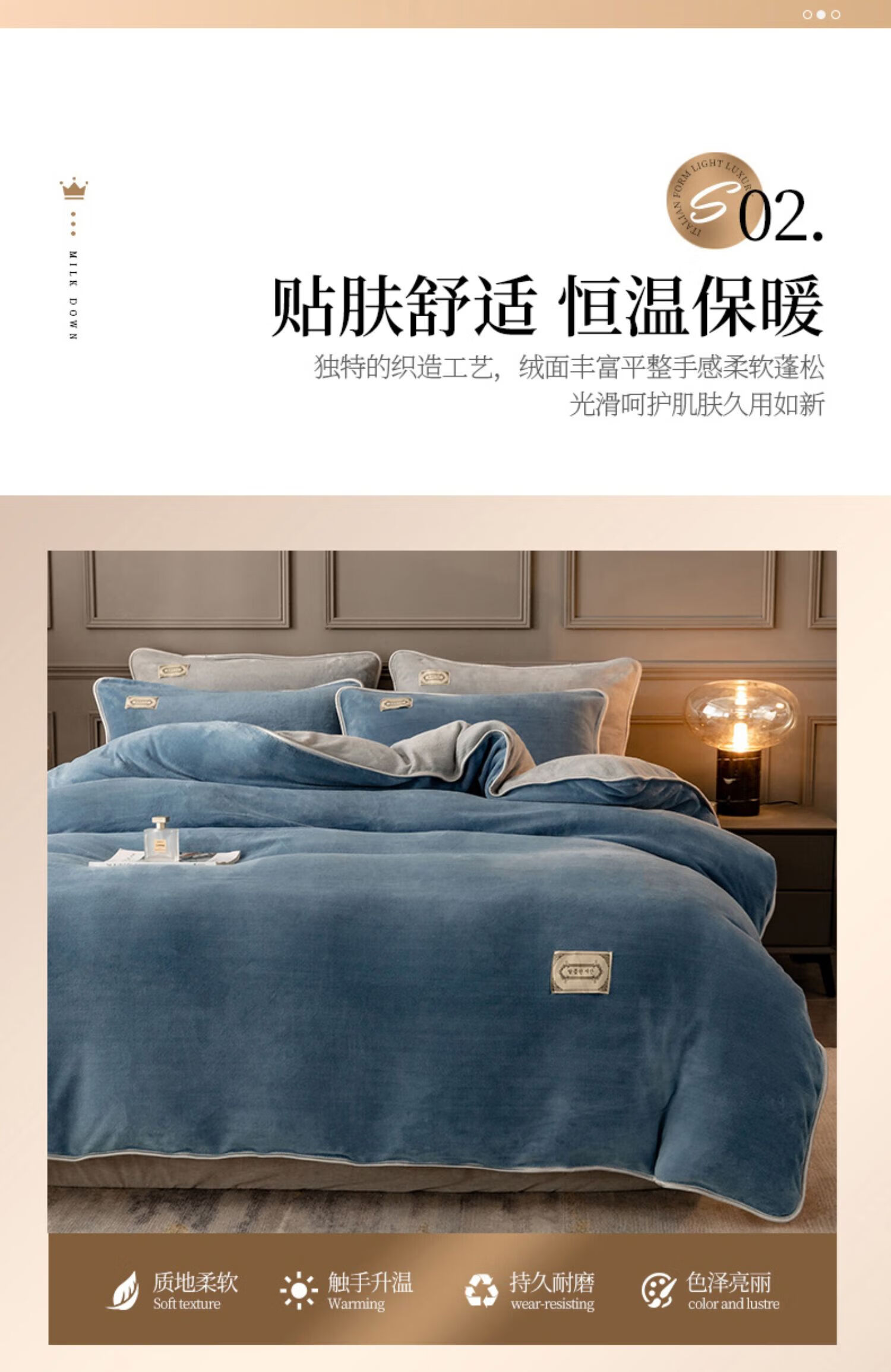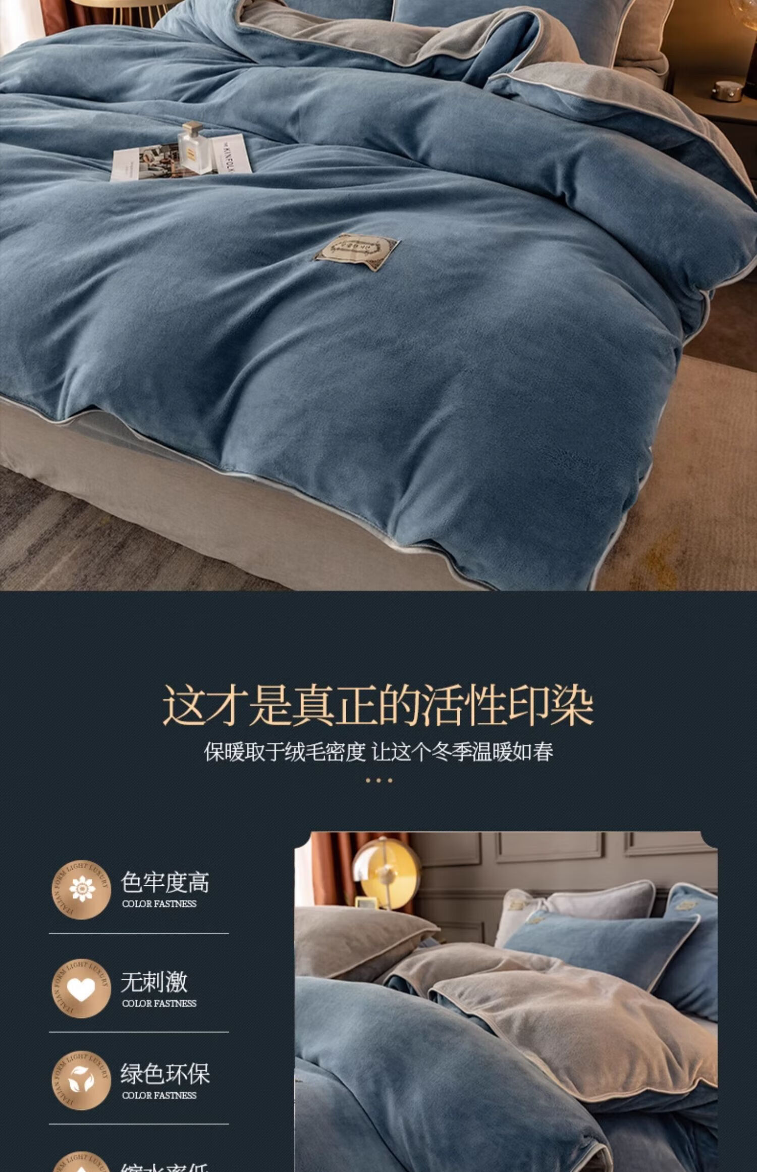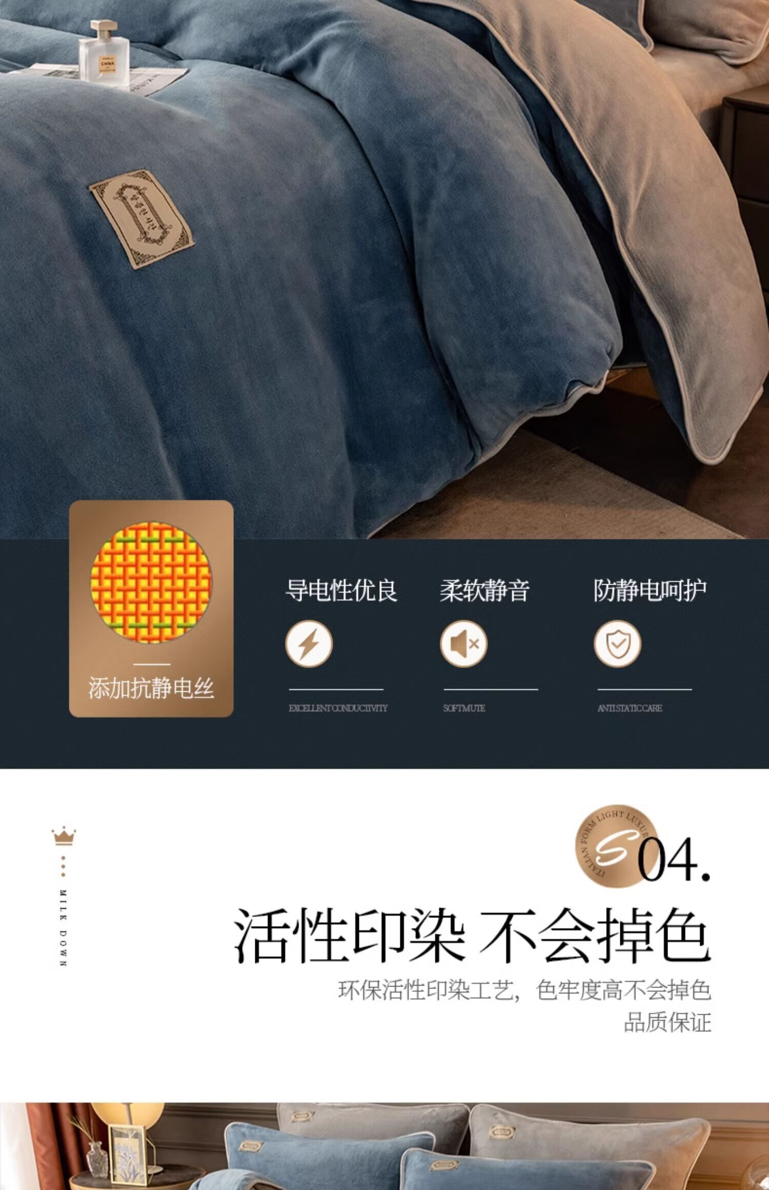 猫人(MiiOW)加厚纯色牛奶绒四件套轻奢秋冬季双面加绒家用床单被套三件套宿舍 蓝+灰 【加绒加厚】 1.2m 床单款 三件套-150x200cm被套