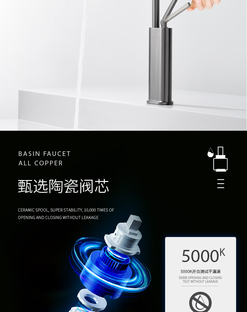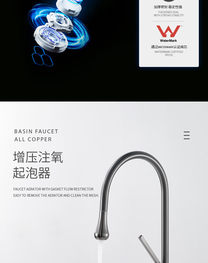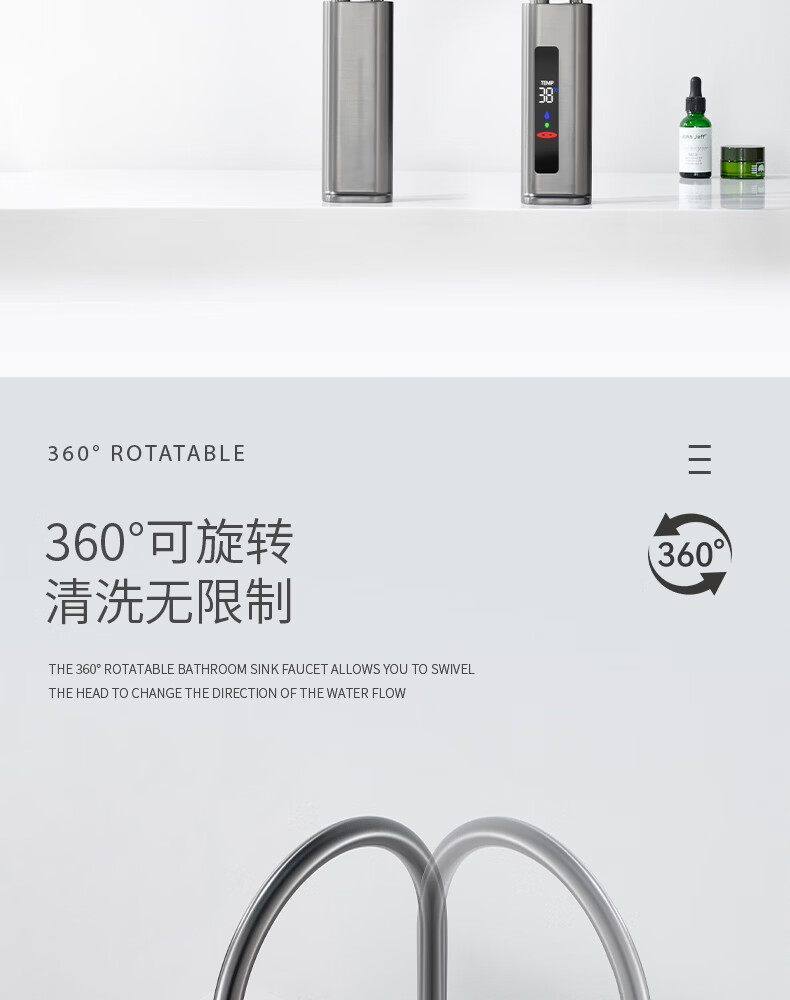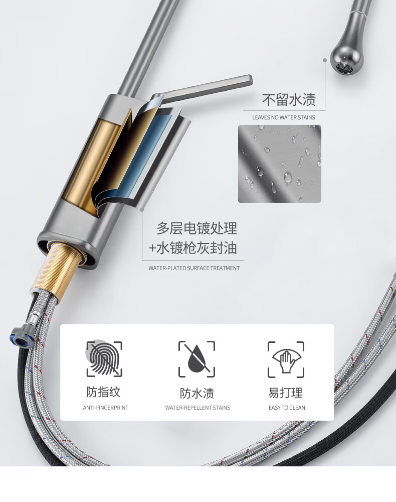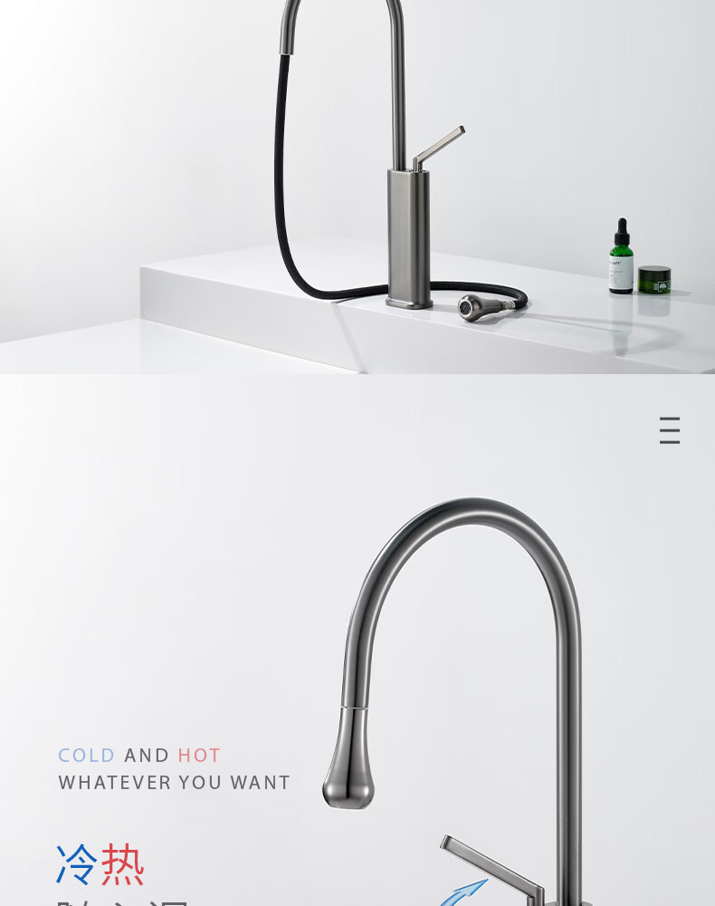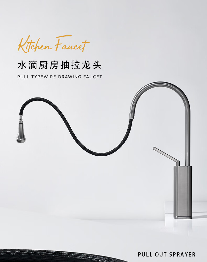NOEO厨房洗菜盆水龙头增压防溅起泡器出水冷热抽拉可旋转全铜数显龙头 拉丝枪灰色【增压注氧起泡器出水】常规款