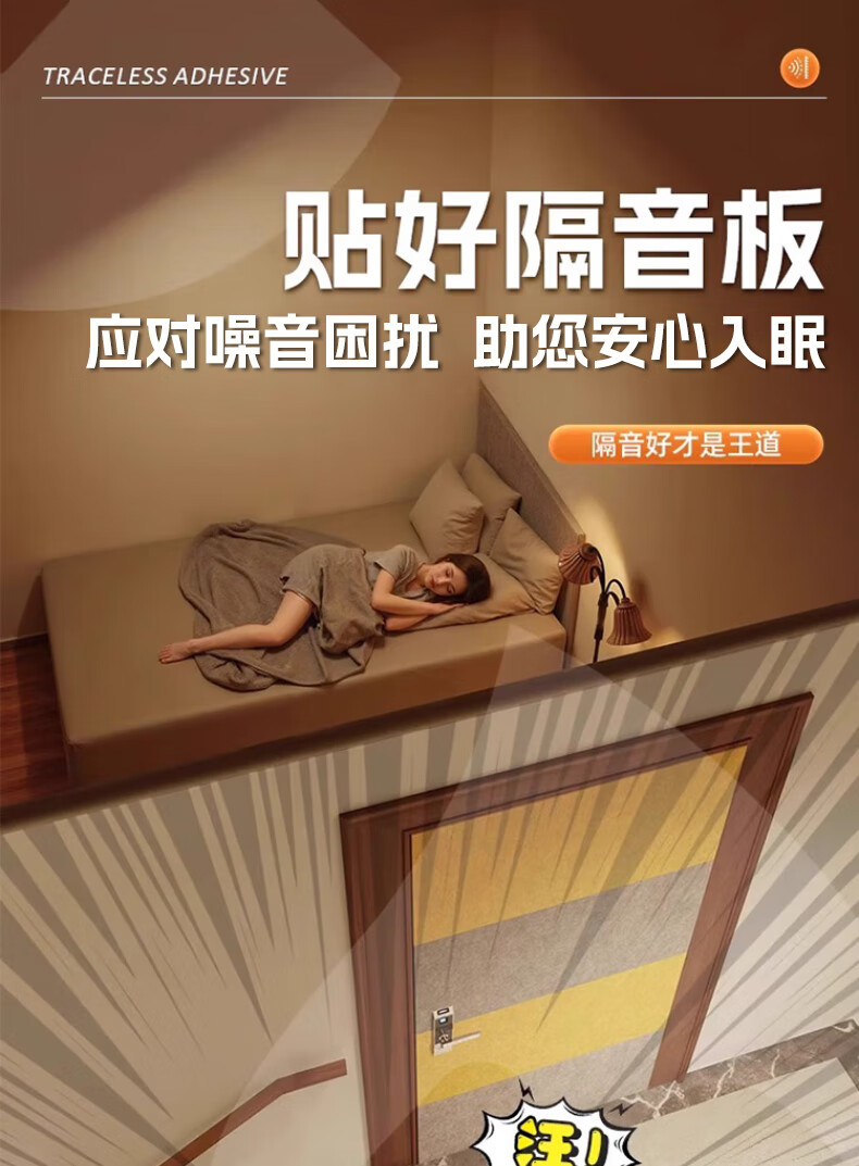 赛瓦凯隔音门贴自粘卧室房间门密封隔音板隔音棉毛毡隔音门装饰吸音棉板 浅驼色【高密加厚丨强效隔音】 9mm厚 30*60cm/片【5片装】