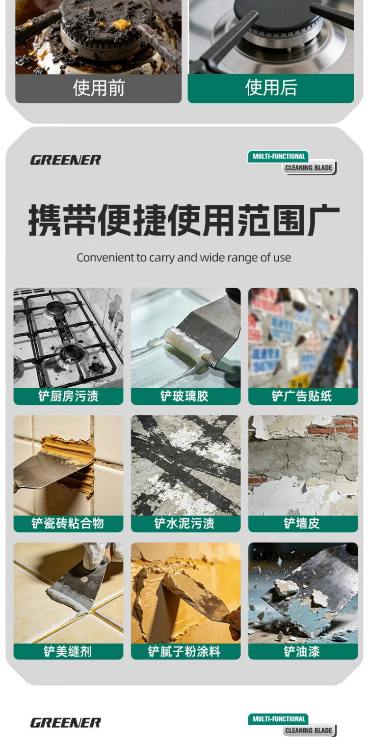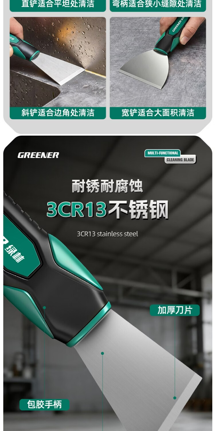 绿林小铲刀清洁刀美缝除胶铲刀保洁专用超硬铲子刮刀铲胶神器刮铲 【直铲】不锈钢加厚铲刀