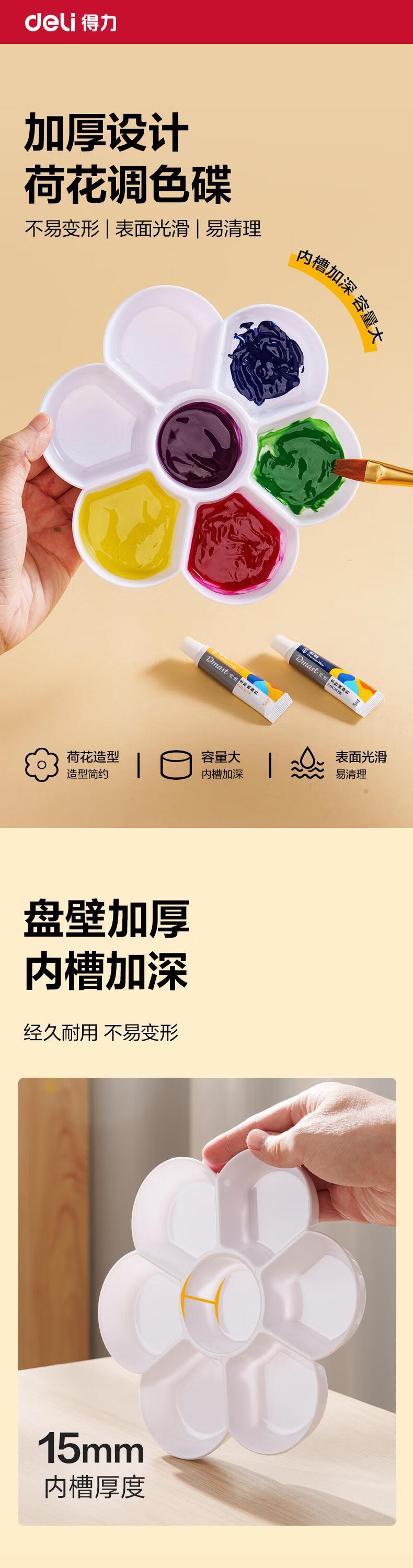 得力(deli)7格加深凹槽荷花碟优质塑料大号水粉颜料调色盘/调色盒/调色板/调色碟女孩儿童礼物学生礼物 HS714