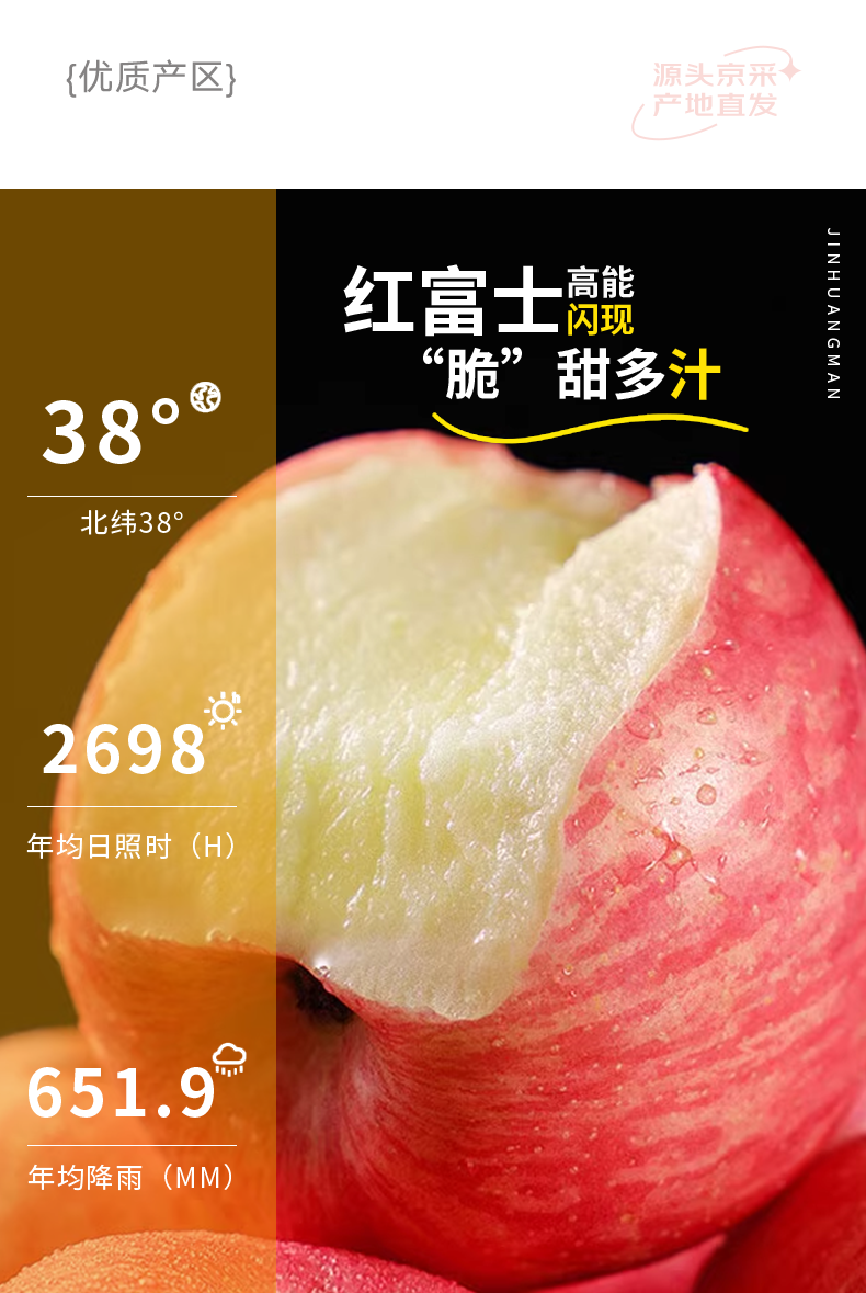 京鲜生山东烟台红富士苹果 净重9斤 单果75-80mm生鲜水果 源头直发 包邮