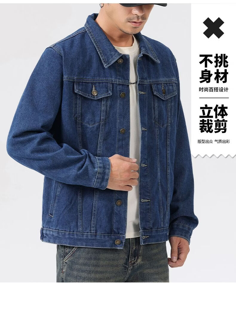 啄木鸟美式休闲牛仔外套男潮流宽松加肥加大码胖子肥佬机车夹克工装上衣 蓝色 M