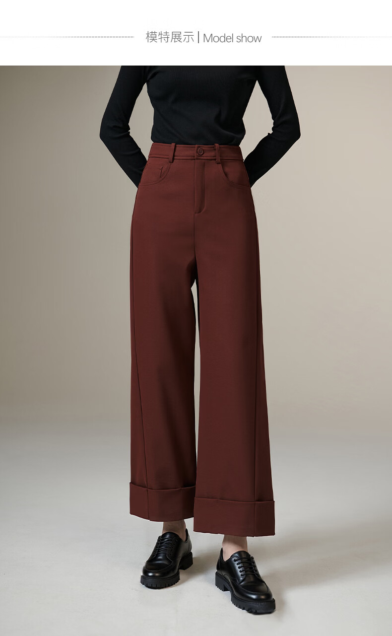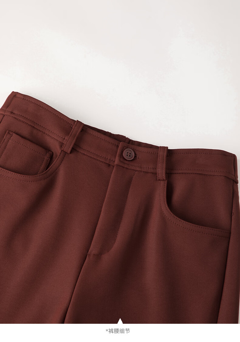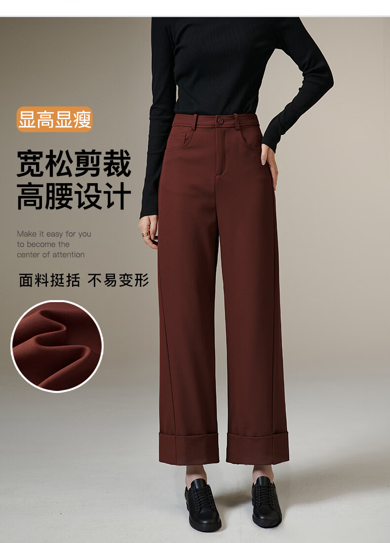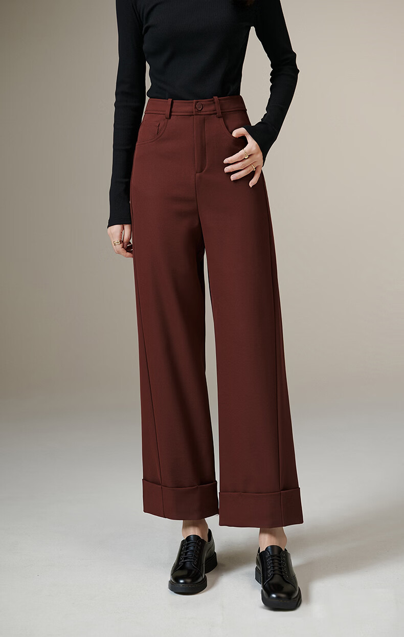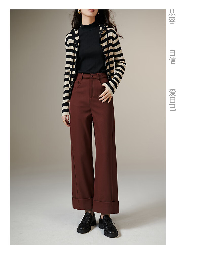 晚白【新品】2026春款经典高腰裤子气质通勤休闲百搭阔腿裤女 铁锈红 28