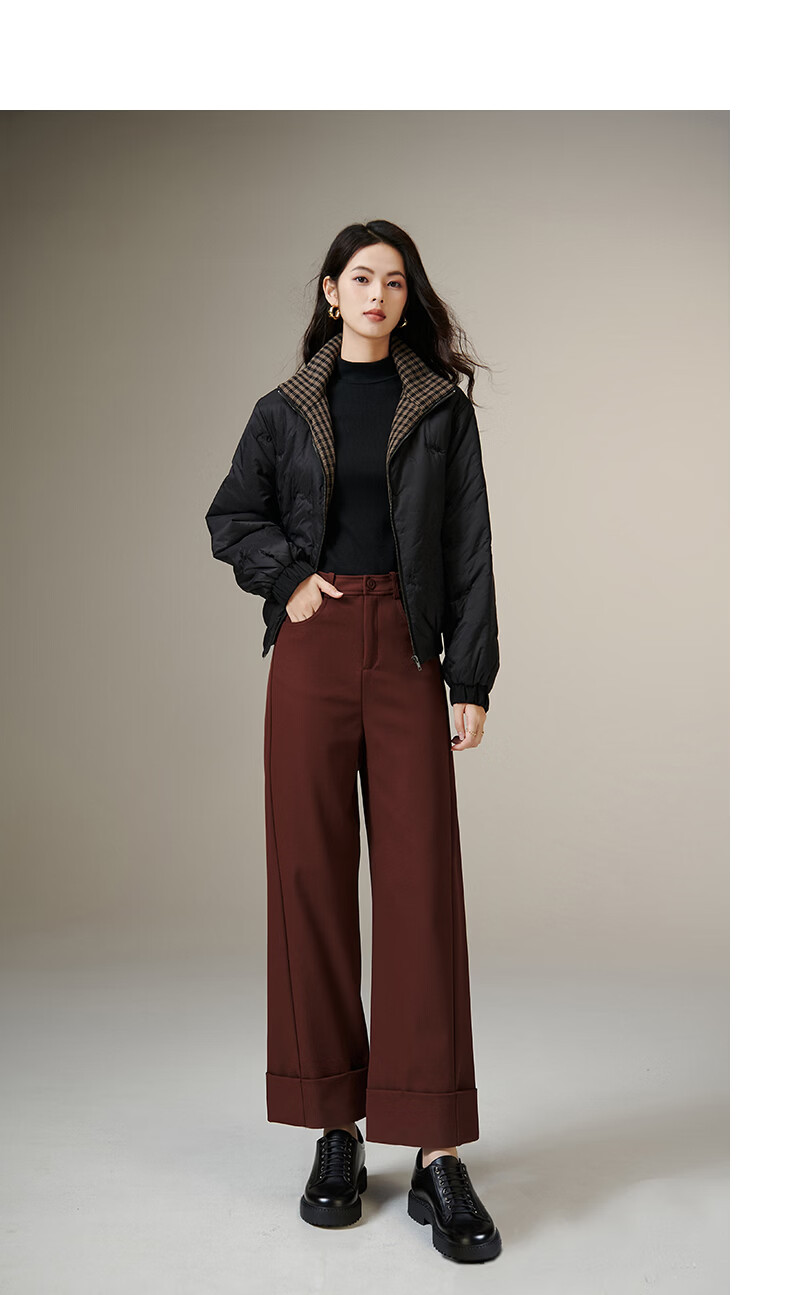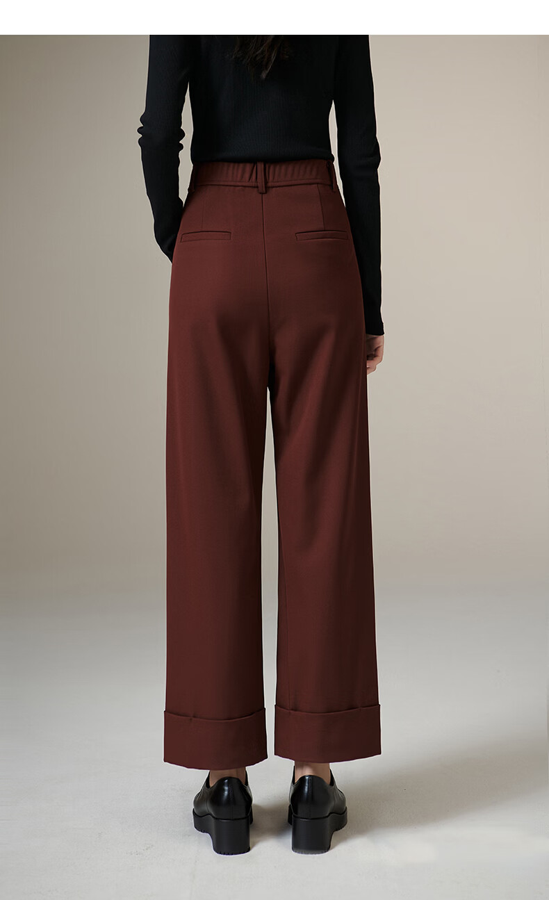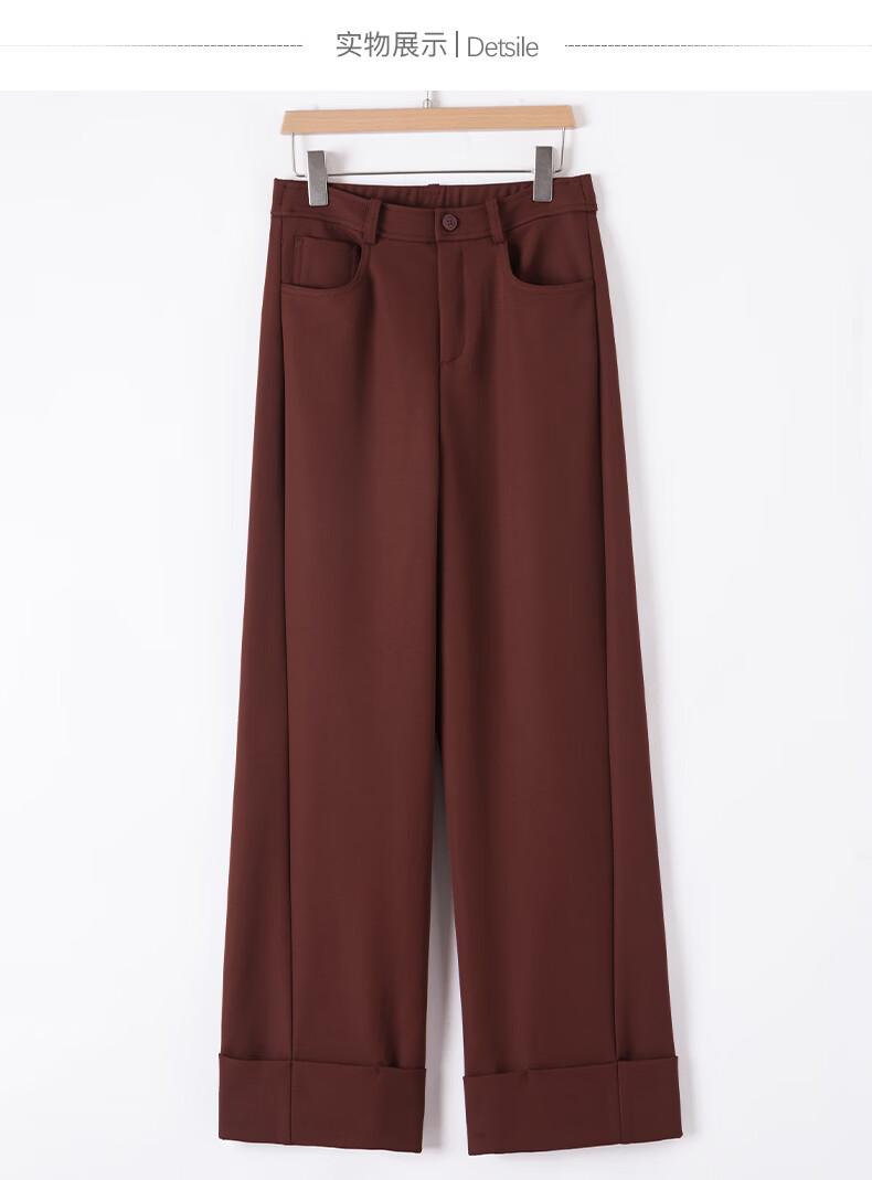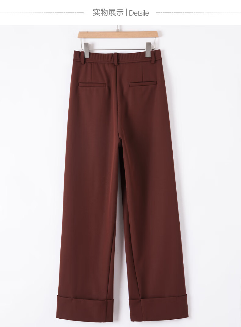 晚白【新品】2026春款经典高腰裤子气质通勤休闲百搭阔腿裤女 铁锈红 28