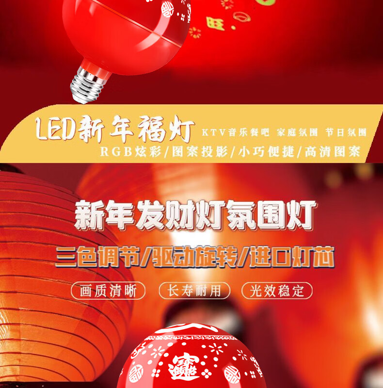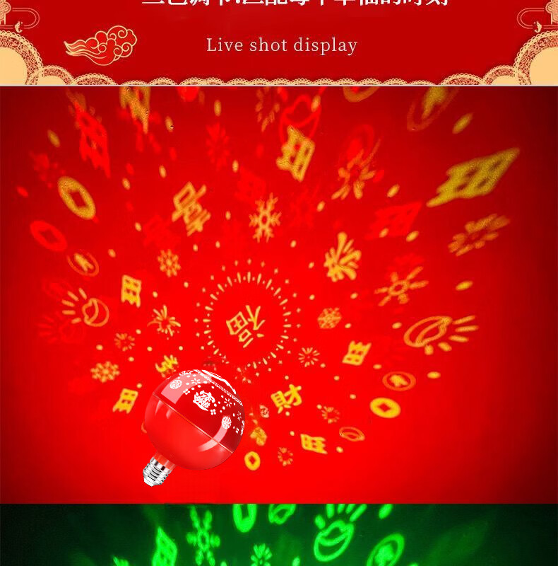 【2026新年】三彩福字灯补光灯氛围灯发财春节福字变色灯泡喜庆装饰恭喜发财新年必备多彩投影灯 多彩变色福字灯【1个装】