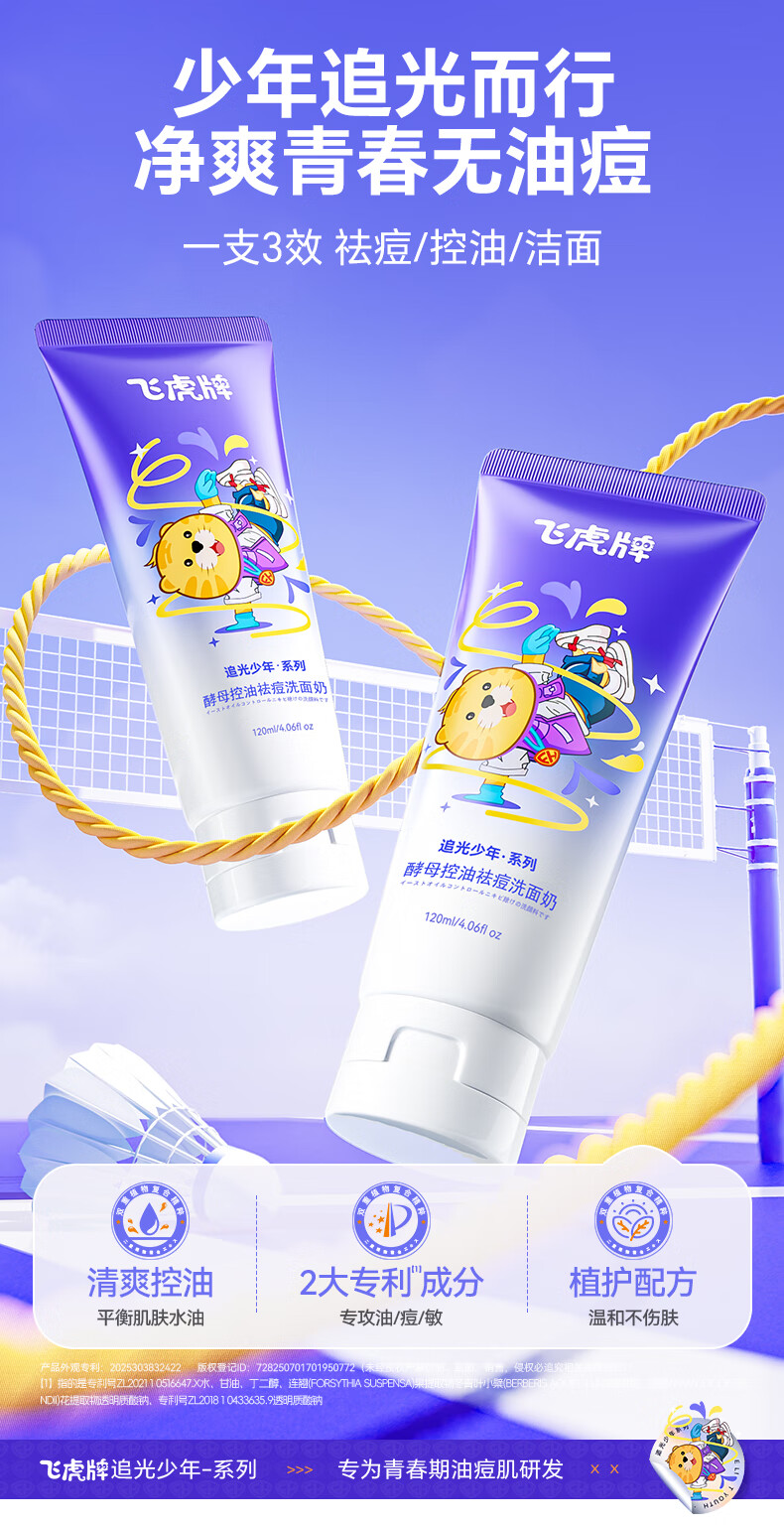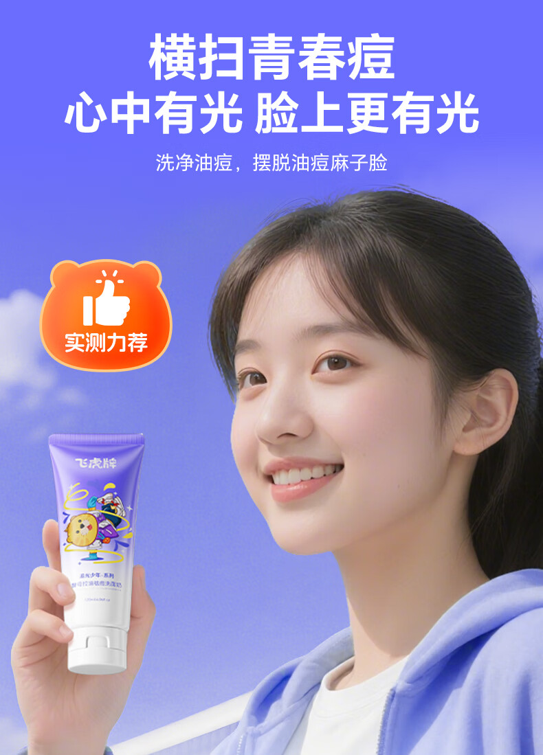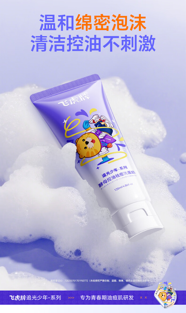飞虎牌青少年洗面奶酵母控油祛痘学生专用洁面乳男女士淡痘印去黑头120g