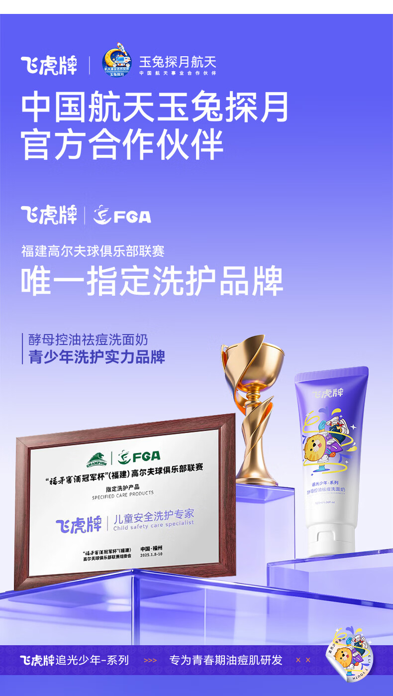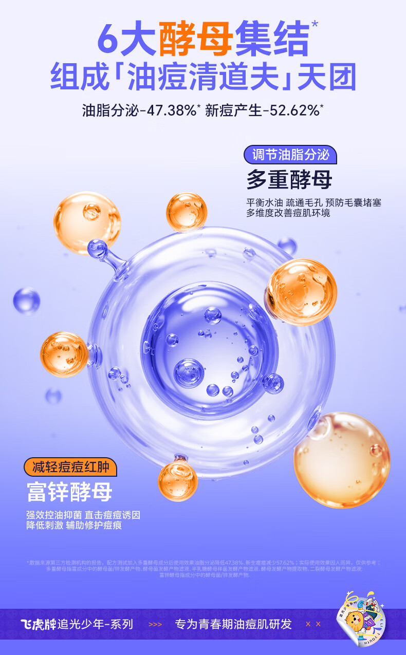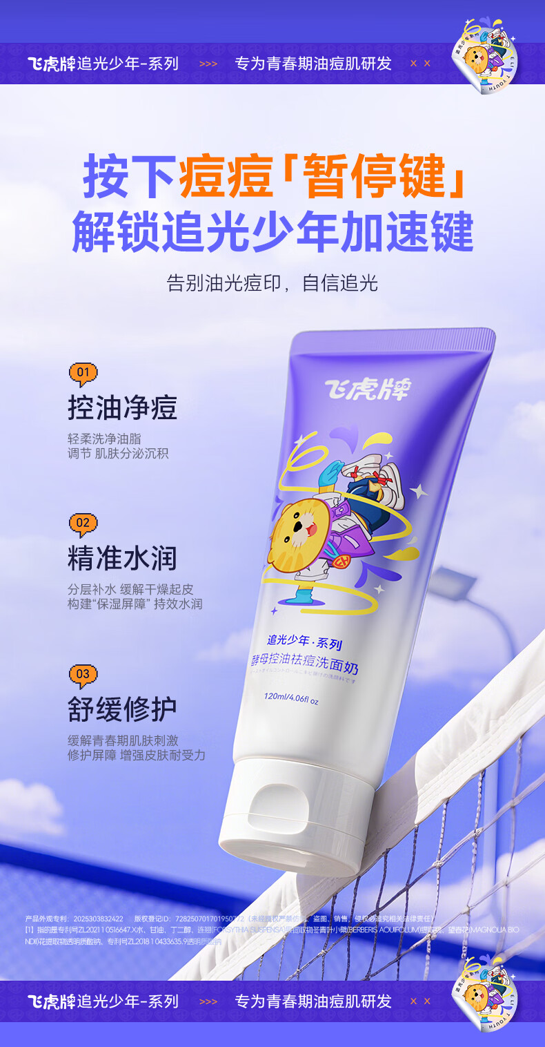 飞虎牌青少年洗面奶酵母控油祛痘学生专用洁面乳男女士淡痘印去黑头120g