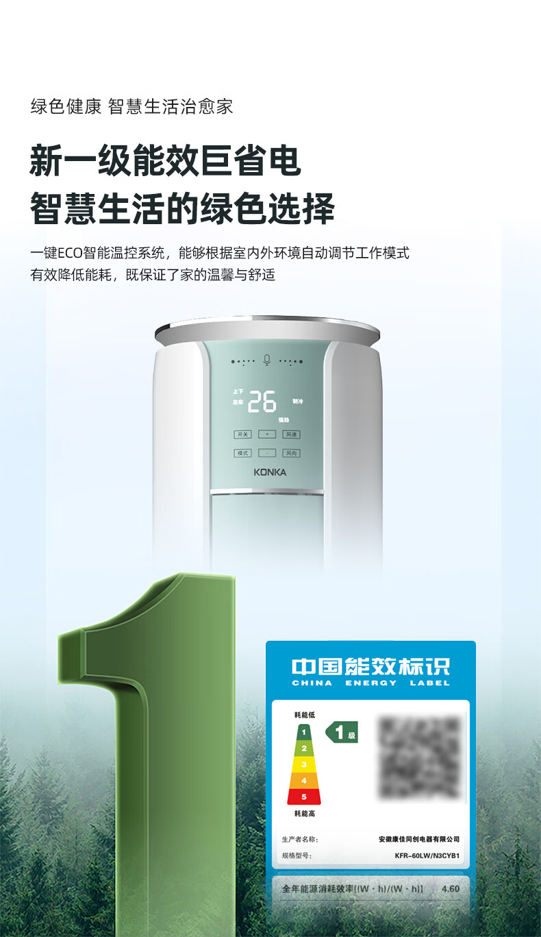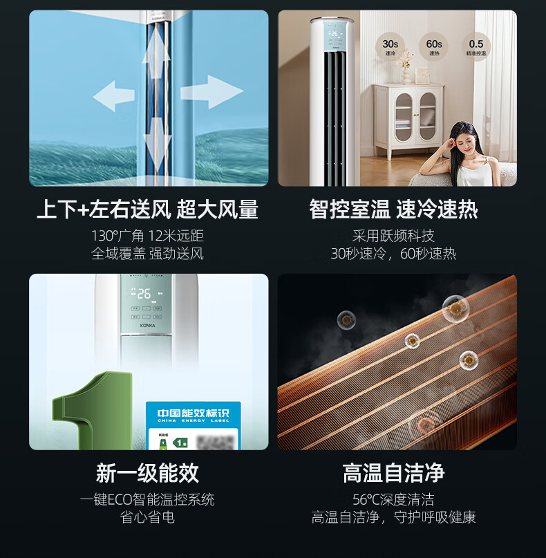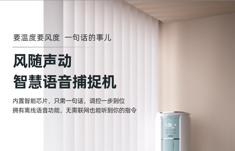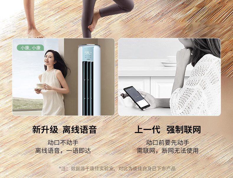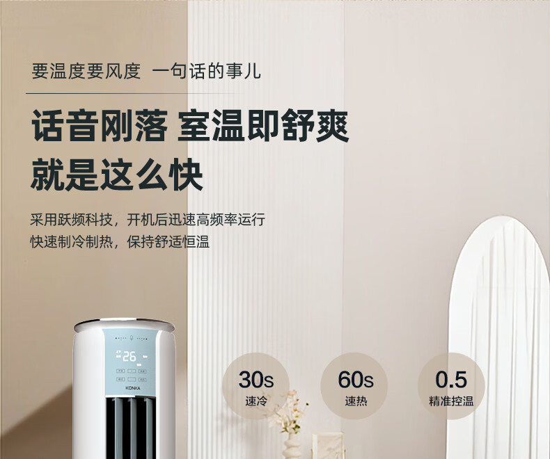 康佳空调京东严选小铜仁 小3匹新一级能效变频冷暖 离线语音内外机双排纯铜管立式柜机KFR-60LW/N3CYB1