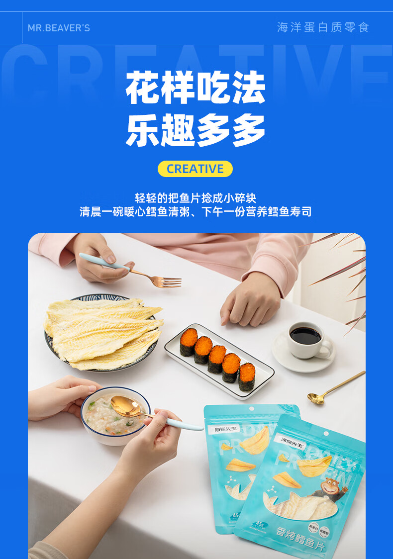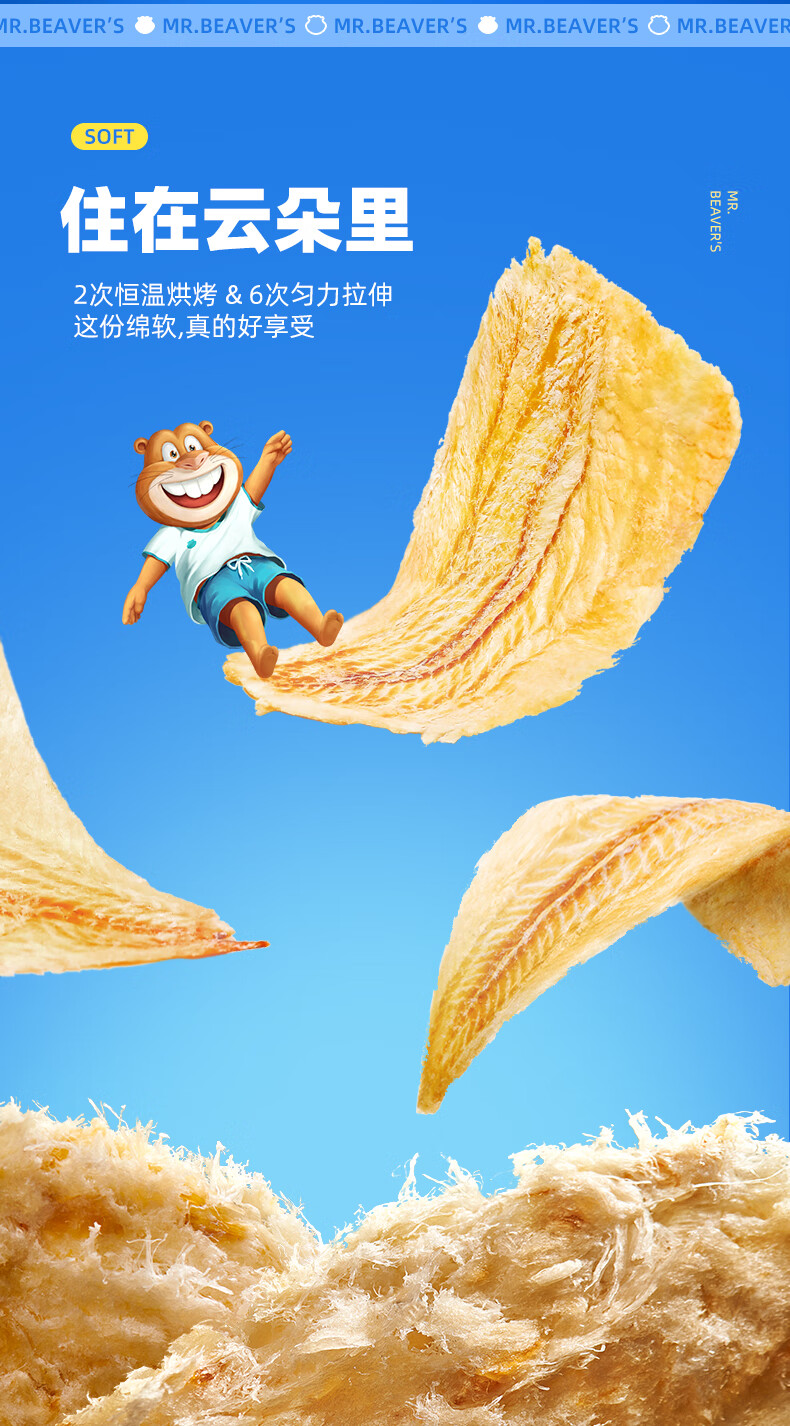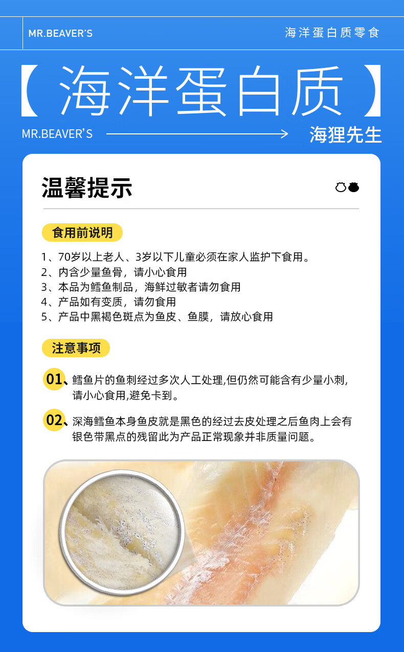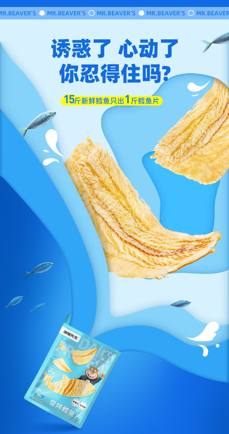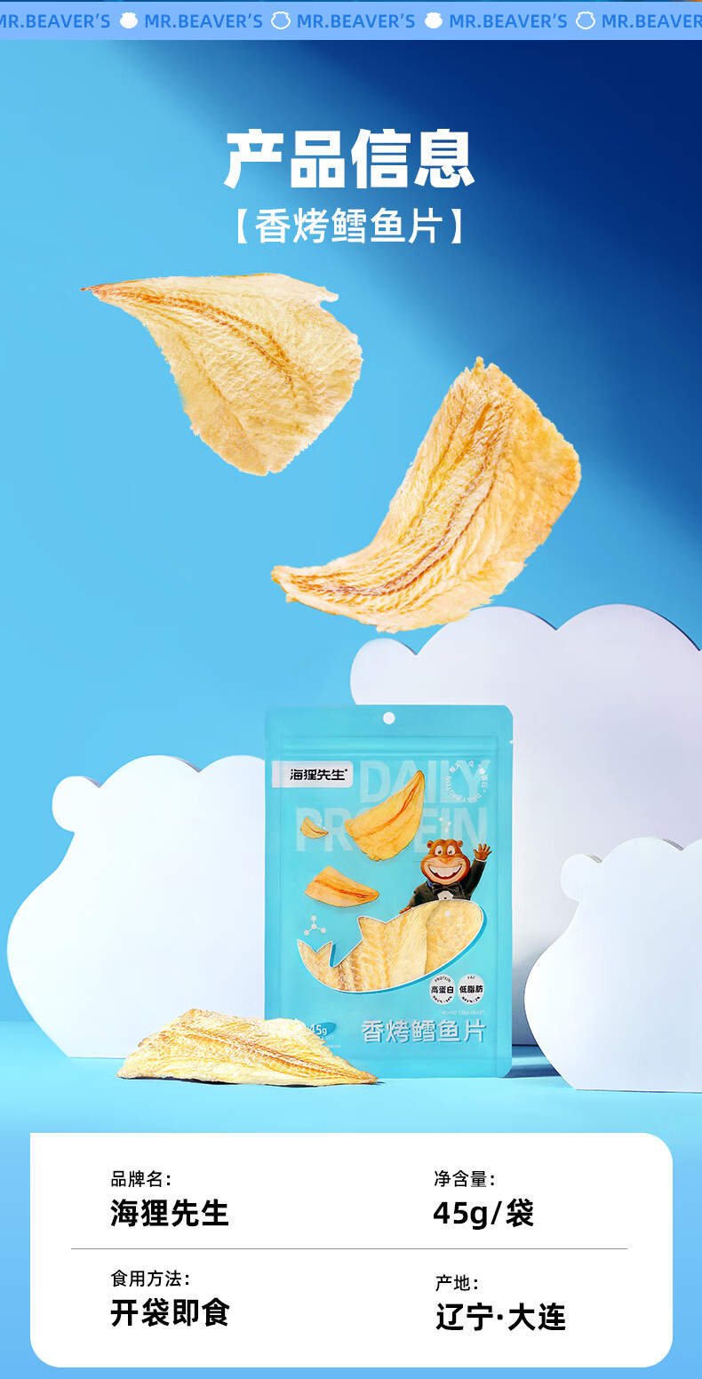 海狸先生香烤鳕鱼片45g大连特产烤鱼片孕妇儿童即食鱼干零食