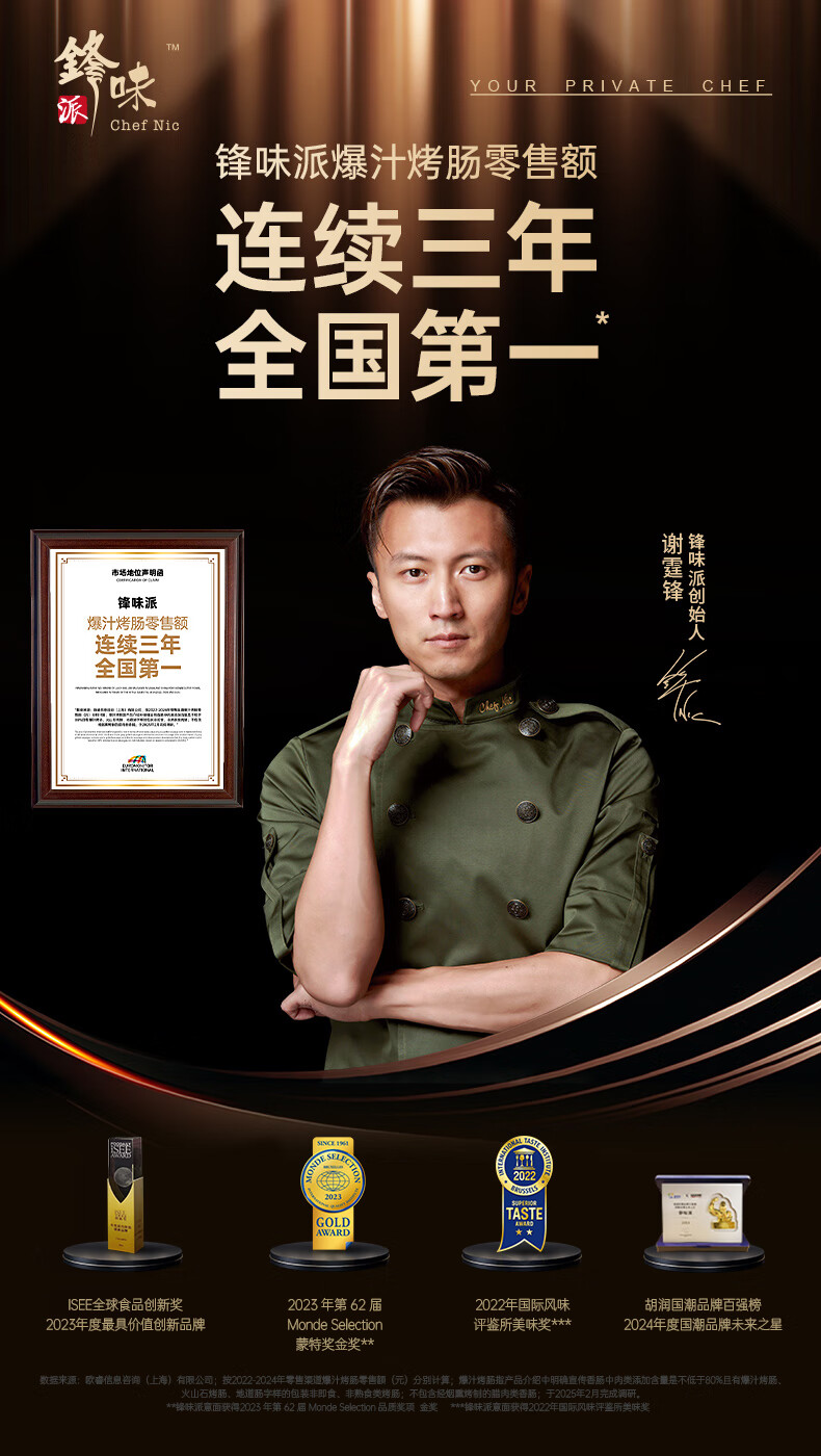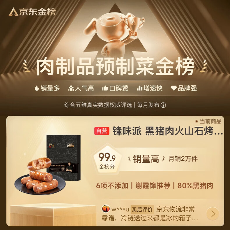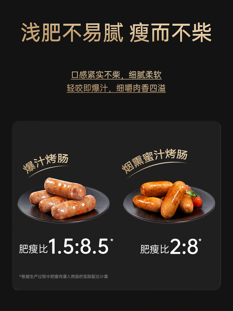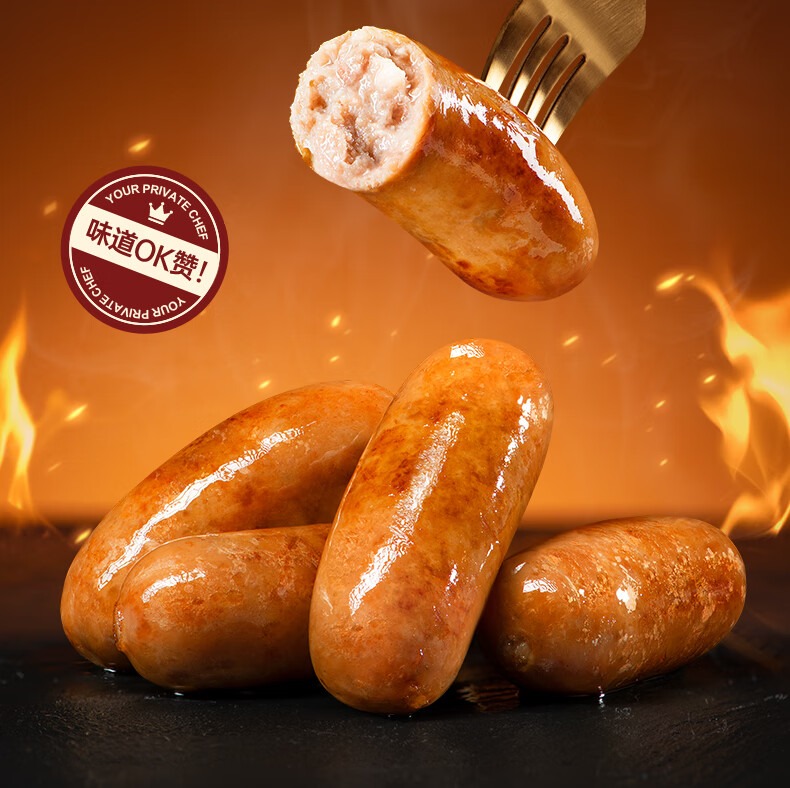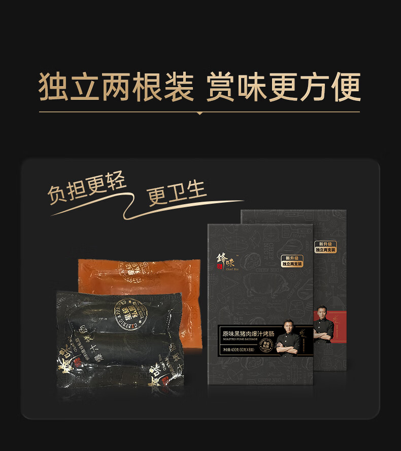 锋味派黑猪肉烤肠原味400g火山石香肠儿童早餐火腿肉肠空炸烧烤食材年货