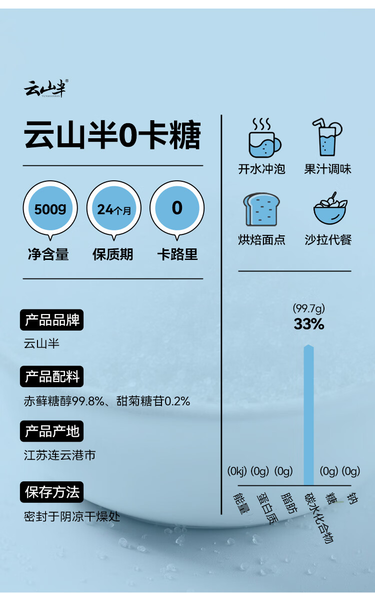 云山半零0卡糖代糖500g 赤藓糖醇0蔗糖0脂肪0热量代替白砂糖咖啡伴侣