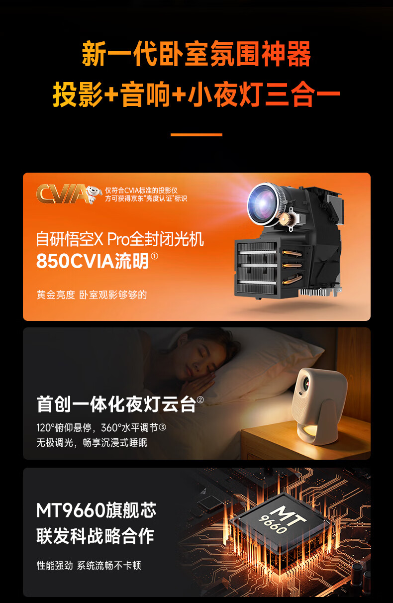 大眼橙C3D云台投影仪家用卧室真1080P便携投影机高清智能家庭影院腾讯AI(850CVIA MT9660)9月新品