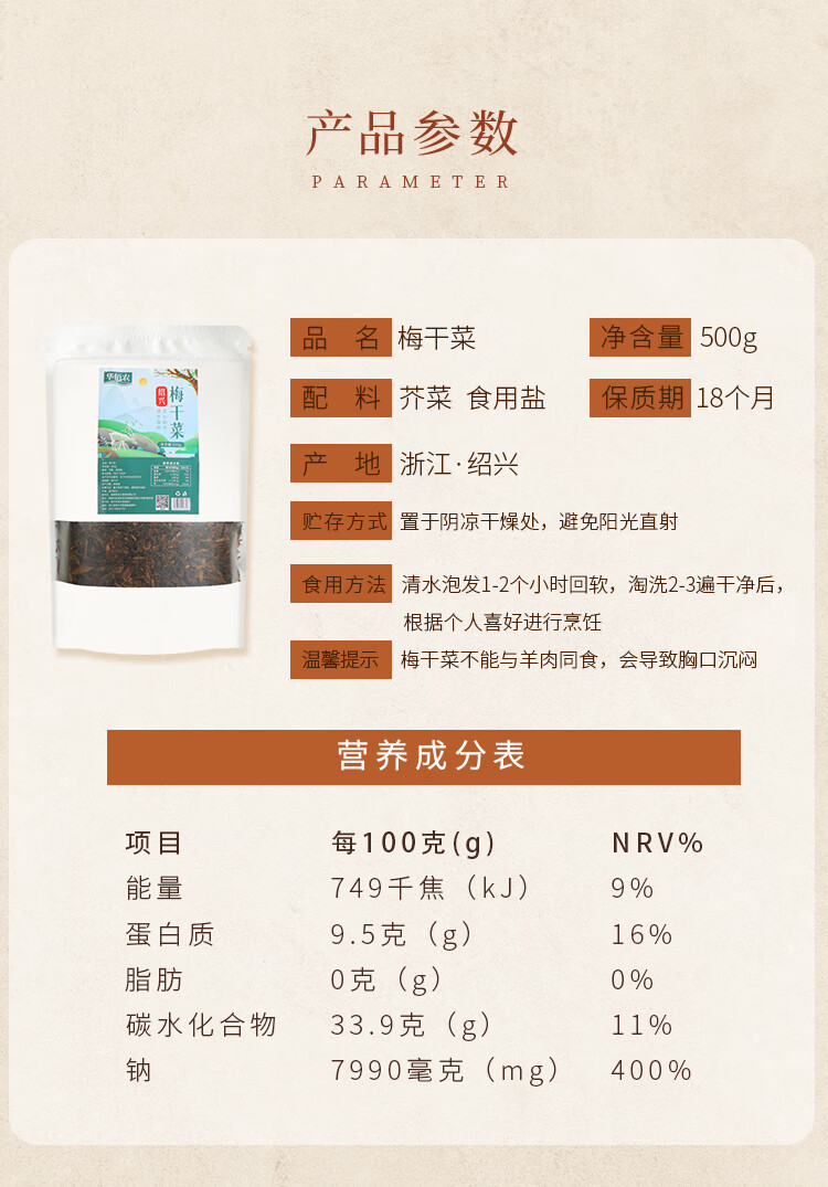 华佰农 梅干菜500g 绍兴梅菜干菜 南北干货雪里蕻芥菜 梅菜扣肉下饭菜