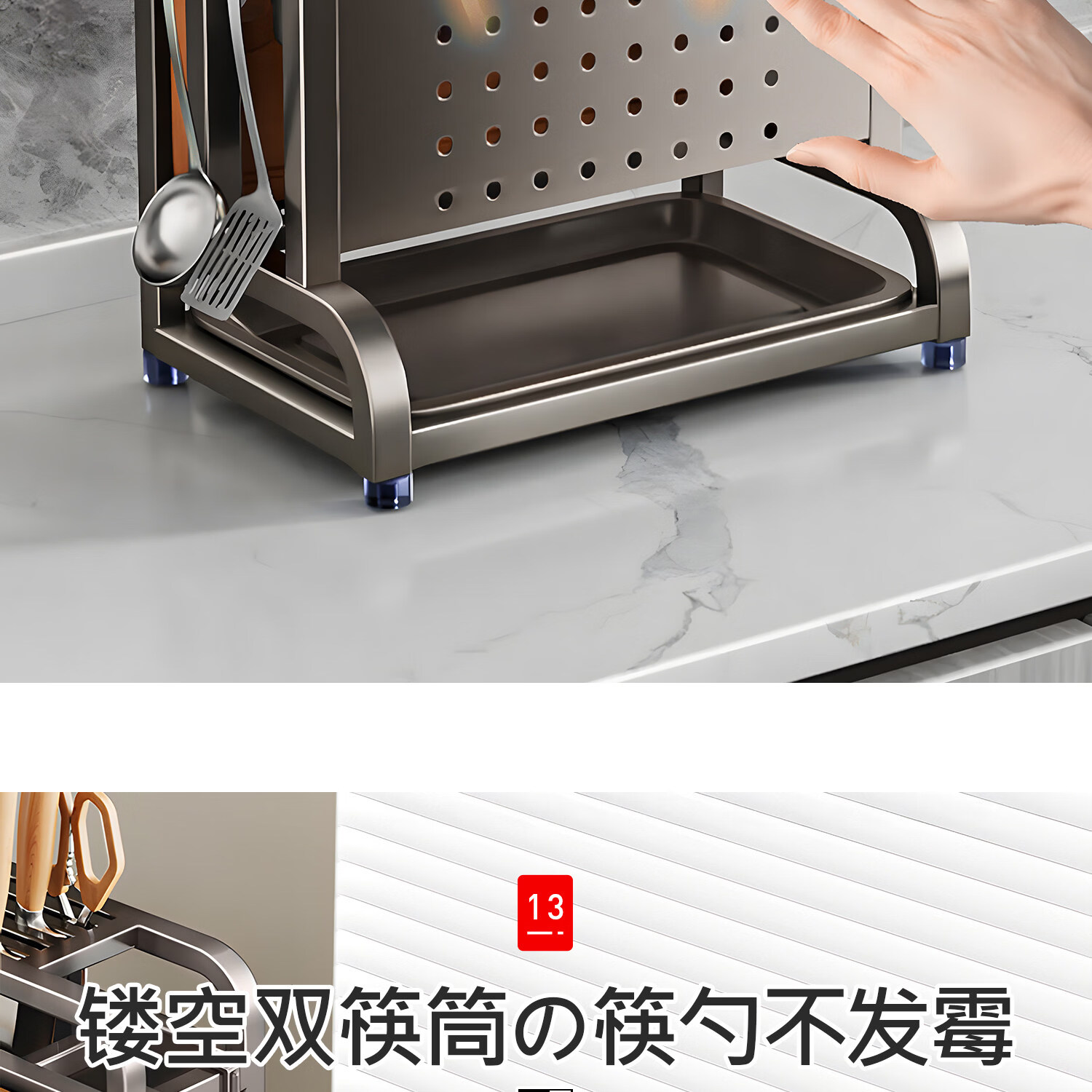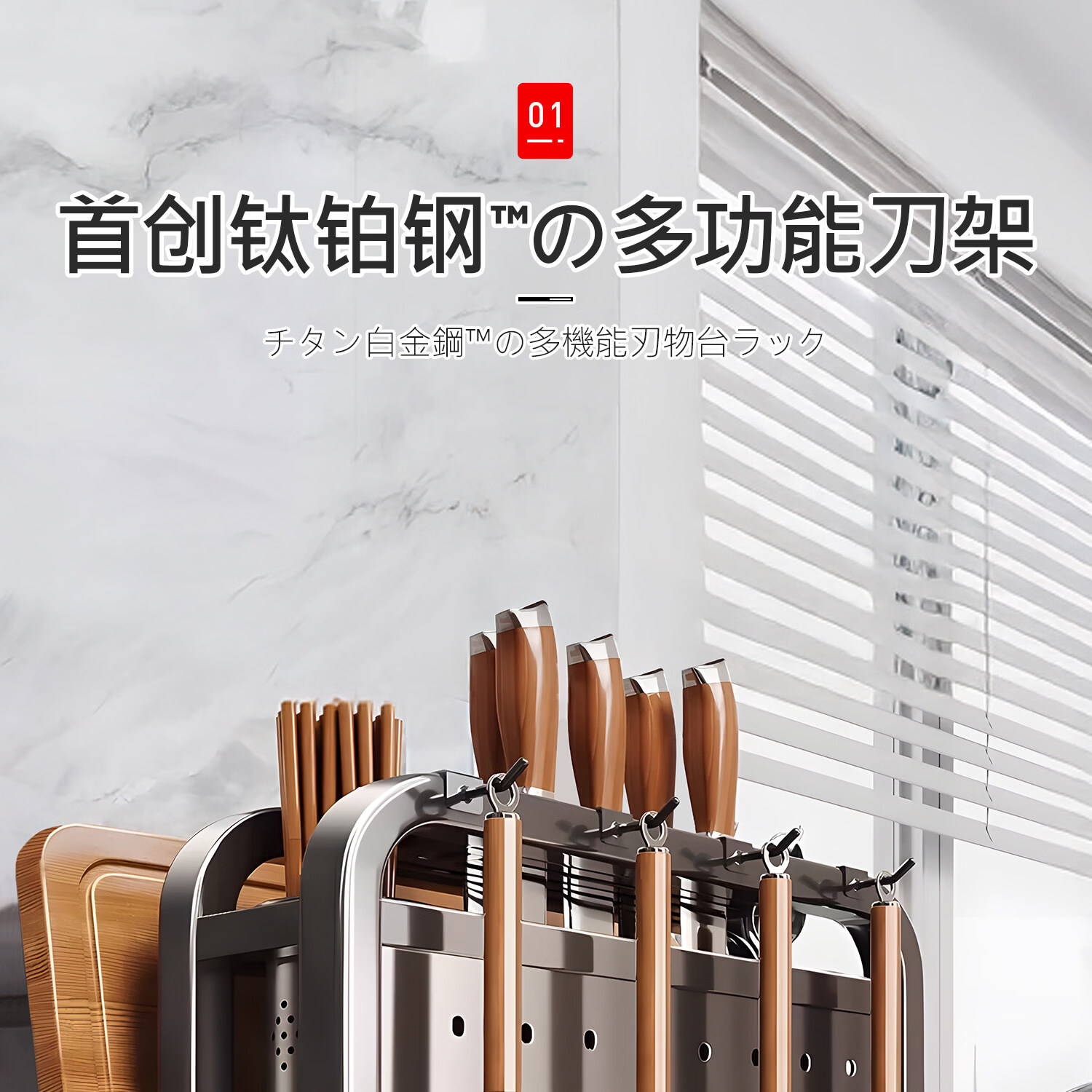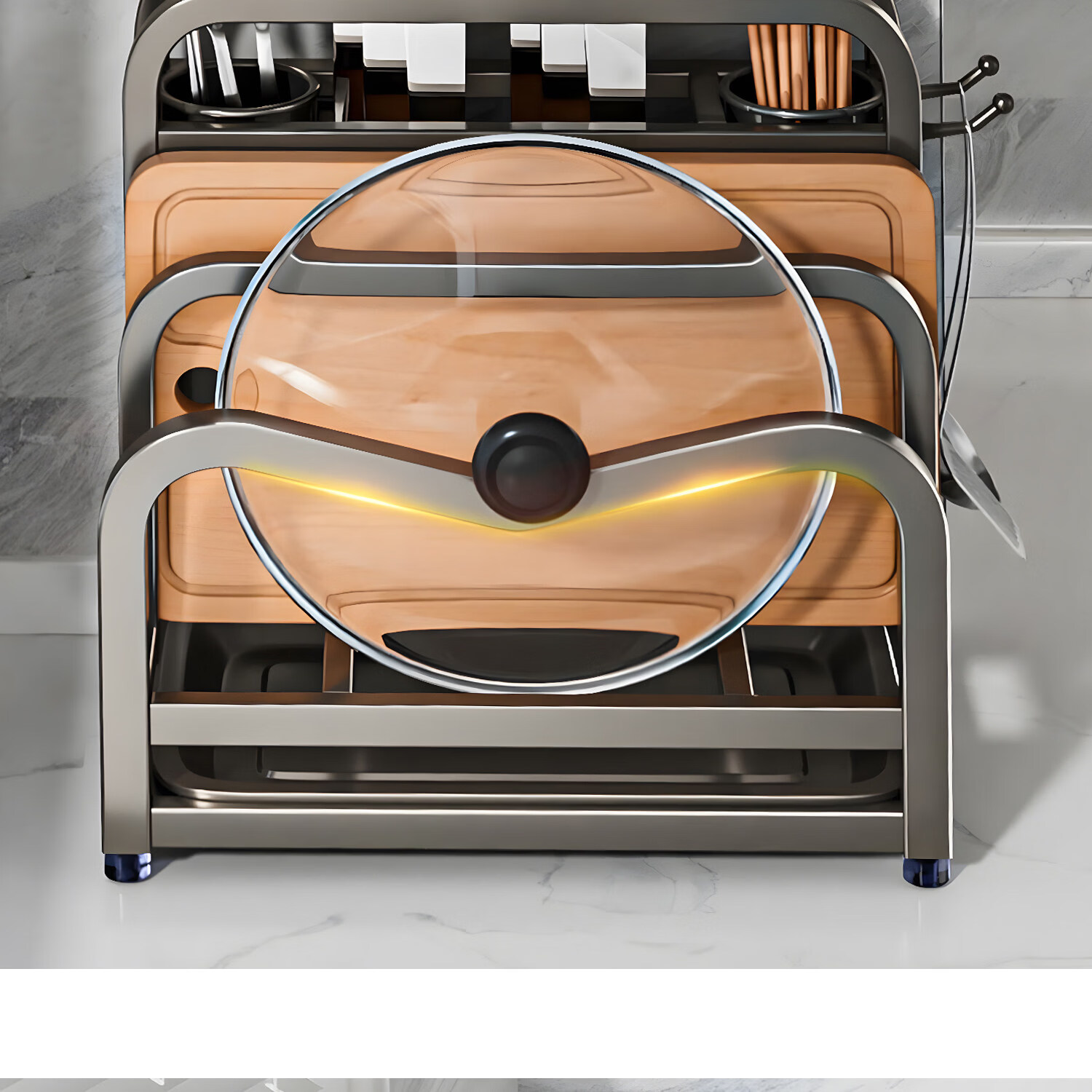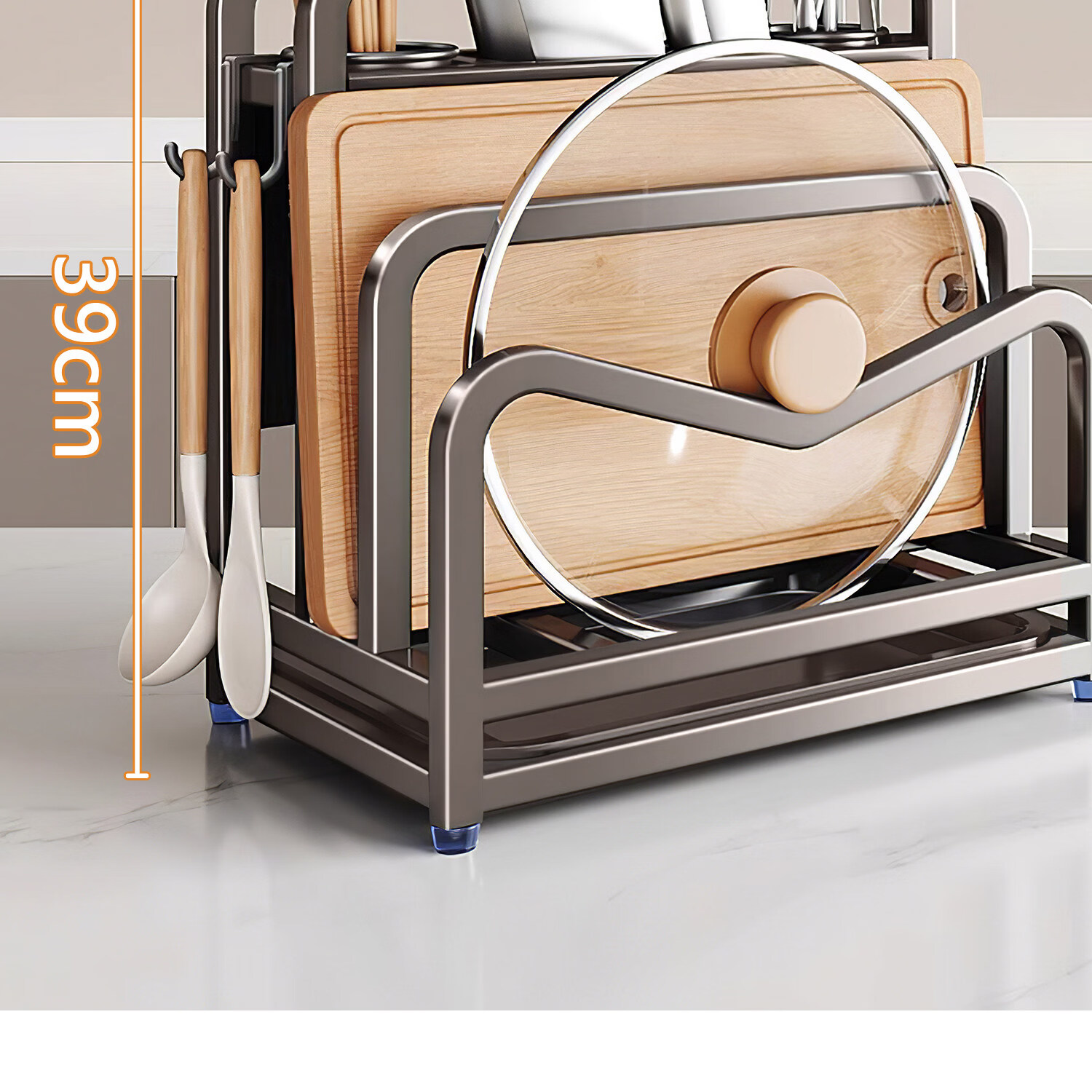 吱凡日本新款304不锈钢厨房刀架置物架多功能菜板刀具筷笼一体收纳架 【枪灰】201不锈钢-单砧板架【35*18*26cm】