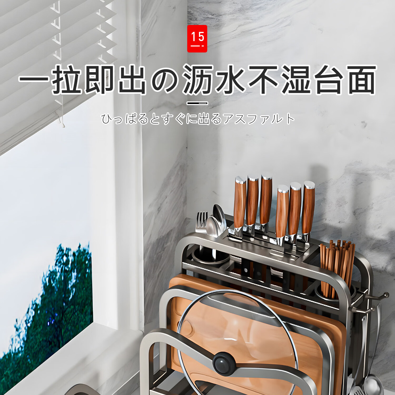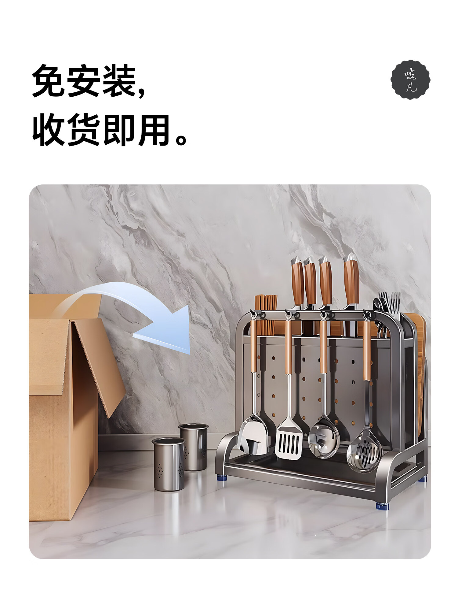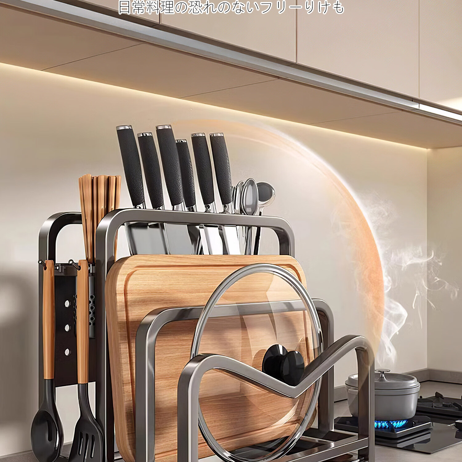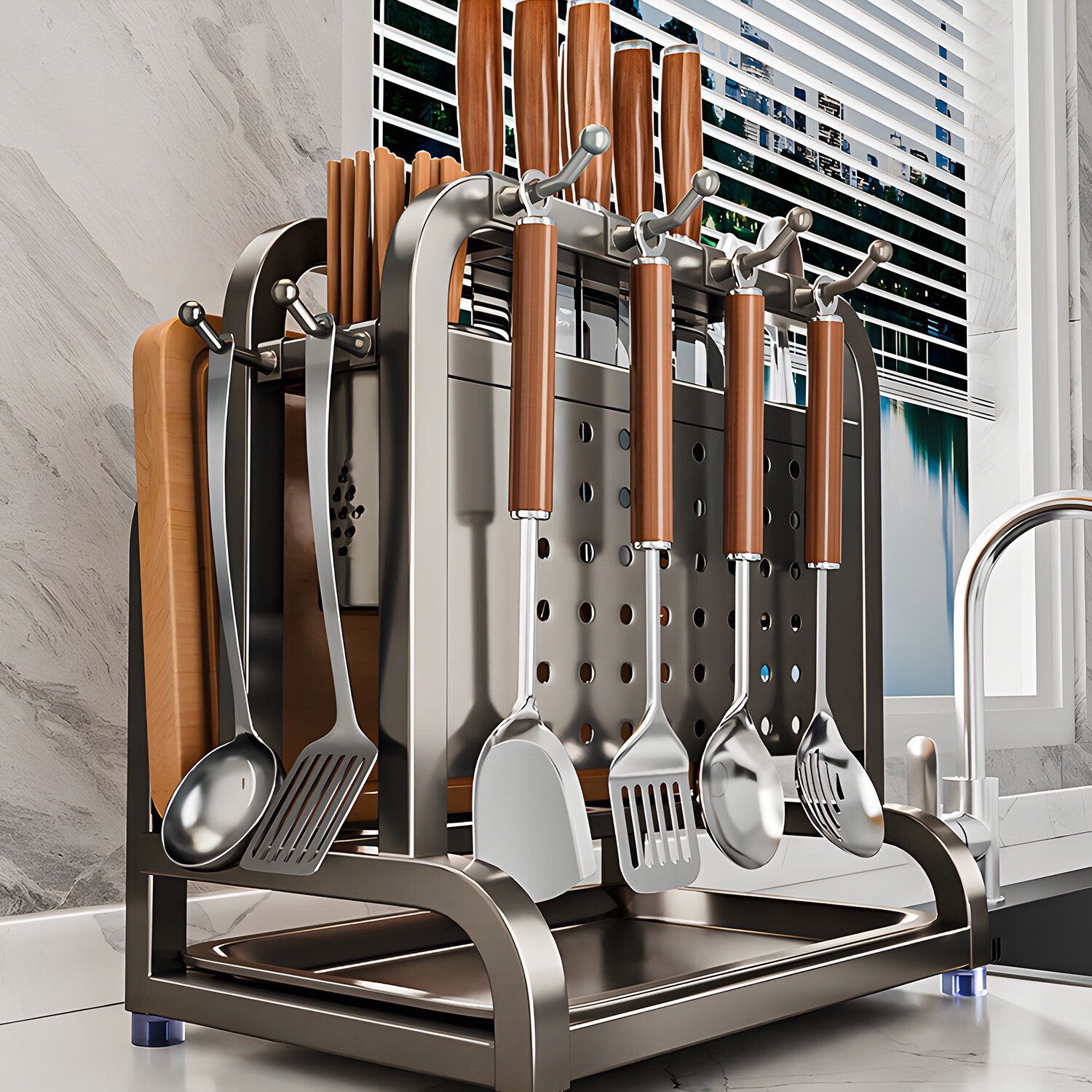 吱凡日本新款304不锈钢厨房刀架置物架多功能菜板刀具筷笼一体收纳架 【枪灰】201不锈钢-单砧板架【35*18*26cm】