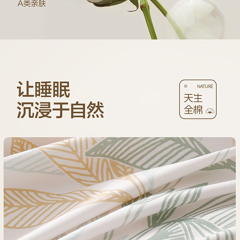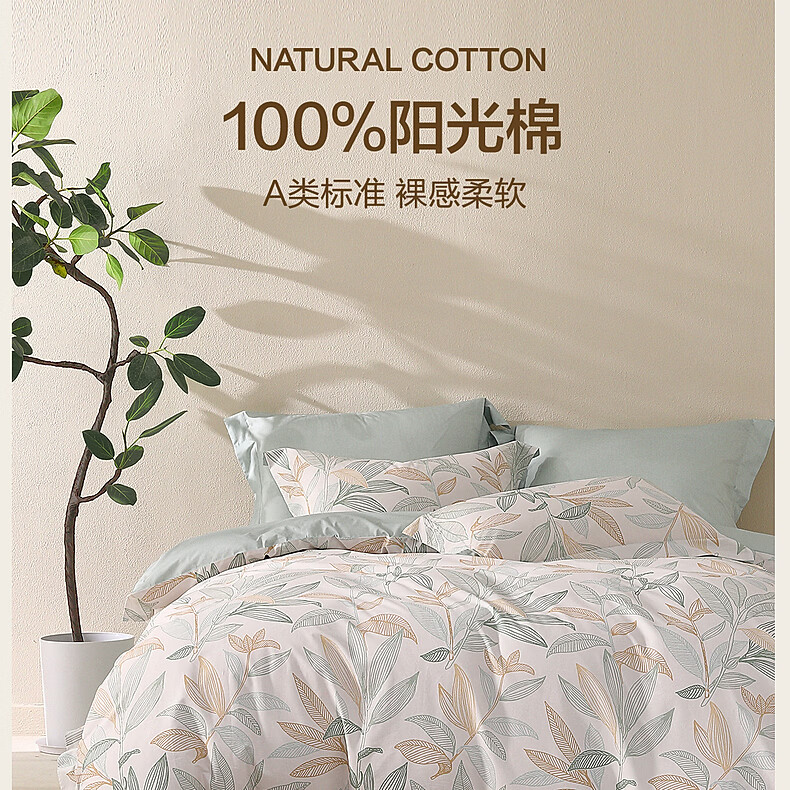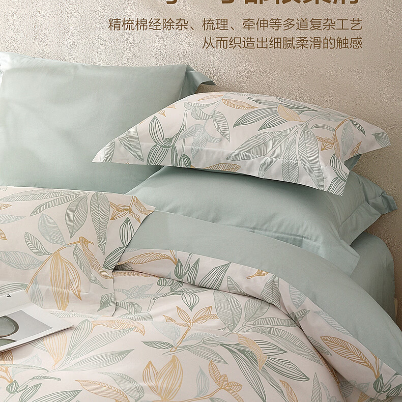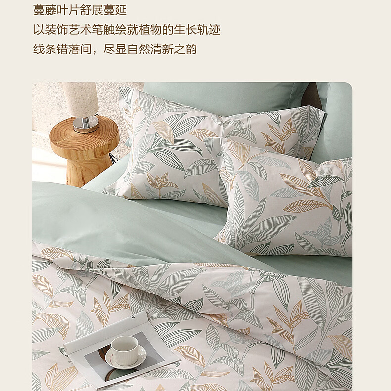 水星家纺四件套床上用品纯棉100%全棉床单被套亲肤透气26年新款套件 北欧·蔓野 床单款 (被套150*210cm)