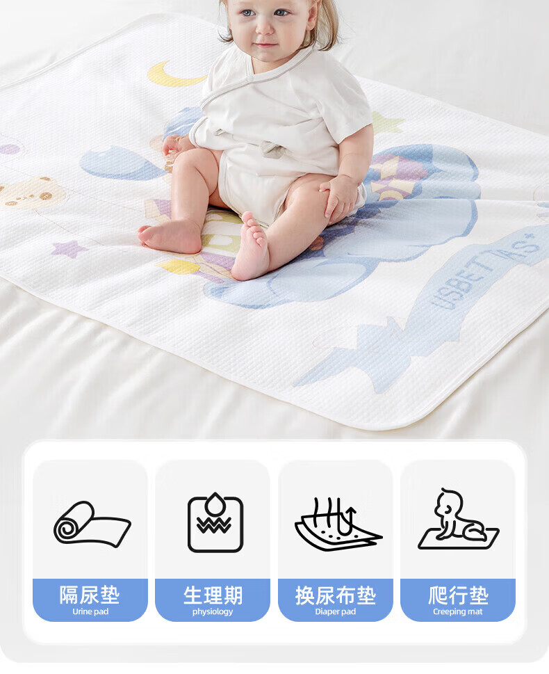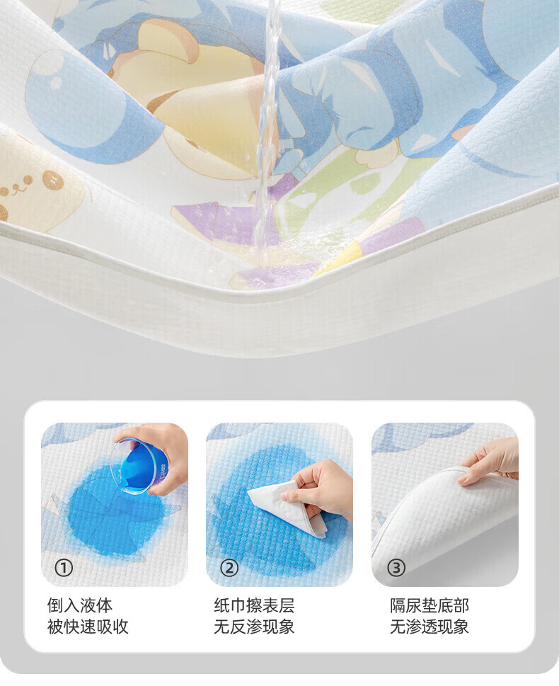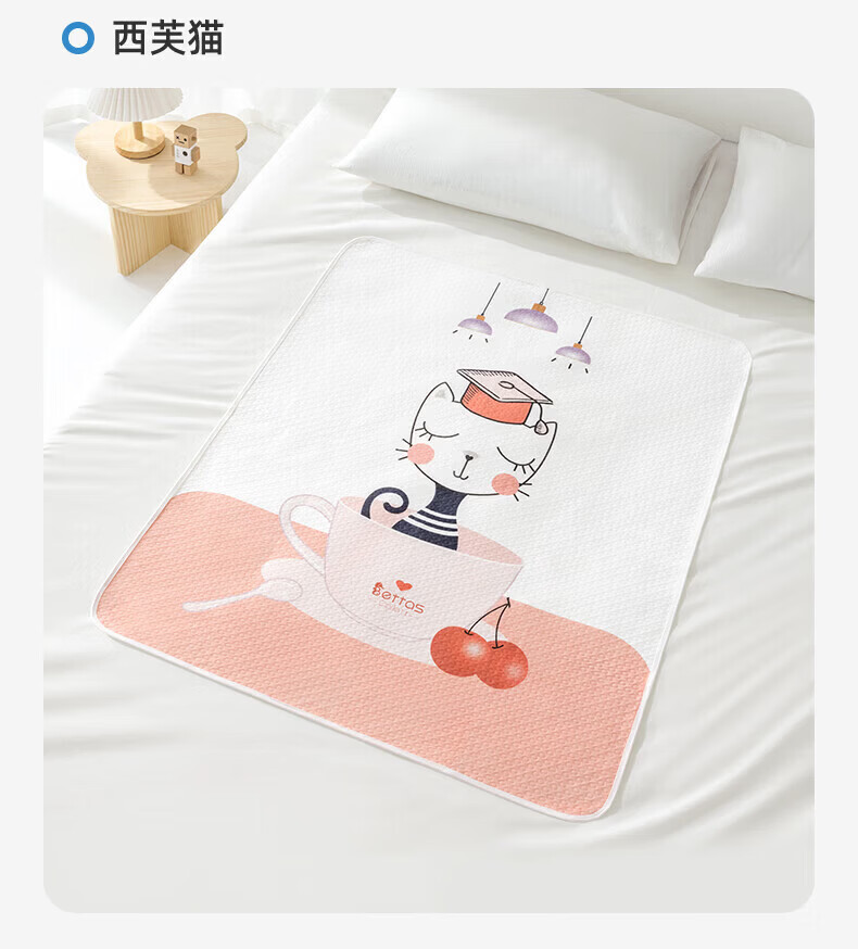 贝肽斯隔尿垫婴儿可水洗宝宝幼儿园纯棉隔尿床单护理垫防水透气 西芙猫【双面纯棉款】 45x30cm