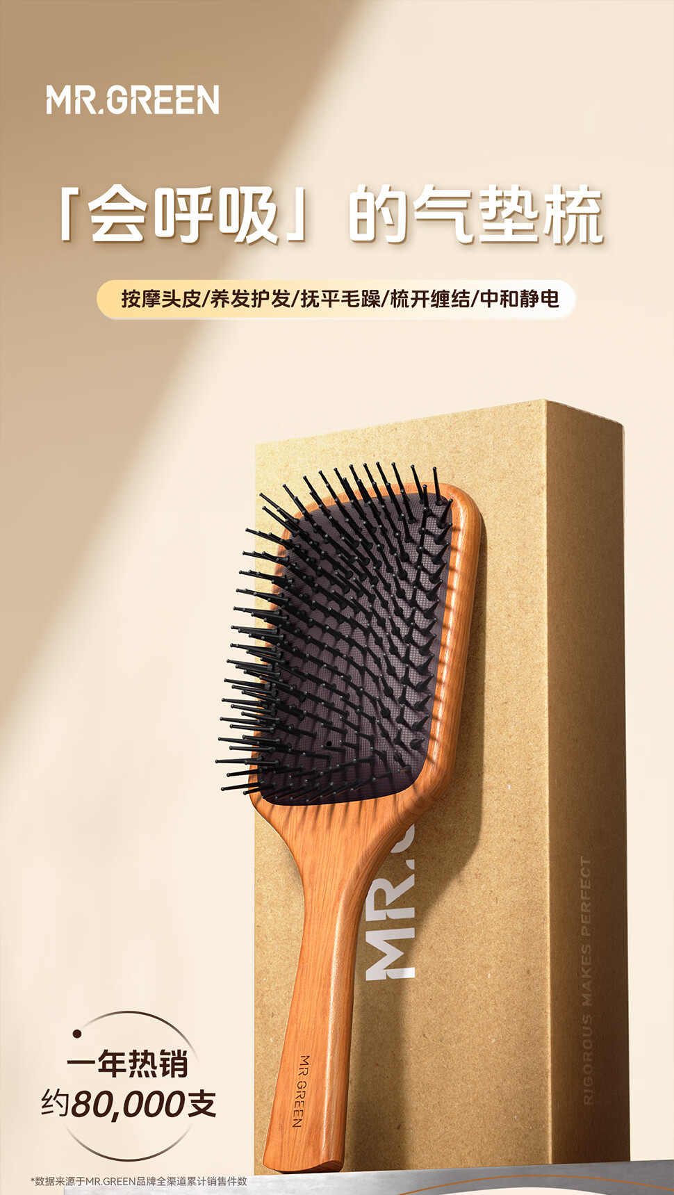 MR.GREEN德国气垫按摩梳子女气囊蓬松防静电木梳男士礼盒伴手礼物Mr-7501