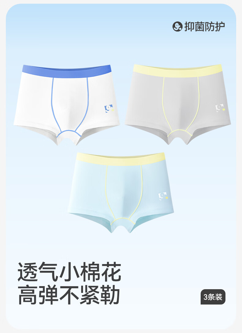 久岁伴儿童内裤男童平角裤中大童青少年6-12岁薄款透气抑菌四角短裤3条 小恐龙/305106 130 /身高120-132体重50-60斤